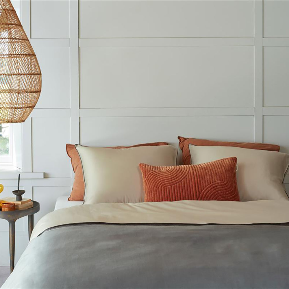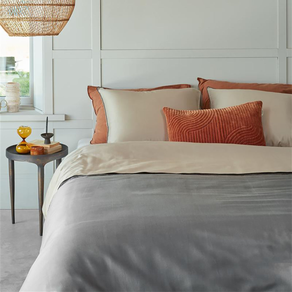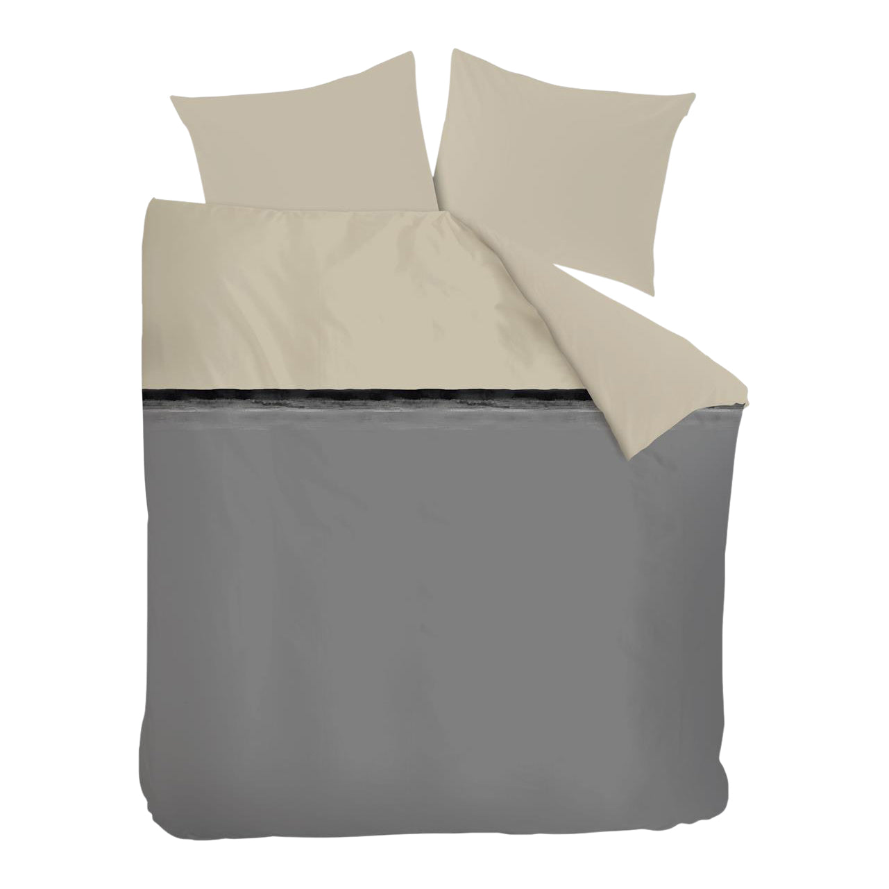 Waarom dekbedovertrek Duo Colour? Dekbedovertrek Duo Colour Grey uit de bedtextielcollectie van vtwonen is gemaakt van hoogwaardig katoensatijn wat het overtrek een prachtige glans geeft. De twee kleuren, crème en grijs, worden van elkaar gescheiden door een horizontale handgeschilderde zwarte streep. De kussenslopen zijn rondom afgewerkt met een contrasterende zwarte bies. Zowel de voor- als achterzijde van het overtrek zijn hetzelfde. Het dekbedovertrek heeft over de gehele breedte aan beide zijden een dubbele instopstrook. De totale lengte van een vtwonen-dekbedovertrek is extra lang, 260 cm. Het overtrek is geschikt voor dekbedden van 200 cm, 210 cm of 220 cm. Het overtrek kan gewassen worden tot 60 graden, is geschikt voor de wasdroger en kan gestreken worden. Door de hoogwaardige kwaliteit blijft dit dekbedovertrek ook na het wassen mooi van vorm en kleur. Het bedtextiel van vtwonen wordt geproduceerd door Bedding House, trotse partner van het Better Cotton Initiative (BCI).