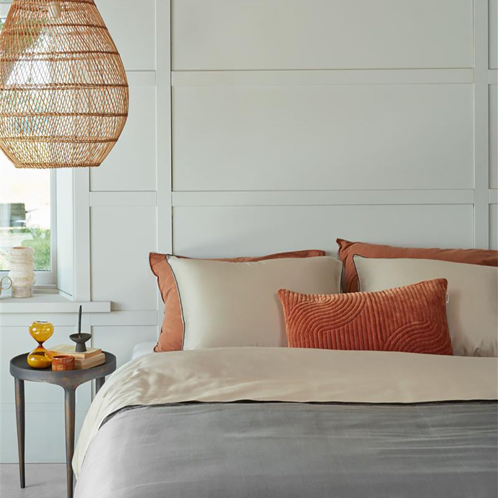 Waarom dekbedovertrek Duo Colour? Dekbedovertrek Duo Colour Grey uit de bedtextielcollectie van vtwonen is gemaakt van hoogwaardig katoensatijn wat het overtrek een prachtige glans geeft. De twee kleuren, crème en grijs, worden van elkaar gescheiden door een horizontale handgeschilderde zwarte streep. De kussenslopen zijn rondom afgewerkt met een contrasterende zwarte bies. Zowel de voor- als achterzijde van het overtrek zijn hetzelfde. Het dekbedovertrek heeft over de gehele breedte aan beide zijden een dubbele instopstrook. De totale lengte van een vtwonen-dekbedovertrek is extra lang, 260 cm. Het overtrek is geschikt voor dekbedden van 200 cm, 210 cm of 220 cm. Het overtrek kan gewassen worden tot 60 graden, is geschikt voor de wasdroger en kan gestreken worden. Door de hoogwaardige kwaliteit blijft dit dekbedovertrek ook na het wassen mooi van vorm en kleur. Het bedtextiel van vtwonen wordt geproduceerd door Bedding House, trotse partner van het Better Cotton Initiative (BCI).