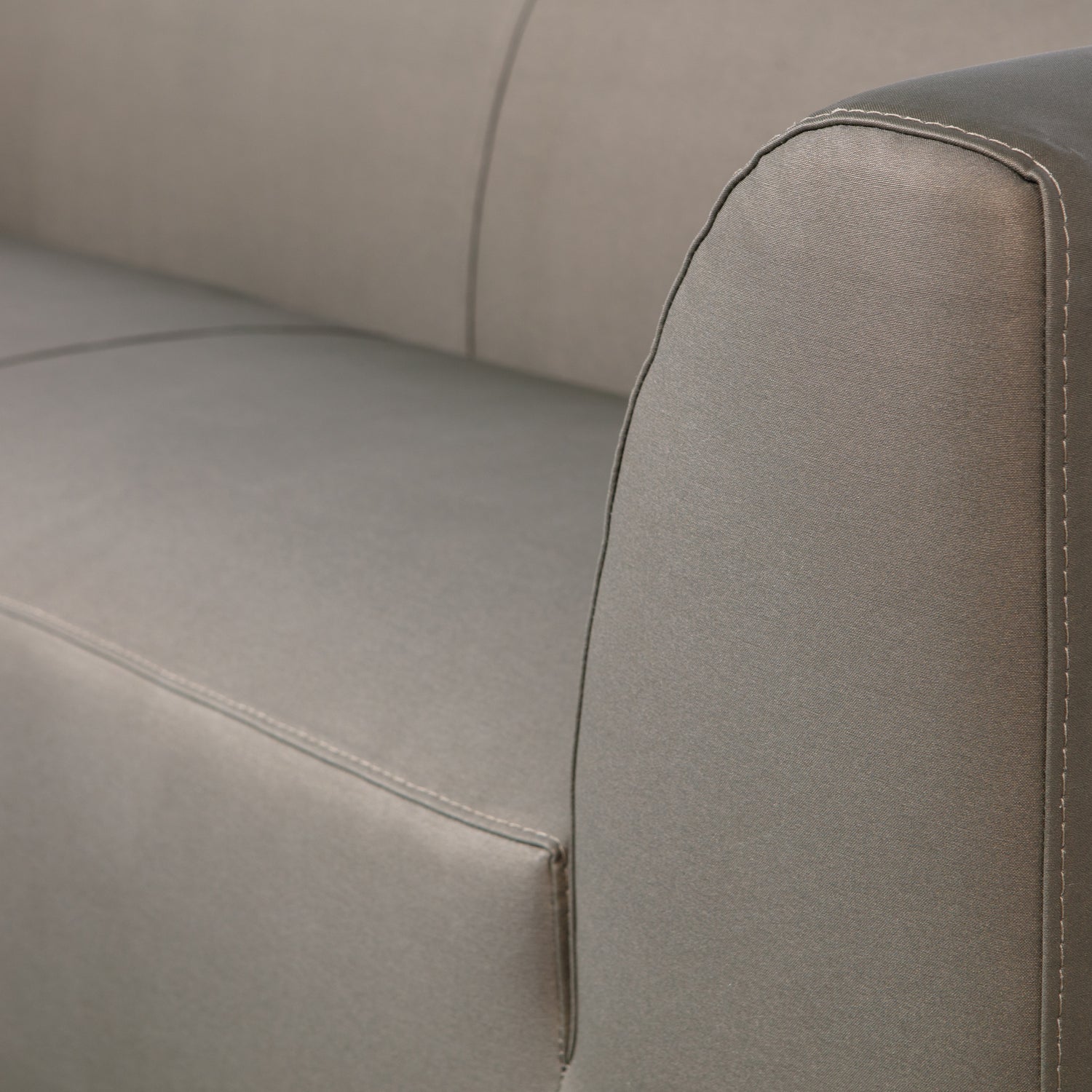 De Hollandia serie is bekleed met een 100% PVC buitenstof. Dit is een kunstleer met een uitstraling van een gladde stof. De naden van de bank zijn dicht geseald en via het innovatieve design wordt regenwater eenvoudig weggeleid. De onderzijde heeft een gaasdoek wat zorgt voor snelle droging en ademruimte voor de vulling.