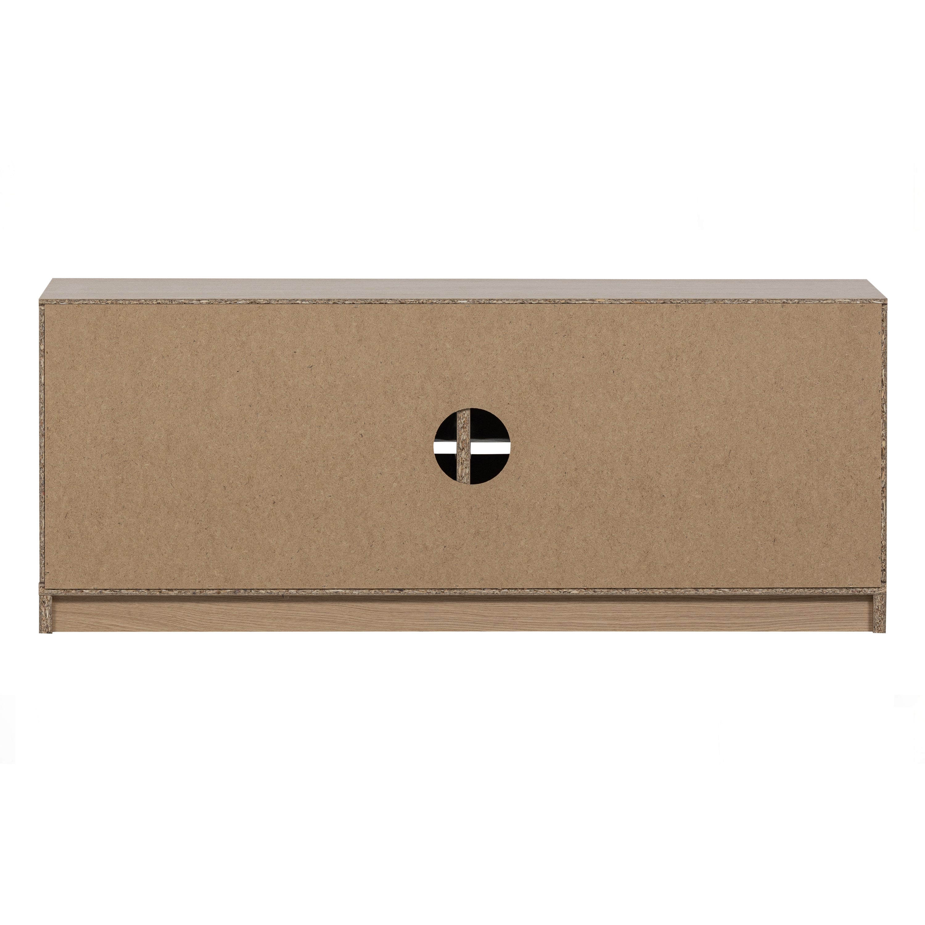 Afmetingen: Hoogte: 44 cm Breedte: 110 cm Diepte: 40 cm Framedikte: 17 mm 4x opbergruimte HxBxD: 15x52x36 cm Kastdeuren beschikken over een push-to-open systeem Plinthoogte: 5 cm Draaggewicht: 15 kg per plank Gewicht: 27 kg