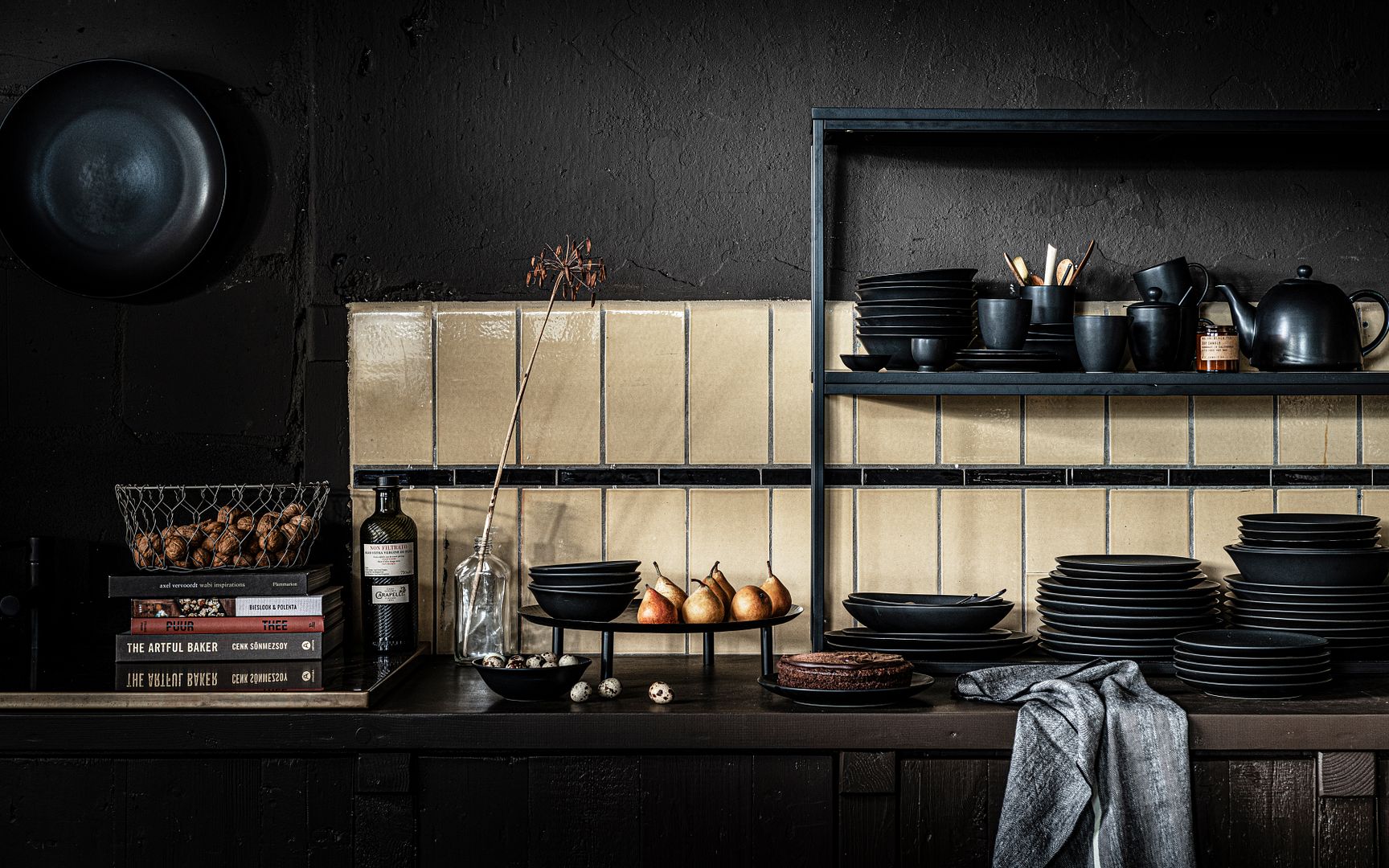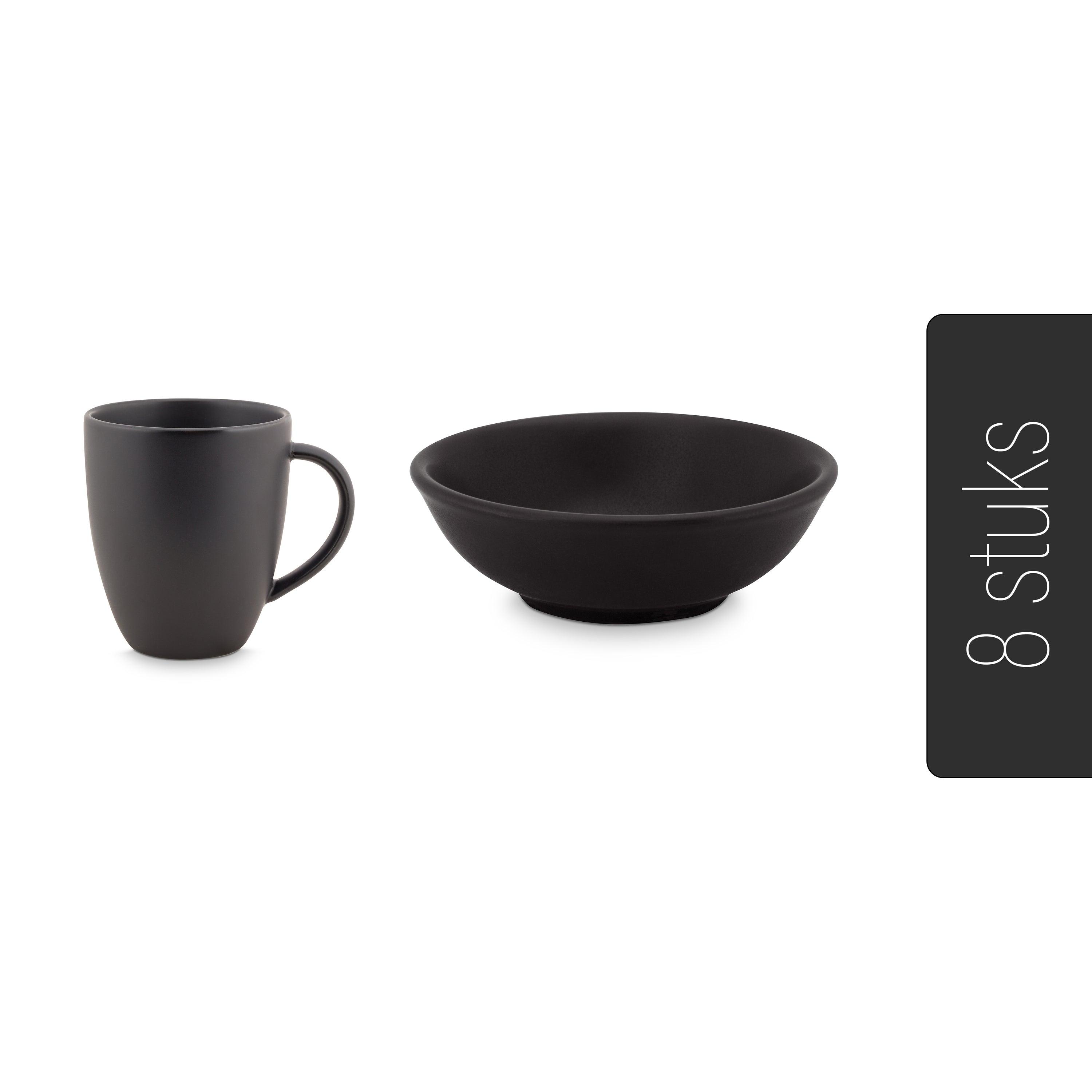 vtwonen Mok met oor en Theetipjes - Set van 4 - Mat zwart - Porselein