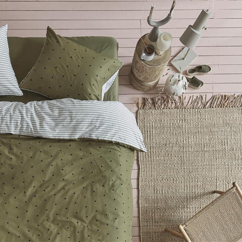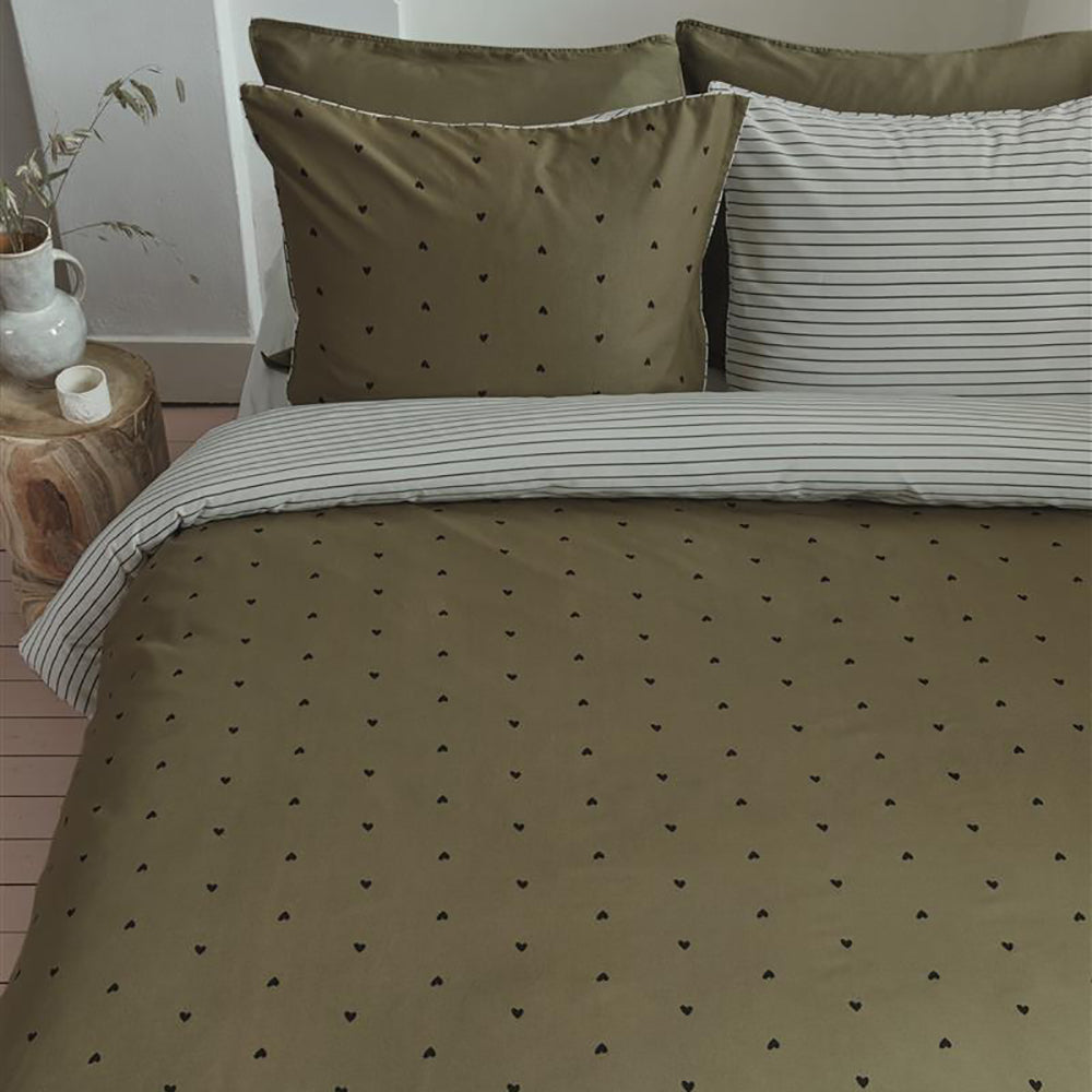 vtwonen Striped Hearts Dekbedovertrek 140 x 200/220 cm - Groen