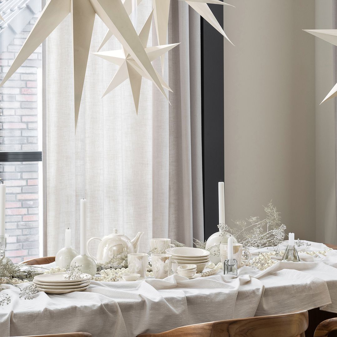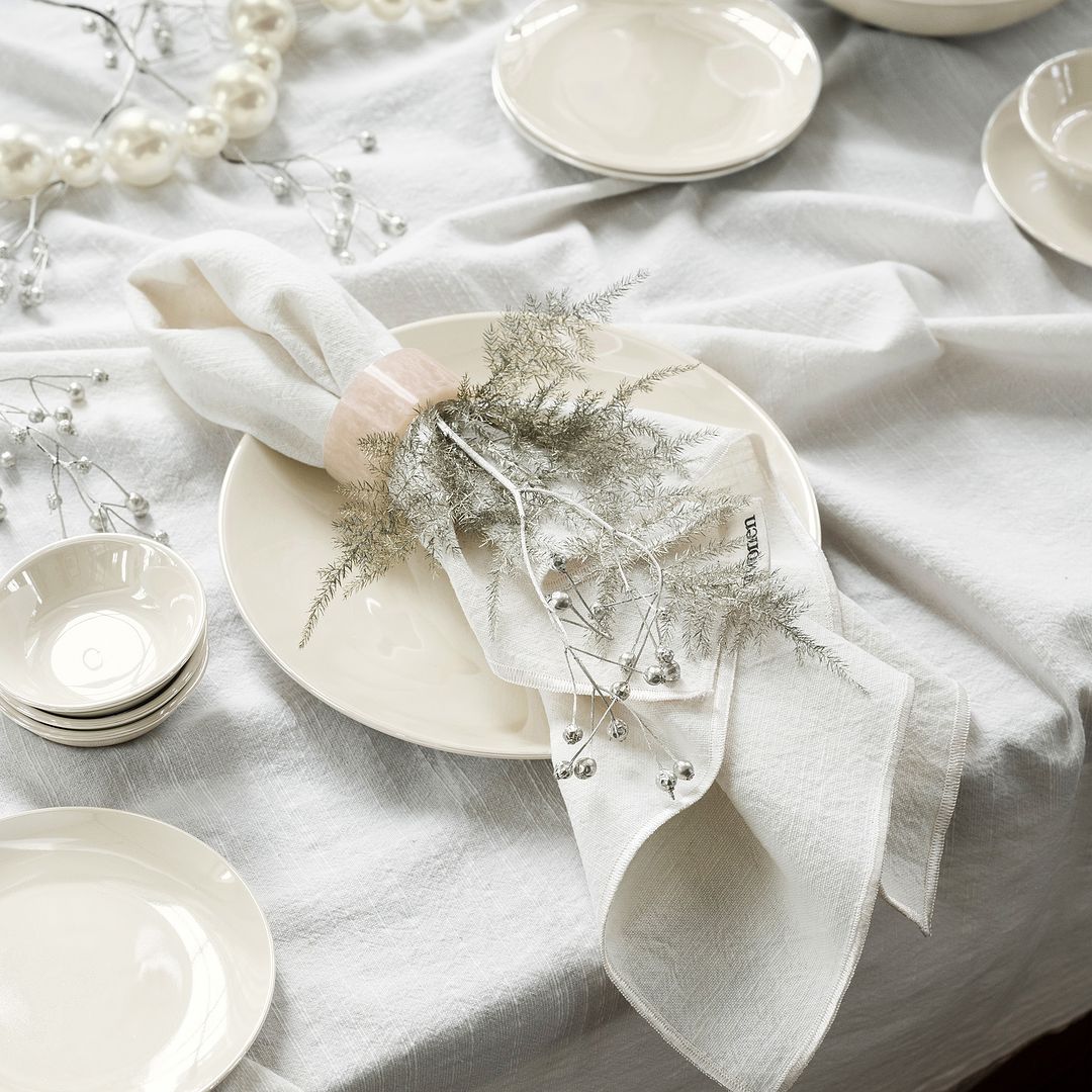 - Het tafelkleed heeft de kleur wit