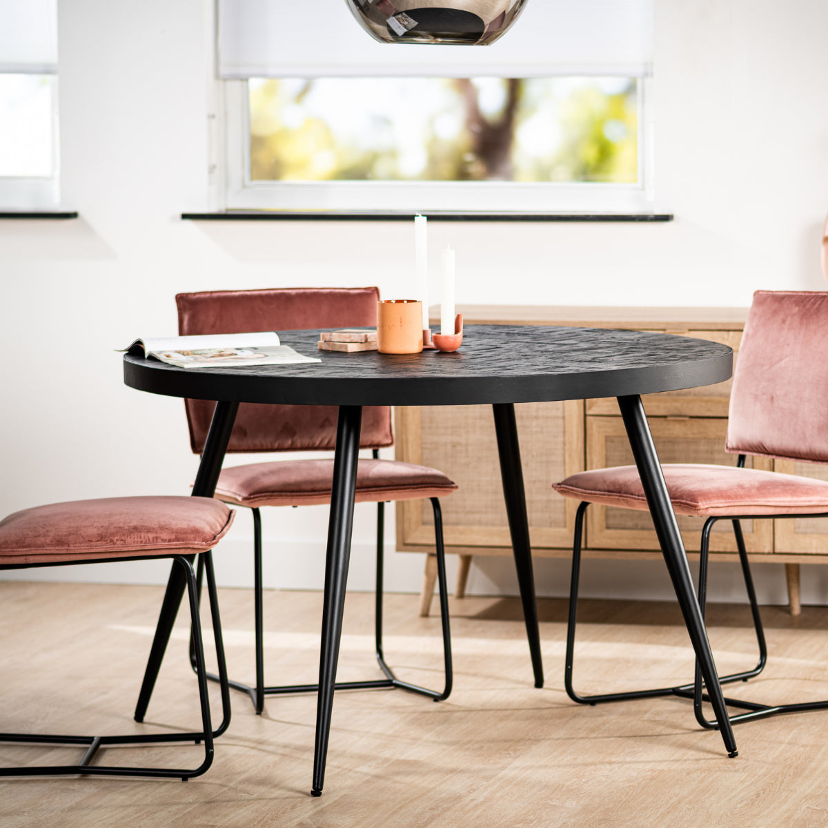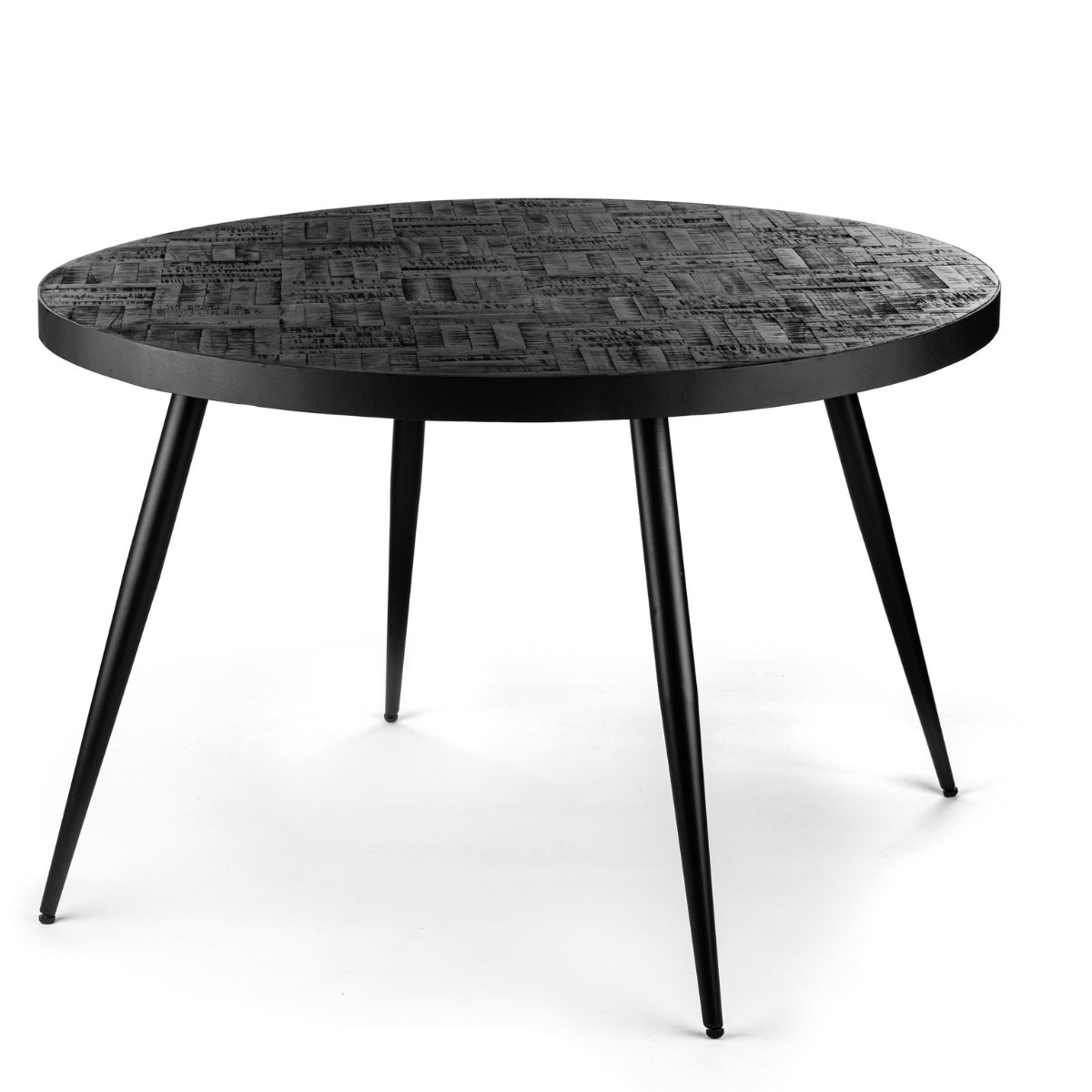 Jens eettafel rond 120 cm teak visgraat zwart van het woonmerk Vurna