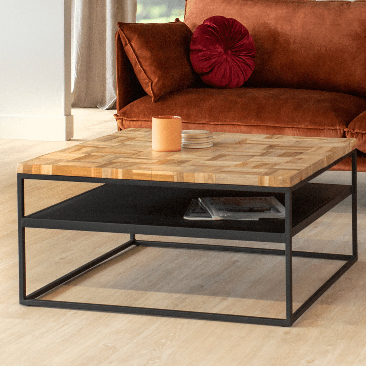Vurna Makiko salontafel vierkant teak bruin 80x80x40 cm