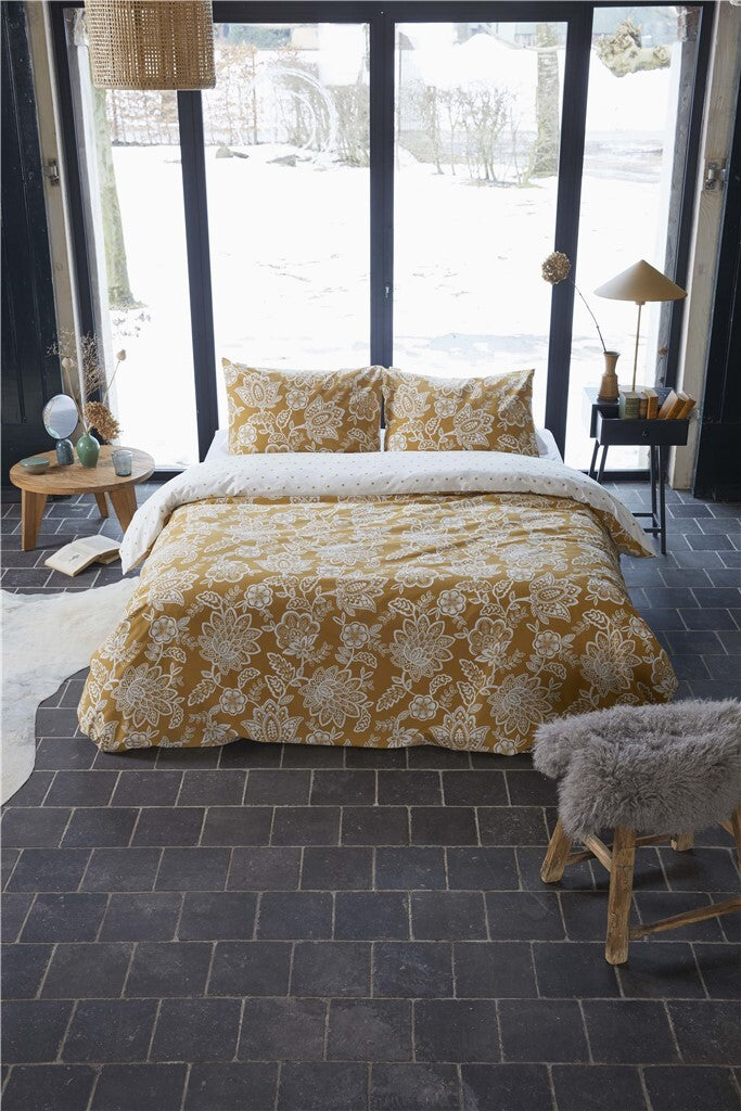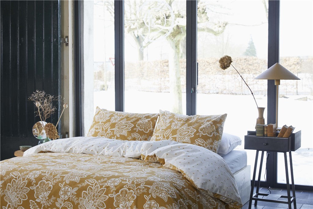 Het dekbedovertrek Country Love heeft aan de voorzijde een Engels bloemenpatroon en aan de achterzijde stipjes op een witte ondergrond. Het is een echte eyecatcher en zorgt voor een romantische sfeer in de slaapkamer. De achterzijde van het overtrek met kleine stipjes geven een speelse look.