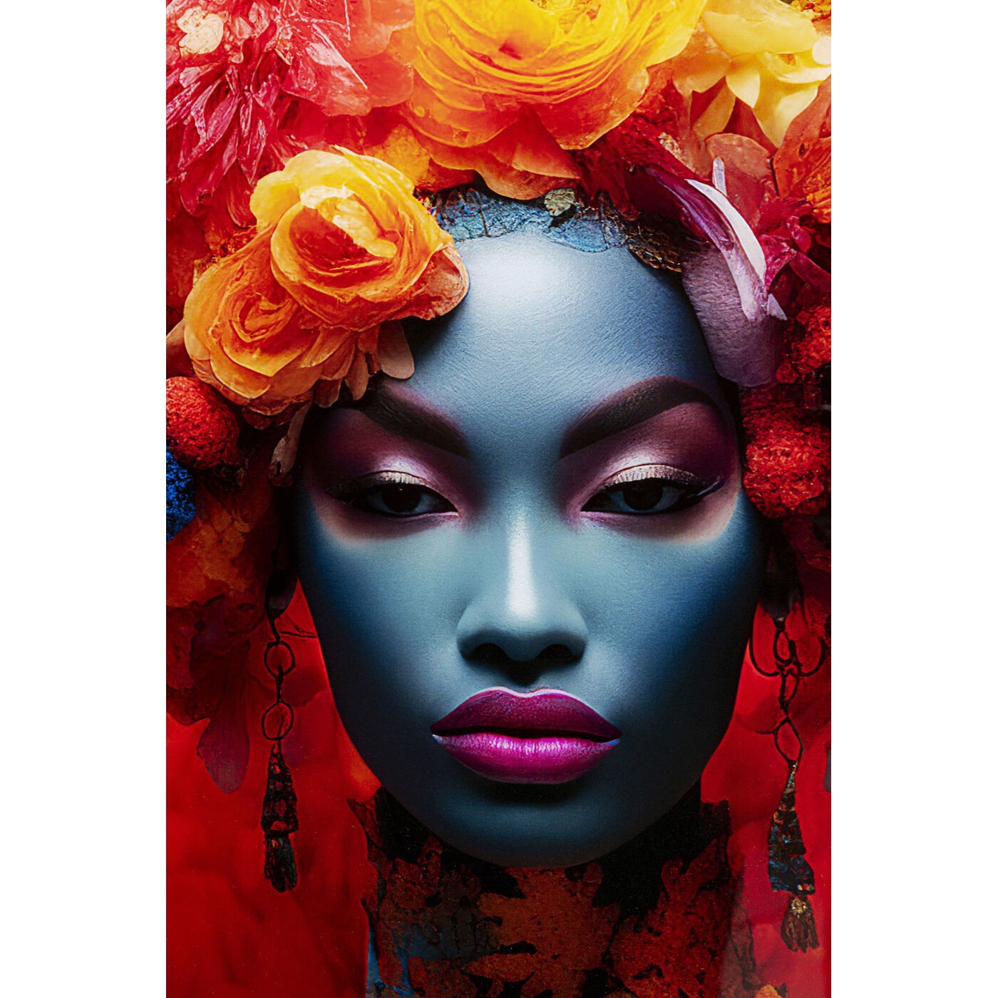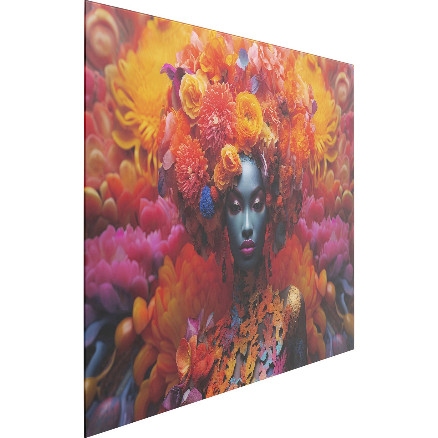 Wandfoto vrouw oranje bloemen 120x80cm Kare Design
