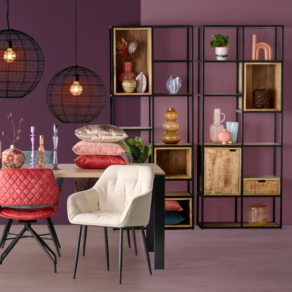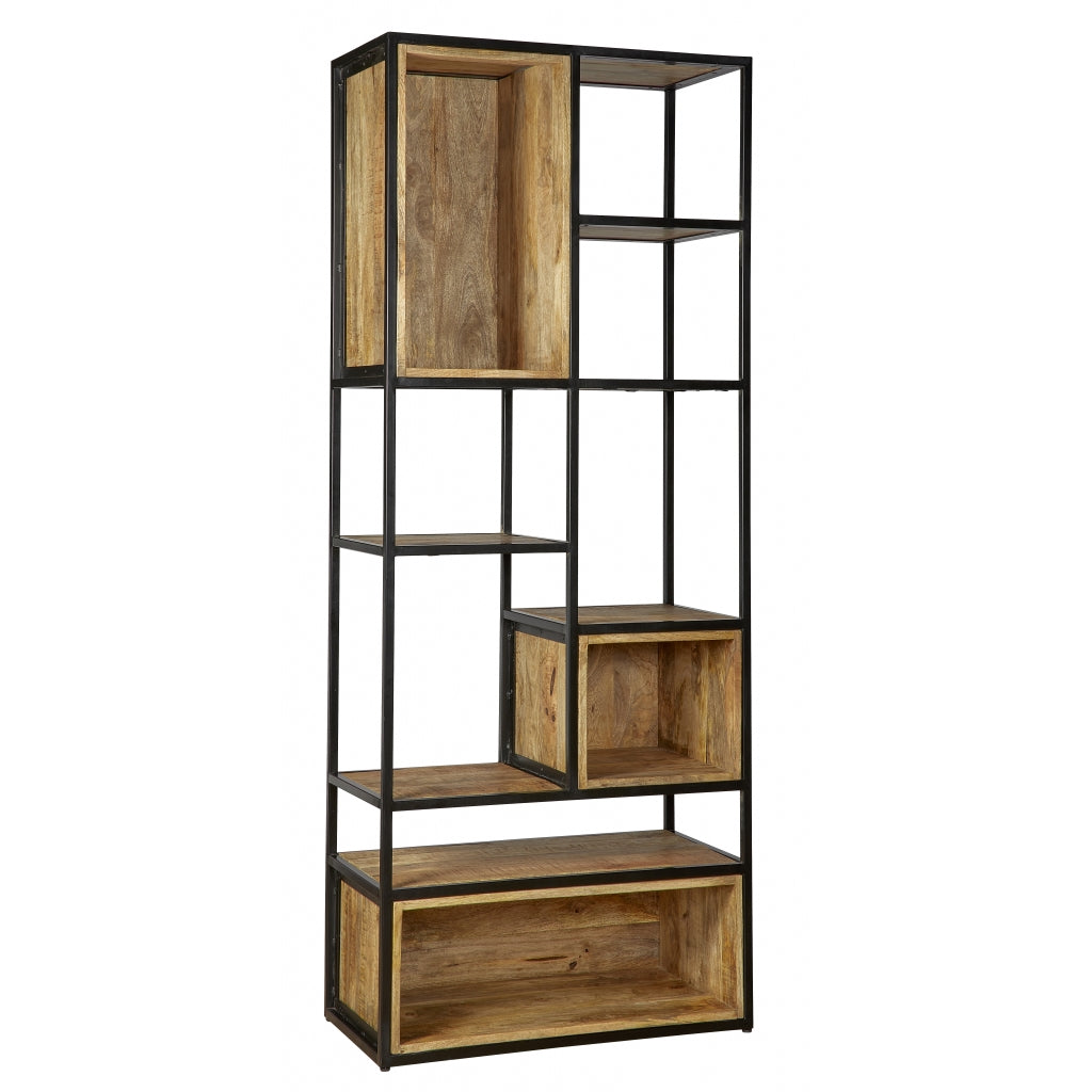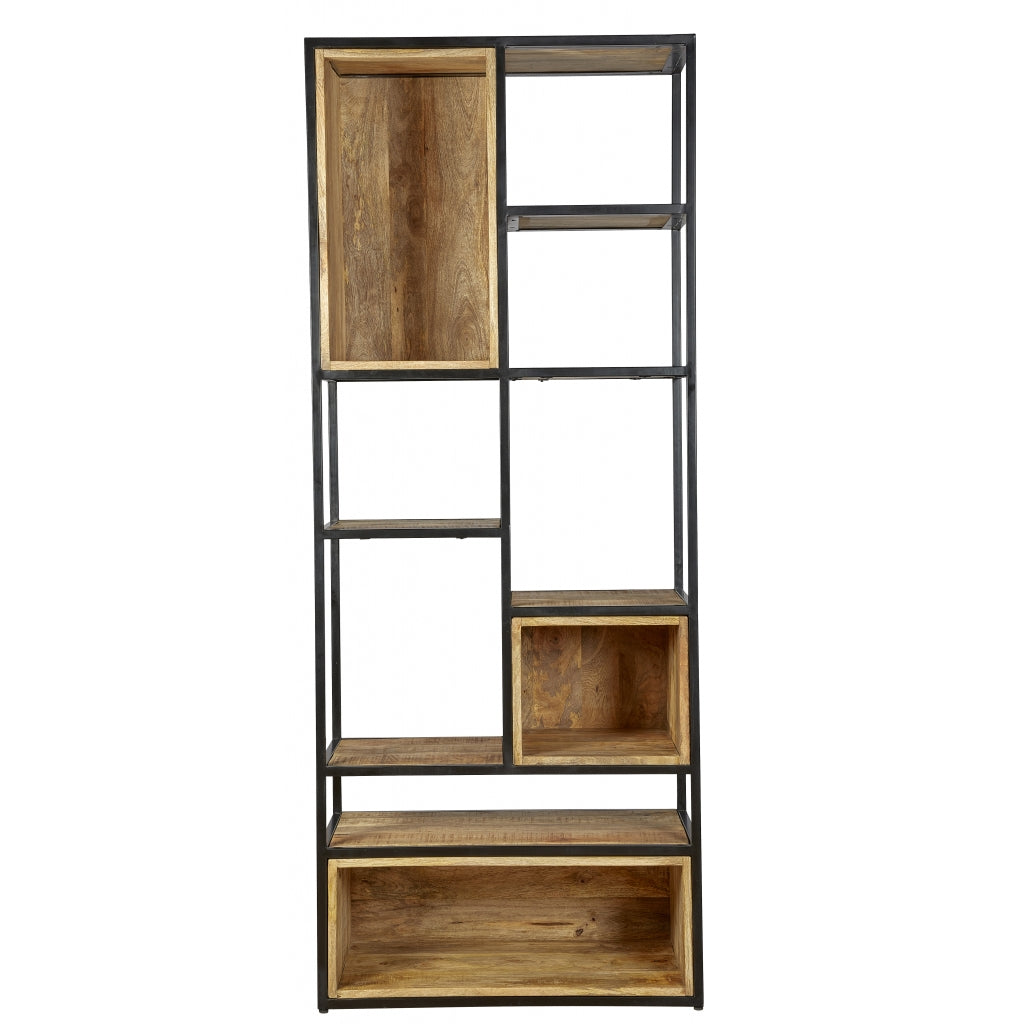 De Wandkast Bemmel is een eigentijdse kast die bestaat uit zowel open vakken als vakken gemaakt van mangohout. De vakken van mangohout hebben een gesloten achterkant, waardoor ze dienen als een decoratieve achtergrond voor de spullen die je erin plaatst. Deze wandkast heeft een slank formaat, waardoor het leuk is om het te combineren met een tweede kast om een ruime kast te creëren. Je kunt kiezen voor hetzelfde model of een variant ervan. Om de kast mooi te maken, kun je deze decoreren met verlichting, boeken en mooie woonaccessoires. Indeling: Deze uitvoering van de Bemmel wandkast heeft 9 open vakken in verschillende formaten, die op een speelse manier zijn geplaatst. Van deze vakken zijn er 3 volledig gemaakt van hout, met een gesloten houten achterkant. De andere vakken hebben houten planken. Belangrijke informatie: De Wandkast Bemmel heeft een breedte van 80 cm, een diepte van 40 cm en een hoogte van 200 cm. De kast is gemaakt van metaal met een zwarte poedercoating en heeft accenten van mangohout. Het hout is mat gelakt en heeft een warme naturel kleur. De kast wordt in gemonteerde staat geleverd.| Afmetingen | |