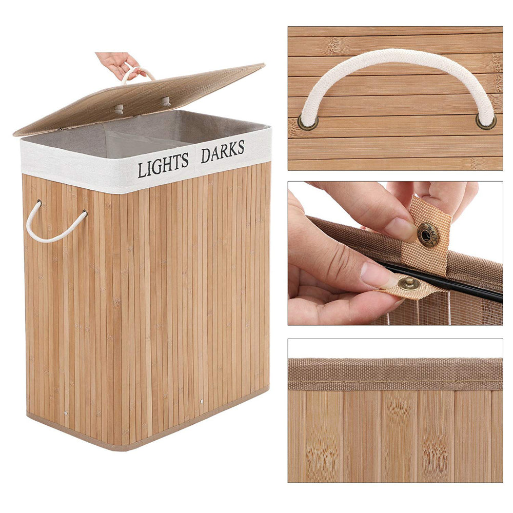 Wasmand - 2 vakken van elk 50 liter - 52x63x32 cm - bamboe