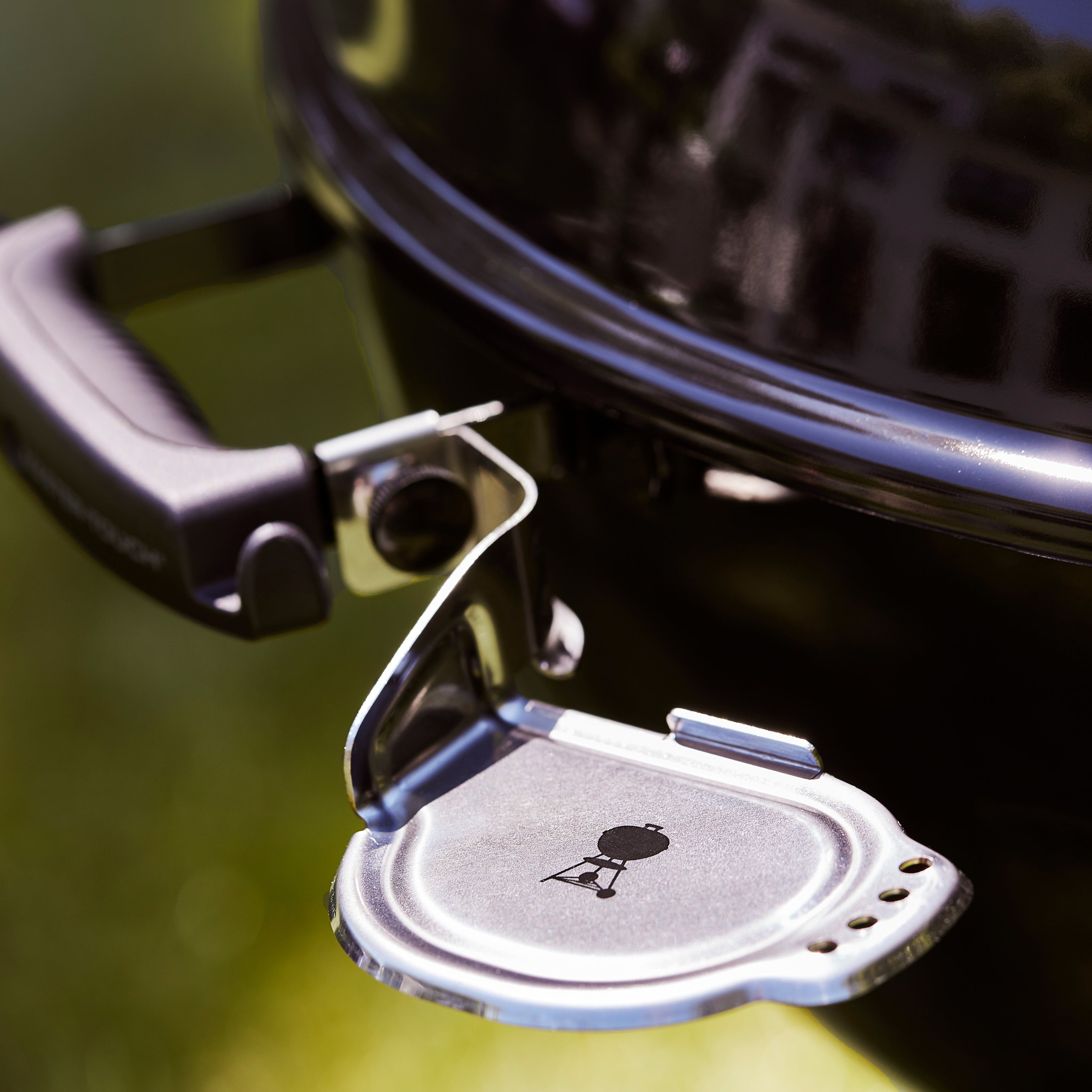 Een ware masterchef Zelfs barbecueliefhebbers met twee linkerhanden flansen heerlijke grillgerechten in elkaar. De porselein geëmailleerde deksel en ketel houden de warmte optimaal vast en dankzij de verbeterde ventilatie kun je met één barbecue nu grillen, roken én braden. Op het grote grilloppervlak (Ø 57 cm) bereid je hoofd- en zijgerechten tegelijkertijd en omdat het rooster gemaakt is van roestvrijstaal gaat hij extra lang mee. Op de dekselthermometer houd je ondertussen de temperatuur in de gaten.