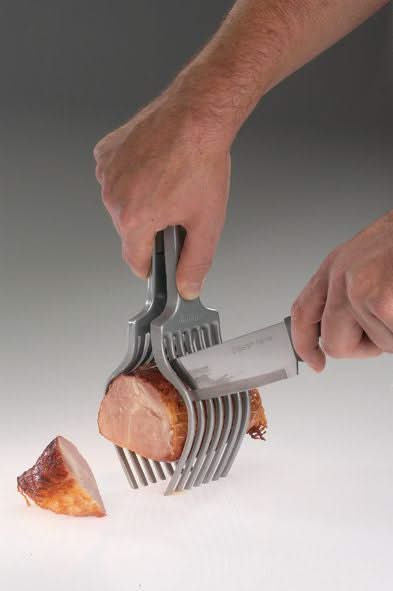 Met deze tang pak je makkelijk een rollade vast en snij je 'm. Maar je kunt er natuurlijk ook ander vlees mee grijpen en snijden. De tang is gemaakt van aluminium en heeft 14 pinnen waarmee je de rollade stevig vast kunt houden. Tussen de pinnen kun je de rollade in gelijke stukken verdelen. Voordelen van de Westmark Rolladetang Tranchetta