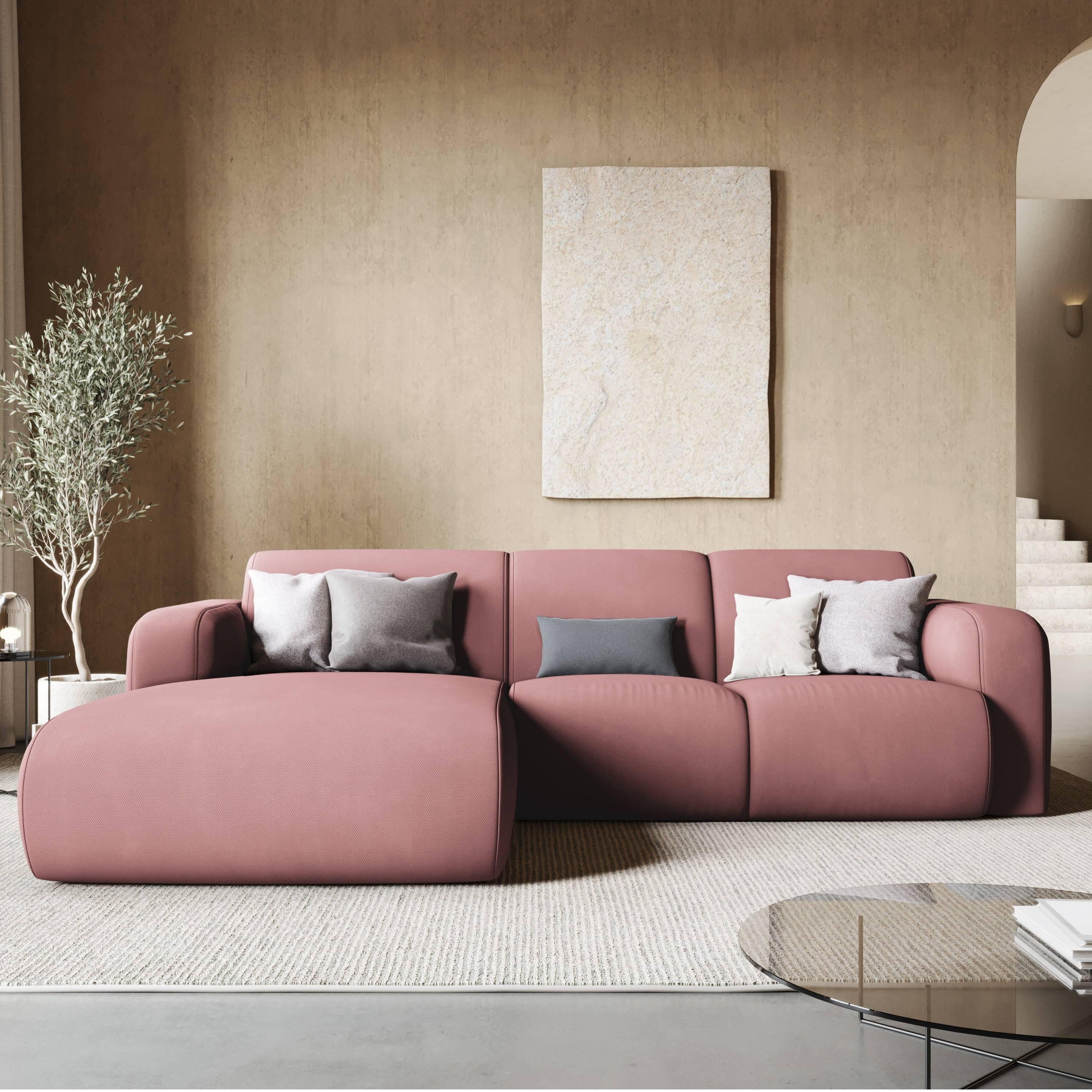 Windsor & Co Lola Hoekbank met Chaise Longue Links - Chenille - Roze