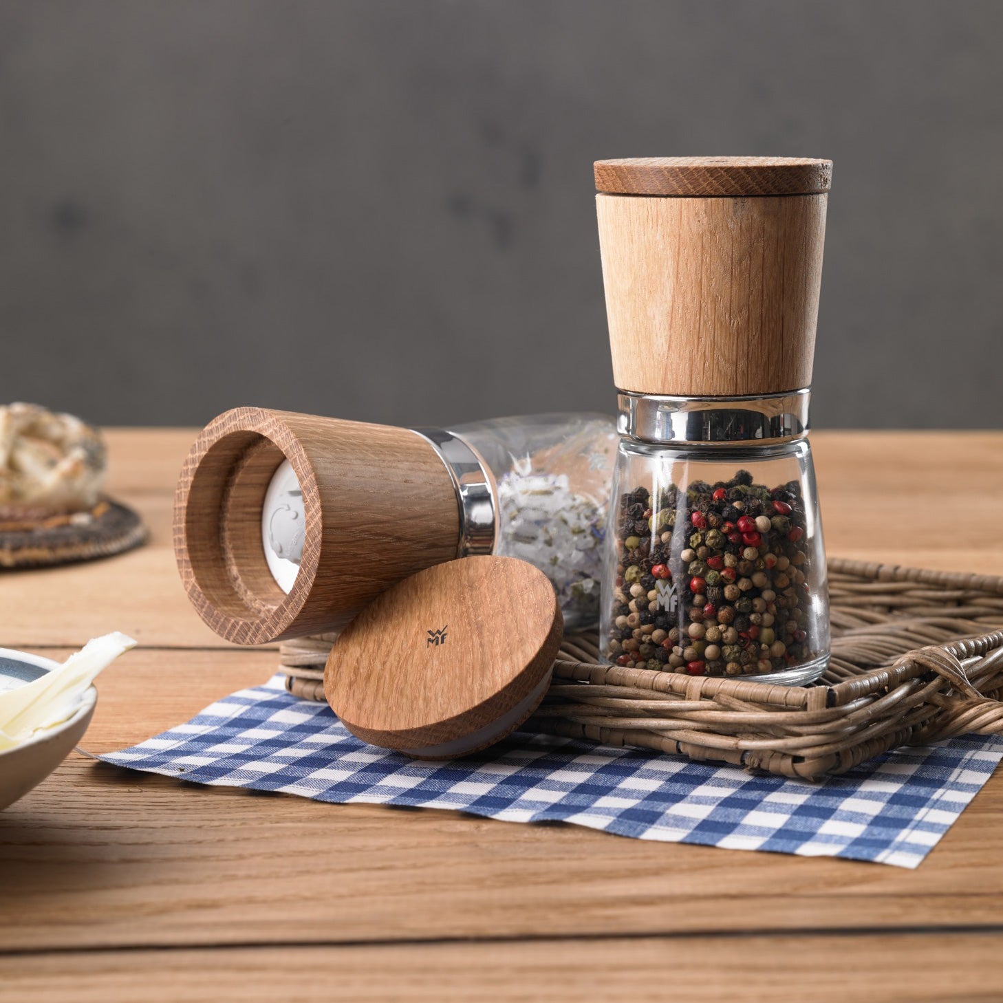 WMF kruidenmolens Ceramill Nature De Ceramill Nature molens danken hun naam aan de hoogwaardige materialen waaruit ze zijn vervaardigd. Deze stijlvolle molens hebben een behuizing van natuurlijk eikenhout en onverwoestbaar Cromargan 18/10 RVS. Deze ijzersterke combinatie en het heldere WMF glas maken van deze molens tafelaccessoires die gezien mogen worden!