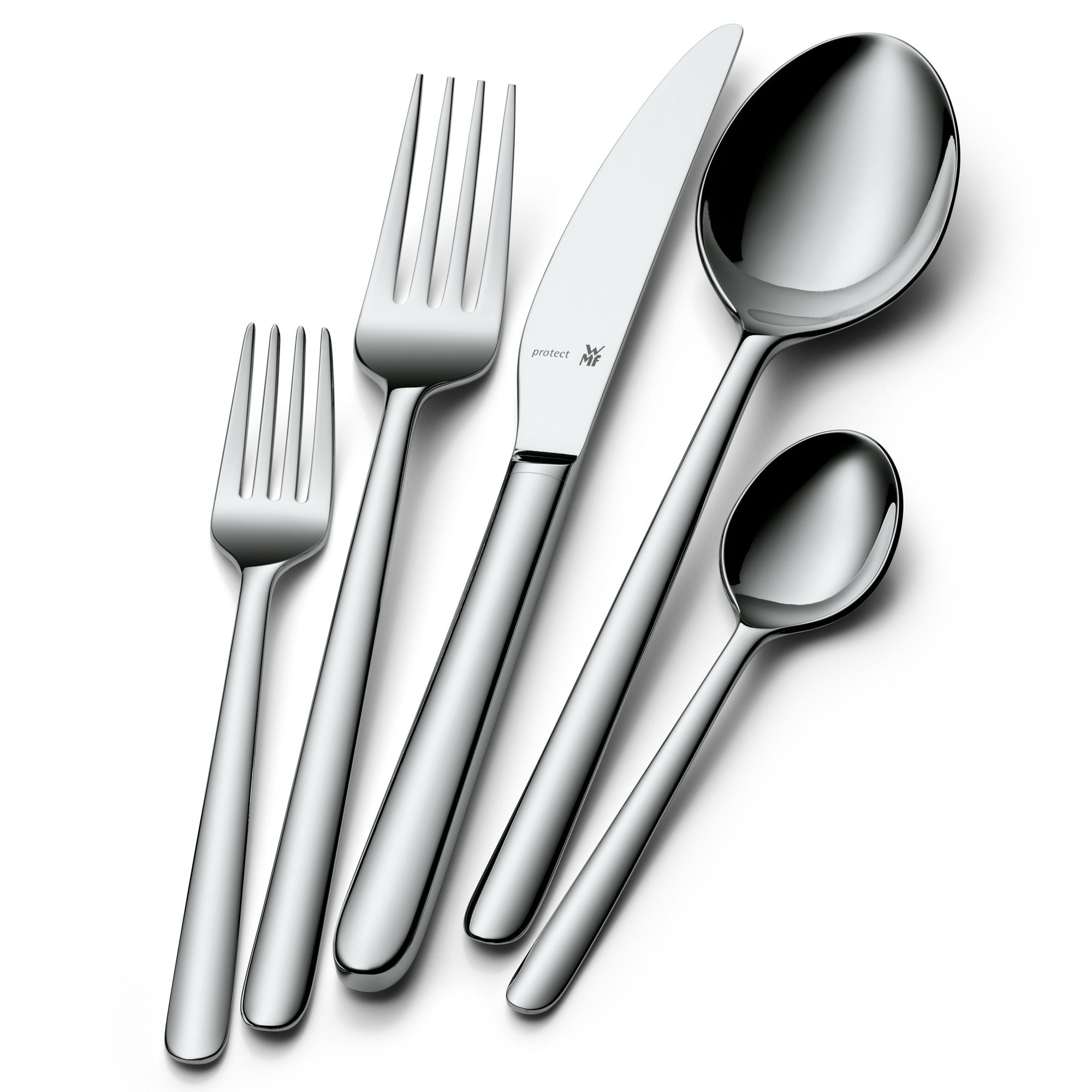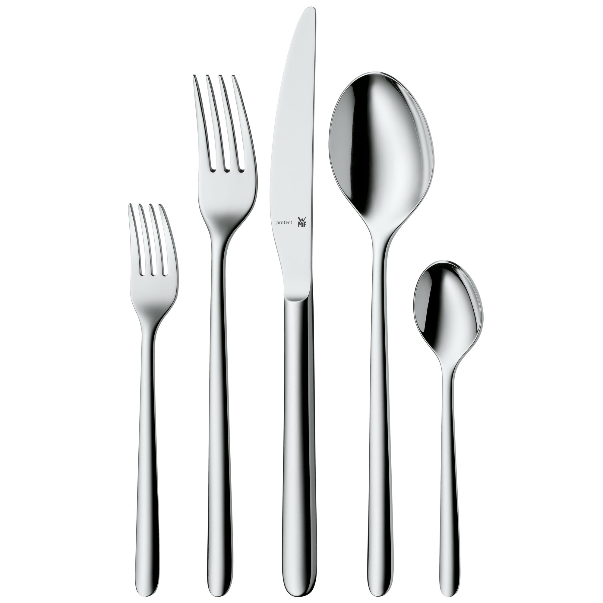 Prachtige glans en strakke lijnen Het Flame bestek van WMF glanst prachtig. Dit bestek trekt de aandacht met haar slanke, sierlijke vorm en strakke lijnen. De messen zijn gesmeed en hebben een lang lemmet, dat gegarandeerd extra lang scherp blijft. De lengte van het bestek is bovengemiddeld, maar ligt dankzij de sierlijke vorm heel prettig in de hand en is licht in gewicht. Een favoriet van WMF!