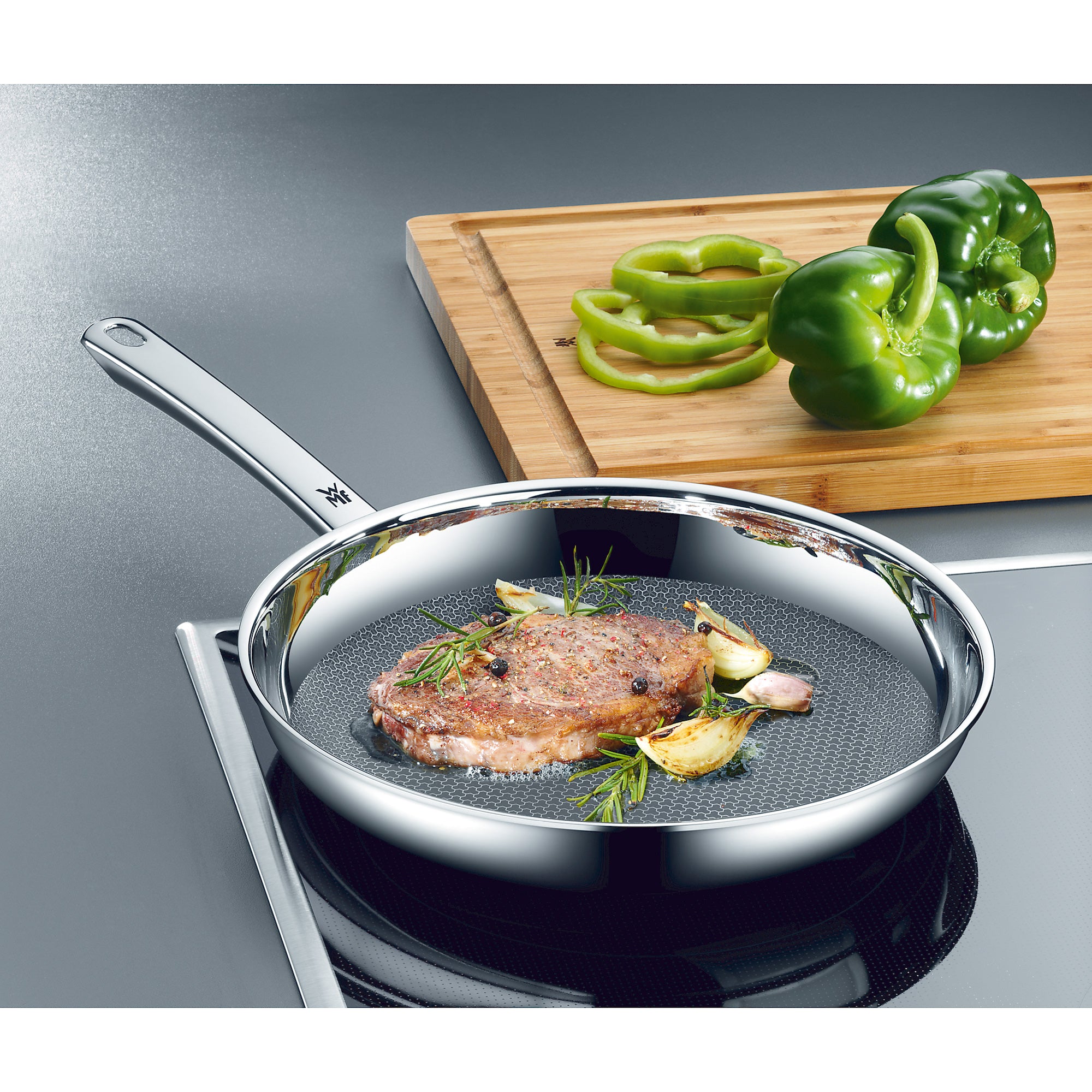 WMF Cromargan RVS De WMF ProfiResist koekenpan is gemaakt uit aluminium, chroom en het unieke Cromargan 18/10 roestvrij staal. Dankzij dit meerlagen materiaal is de pan snel op temperatuur en hebben de pannen een optimale warmteverdeling.