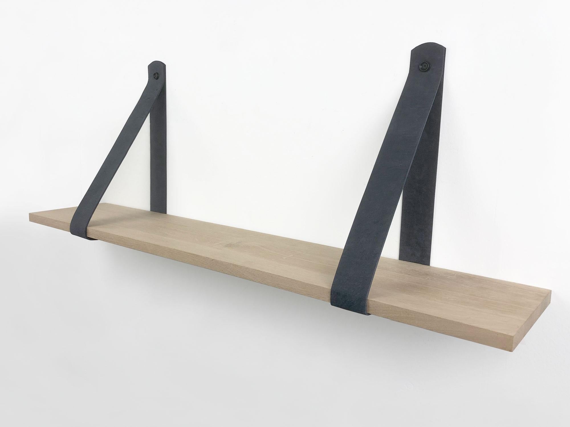 Woodbrothers Eiken 18mm wandplank recht 110x20cm + leren riem grijs