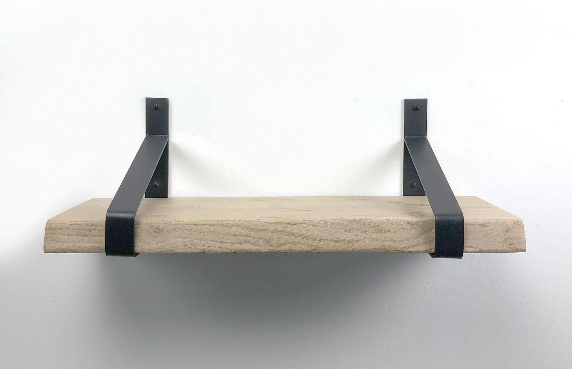 Woodbrothers Eiken wandplank boomkant 50cm + 30cm diepe dragers