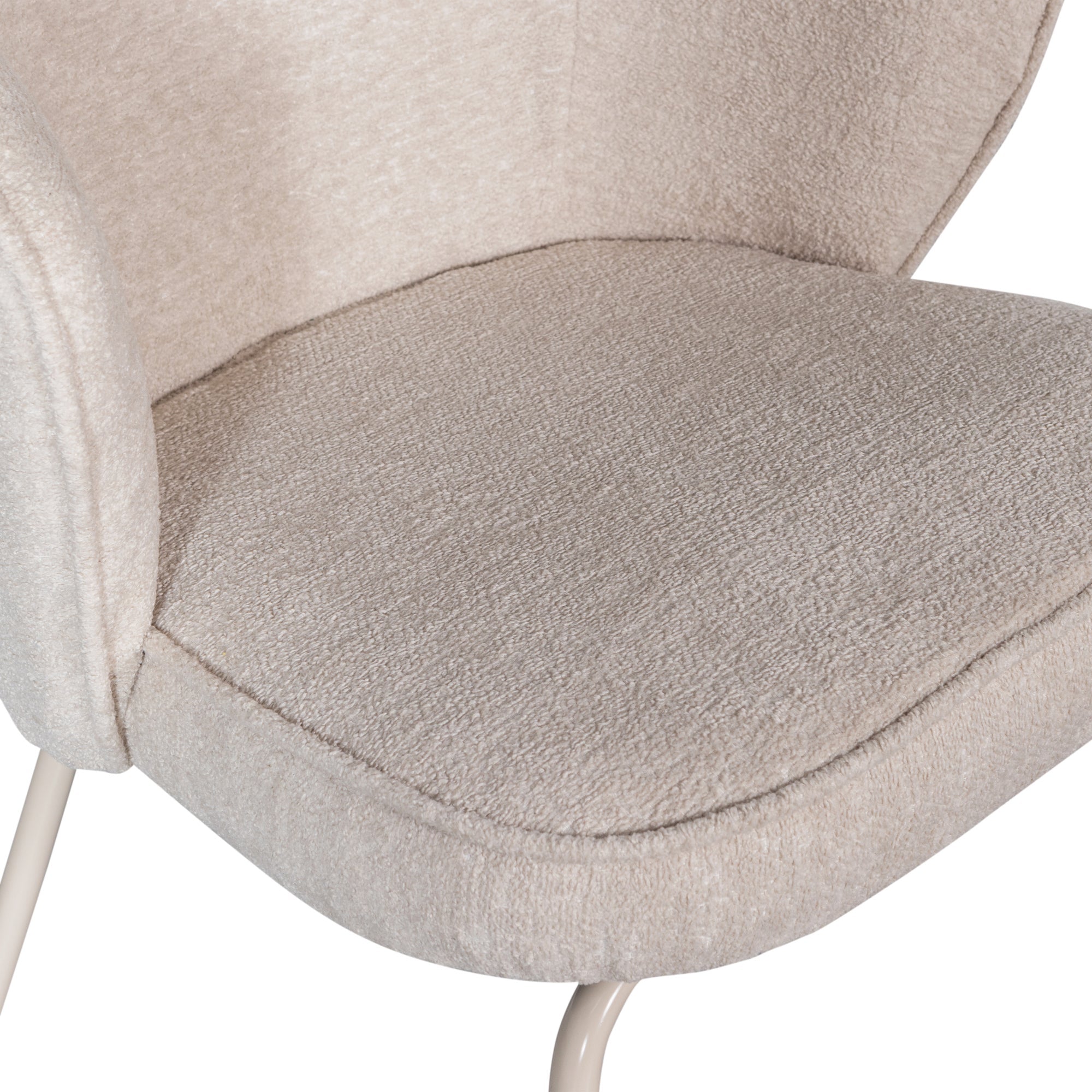 Het onderstel is vervaardigd van pebble kleurig metaal, wat de eetkamerstoel een warme uitstraling geeft. Het zitgedeelte is gestoffeerd met onze zachte Holy geweven stof, die direct warmte in huis brengt. De stof heeft een Martindale van 100.000, waardoor hij geschikt is voor intensief gebruik. De dichte weeftechniek zorgt voor de duurzaamheid van de stof, waardoor slijtage en scheuren worden voorkomen. Afmetingen