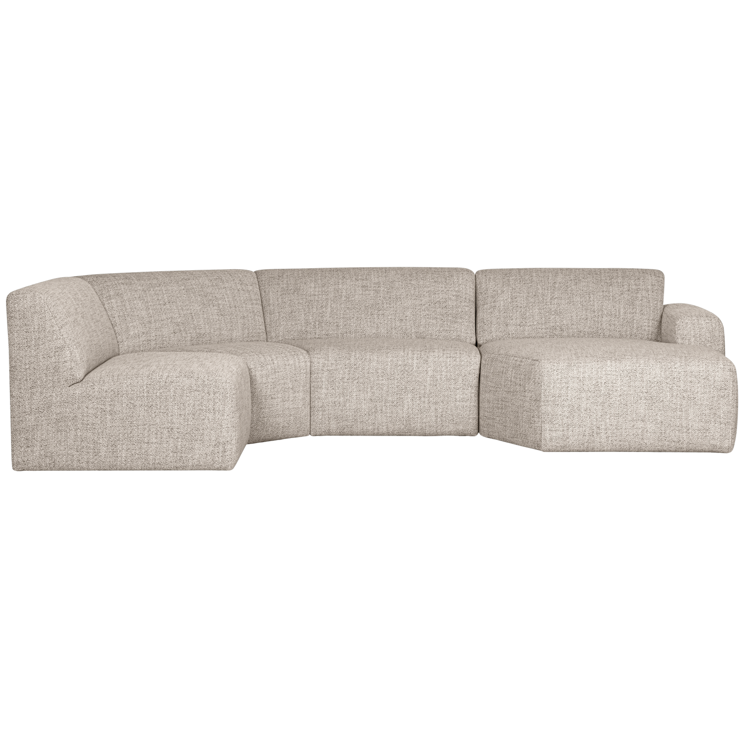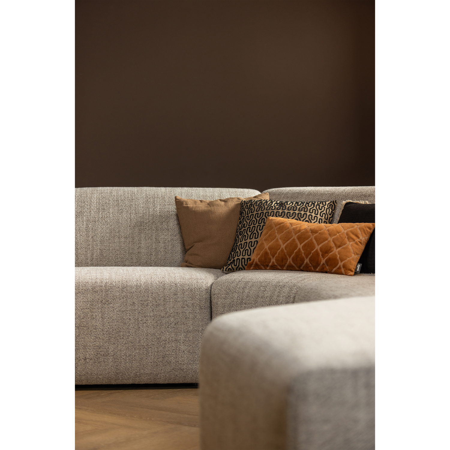 Comfortabel en voldoende plek om heerlijk te loungen. De Avelon bank uit de collectie van het Nederlandse merk WOOOD biedt het alle twee. Het robuuste design en de speelse u-vorm zorgen voor een stevige basis in jouw zithoek. Een kernmerk van de grof geweven stof is dat het kleurvast is en niet snel zal pillen; praktisch én stijlvol dus! Materiaal