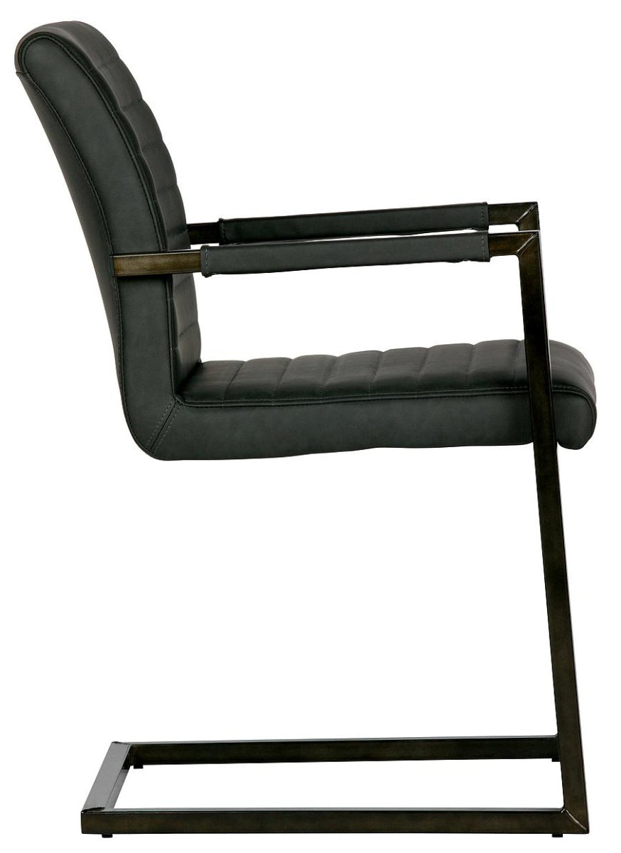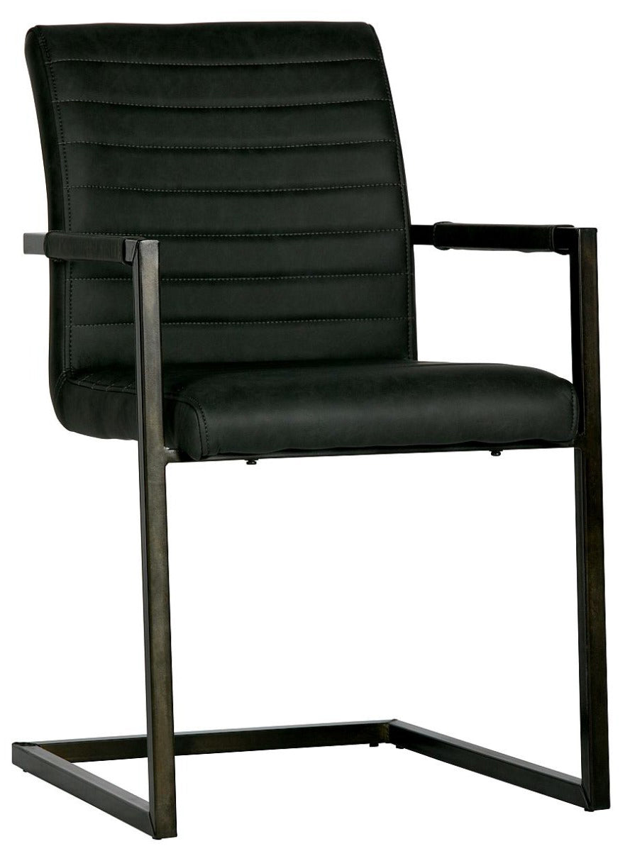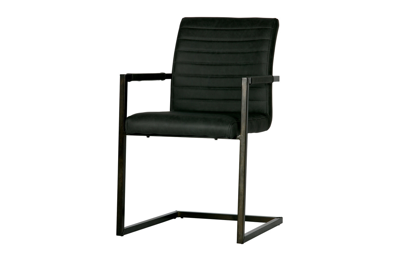 Materiaal Het frame van de stoel is van metaal en afgewerkt met een zwarte poedercoating. De foam in de zitting is Polyurethaan schuim (normaal schuim) met een dikte van 25 kg/m3. De rugleuning heeft een dikte van ditzelfde foam in 21 kg/m3. De zitting is bekleed met een PU leren stof met vintage look.