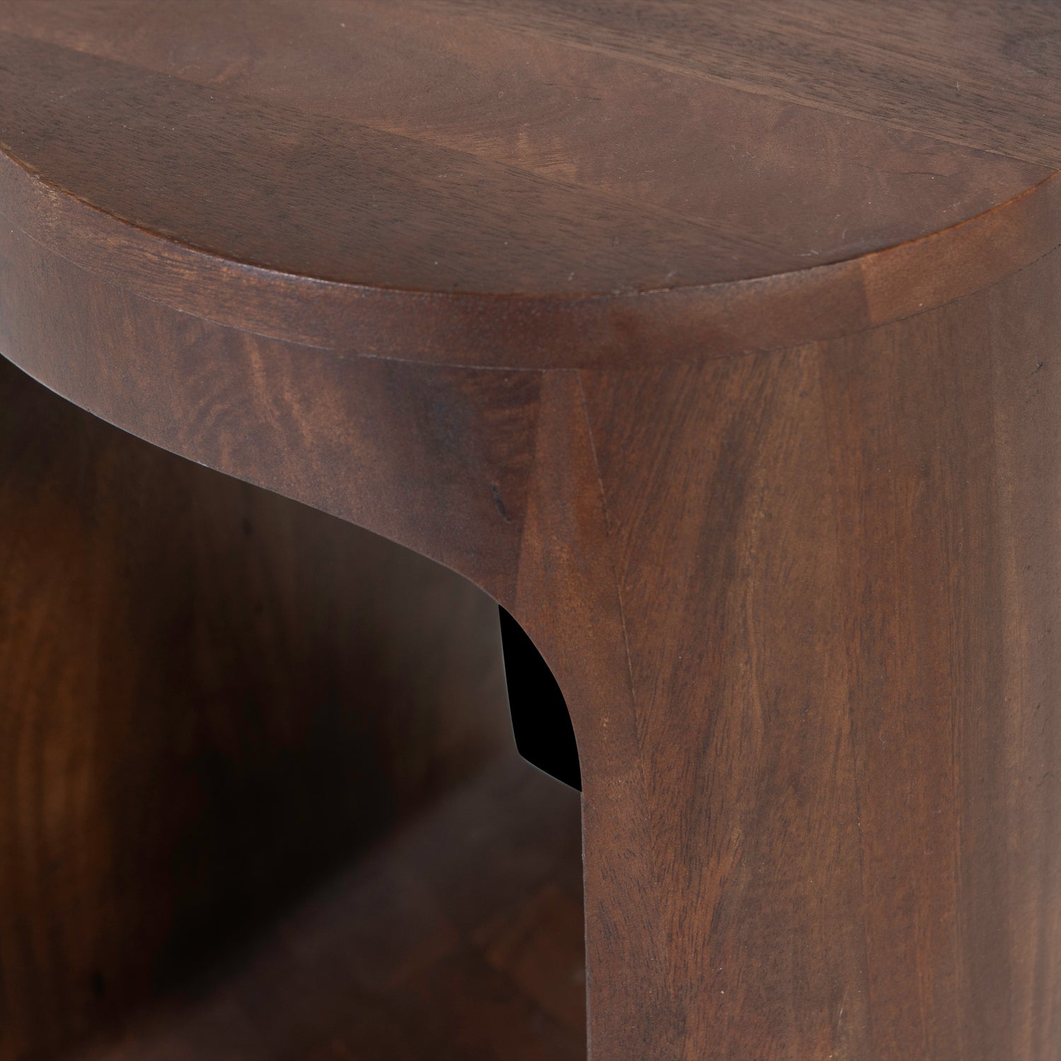De Bayo-bijzettafel is een stijlvol en uniek stuk uit de collectie van het Nederlandse interieurmerk WOOOD. Deze tafel onderscheidt zich door zijn moderne en originele design. De Bayo is vervaardigd uit mangohout met een walnootkleurige afwerking, wat de tafel een warme en uitnodigende uitstraling geeft. Het is niet alleen de perfecte bijzettafel, maar ook een echte eyecatcher die een bijzondere toevoeging is aan elke ruimte.