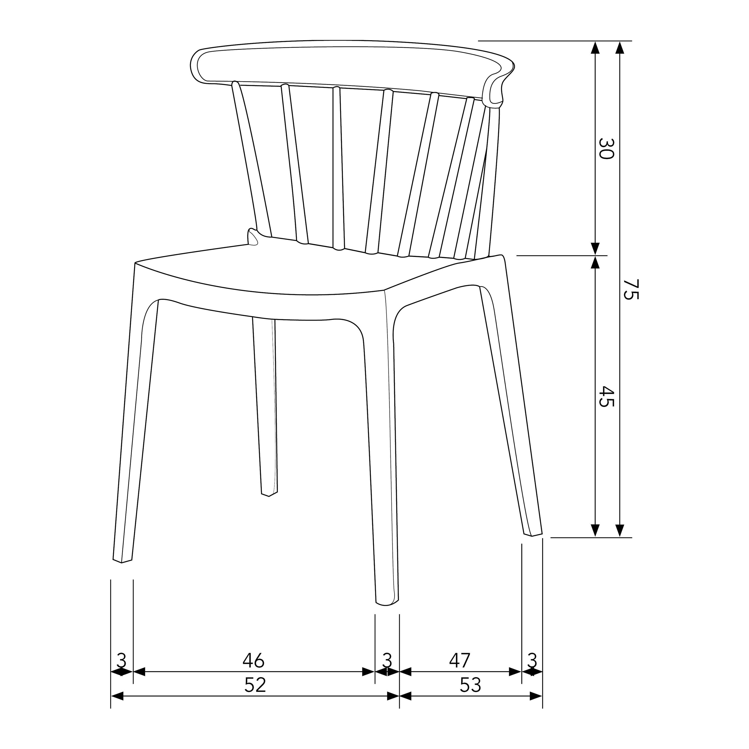 Afmetingen - Hoogte: 75 cm - Breedte: 52 cm - Diepte: 53 cm - Zithoogte: 44,5 cm - Zitbreedte: 43 cm - Zitdiepte: 40 cm - Poothoogte: 41,5 cm - Rugleuning hoogte: 32 cm - Maximale draagkracht: 150 kg