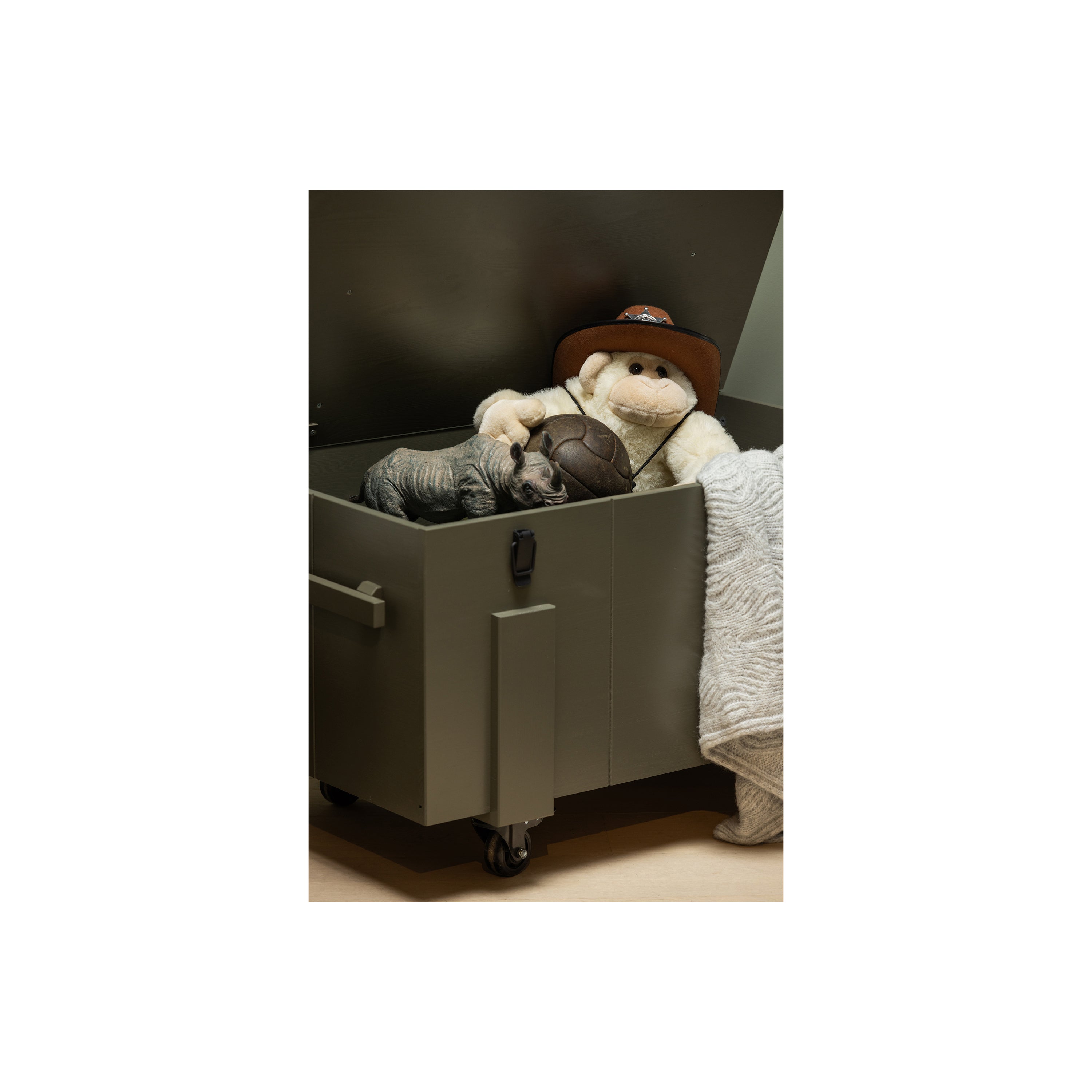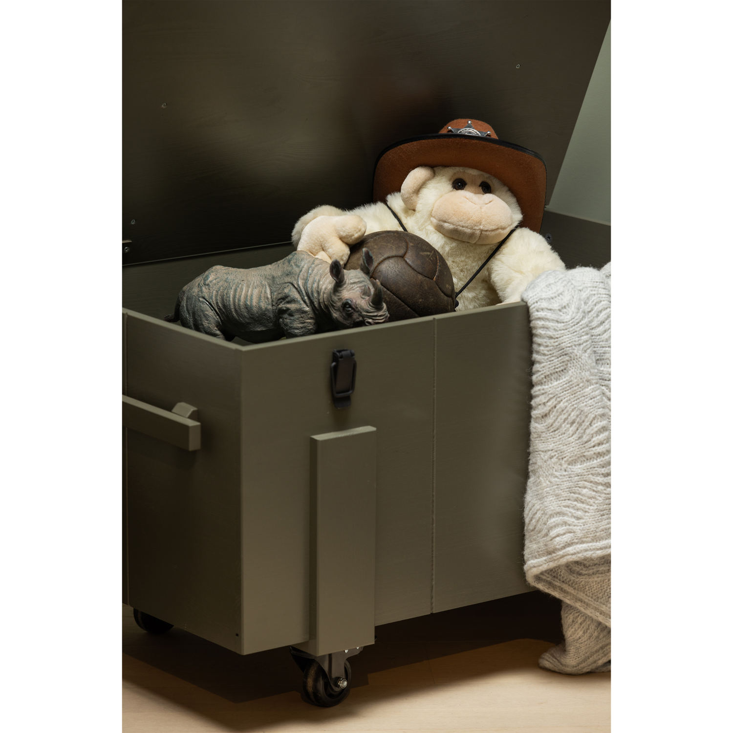 Deze tijdloze Bobby opbergkist komt uit de collectie van het Nederlandse interieurmerk WOOOD. Het tijdloze, eenvoudige design wordt versterkt door de veelzijdige groentint en de duidelijk zichtbare nerven. De opbergkist heeft een zee aan opbergruimte onder de handige klep. Materiaal