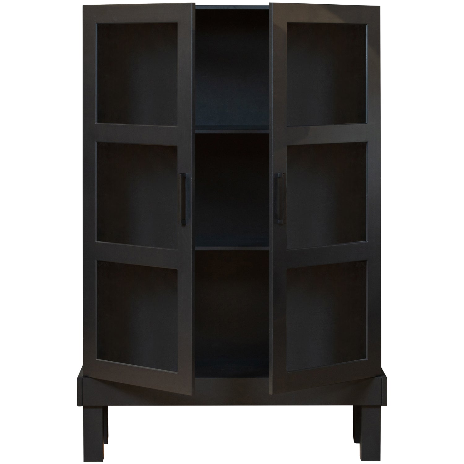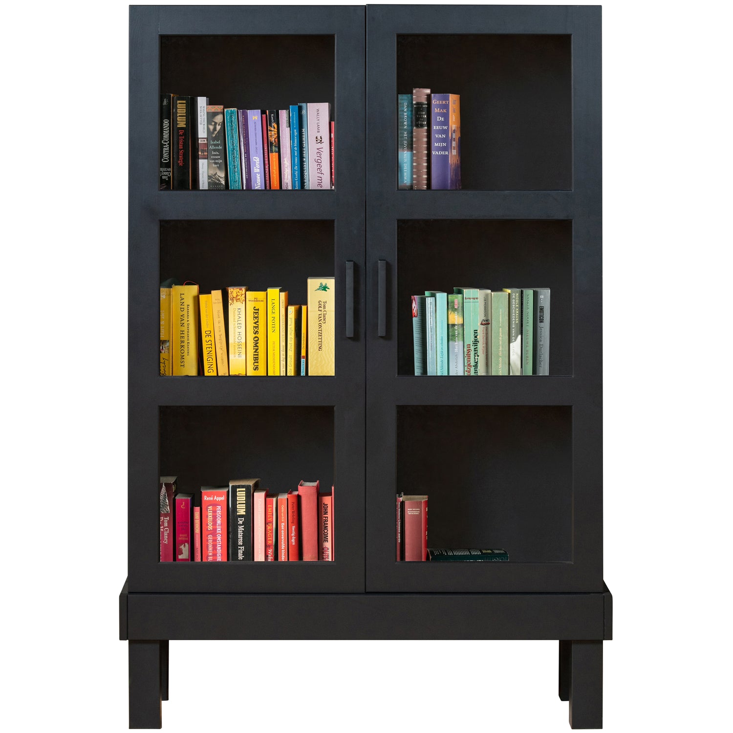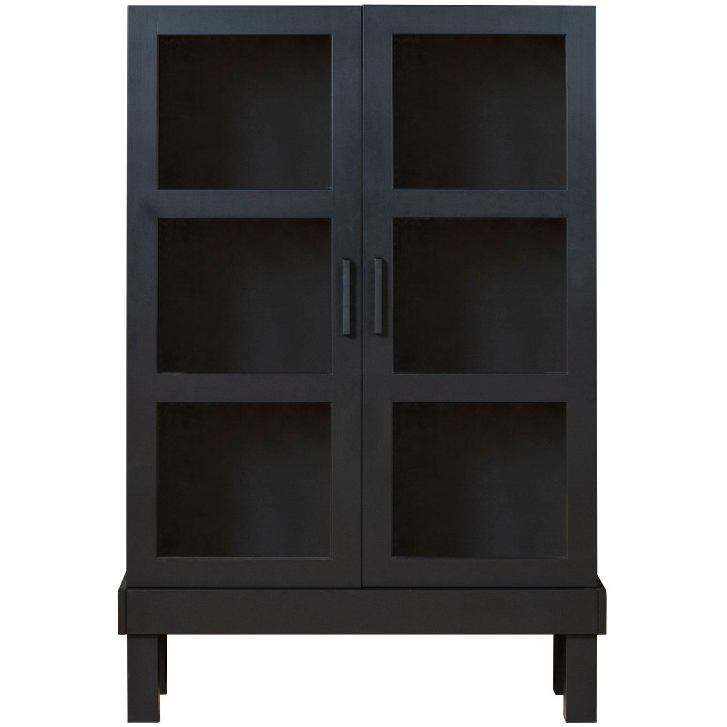 Bonk is een eigentijdse, stoere vitrinekast uit de collectie van het Nederlandse merk WOOOD. Deze vitrinekast is vervaardigd uit grenenhout, FSC gecertificeerde leverancier, en heeft een stoere mat zwarte kleur gekregen. Bonk is voorzien van 3 legplanken, waardoor deze kast genoeg ruimte biedt om accessoires te plaatsen. Deze legplanken bevinden zich achter twee deuren, per deur voorzien van 3 glazen ruiten. De deuren zijn voorzien van een stoere, zwarte metalen greep. Door het tijdloze design past deze kast in ieder interieur thuis.