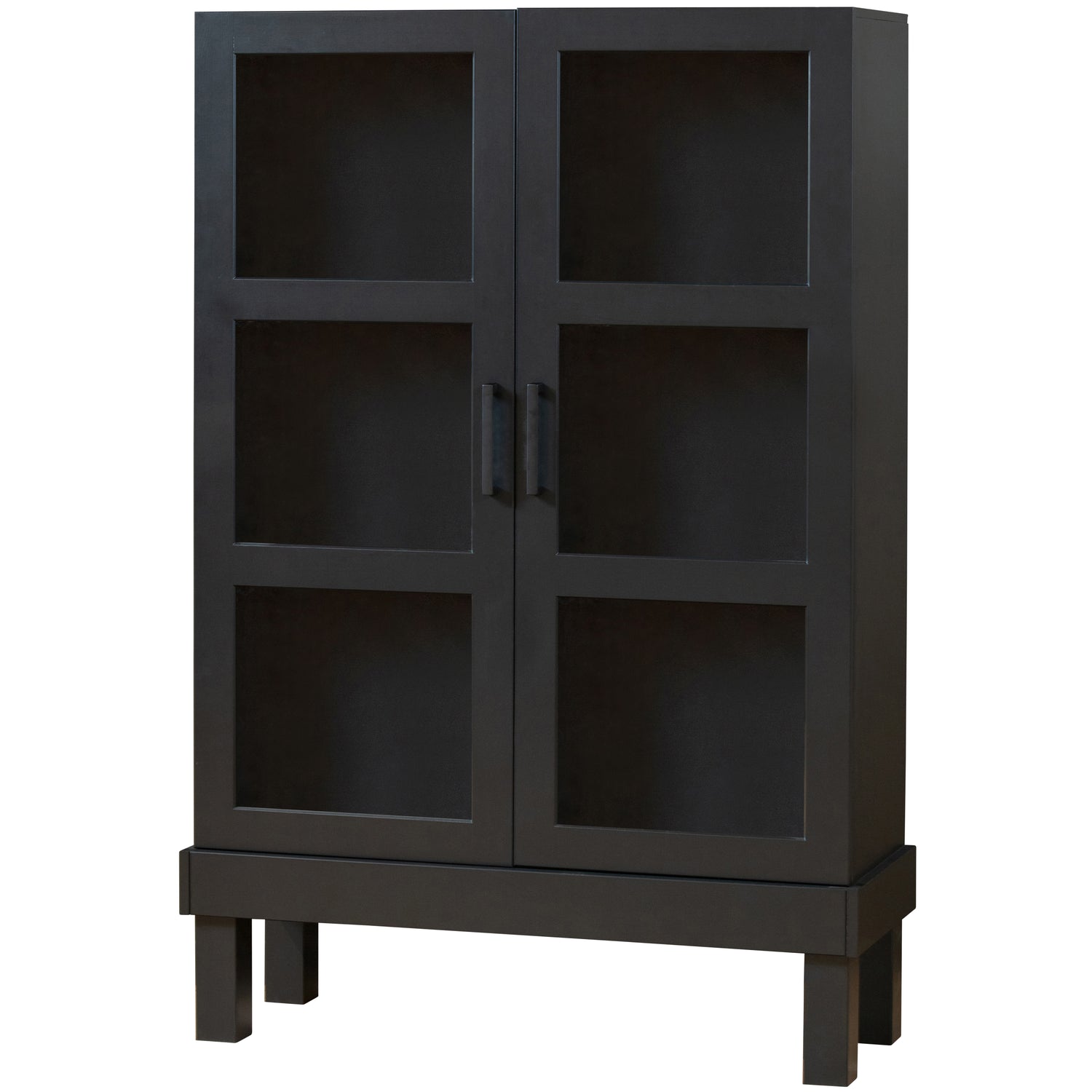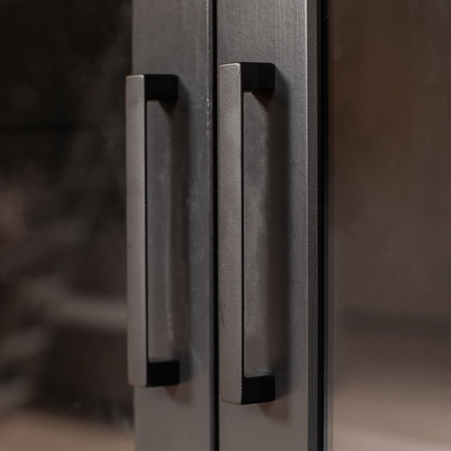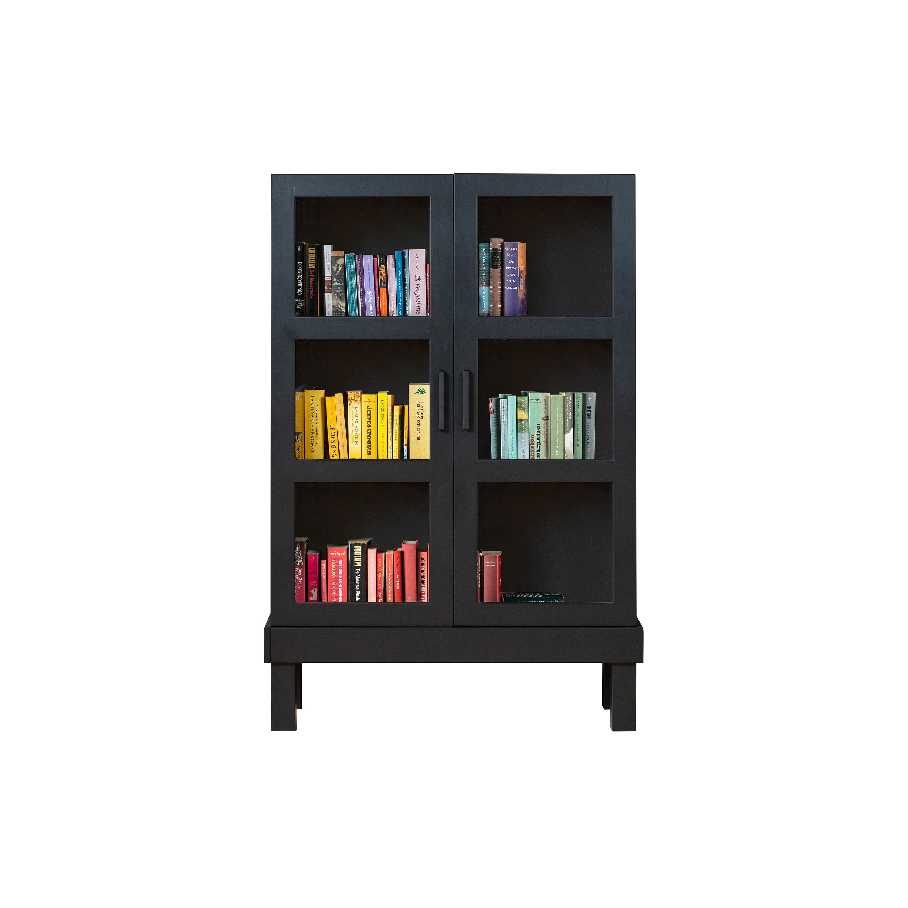 Bonk is een eigentijdse, stoere vitrinekast uit de collectie van het Nederlandse merk WOOOD. Deze vitrinekast is vervaardigd uit grenenhout, FSC gecertificeerde leverancier, en heeft een stoere mat zwarte kleur gekregen. Bonk is voorzien van 3 legplanken, waardoor deze kast genoeg ruimte biedt om accessoires te plaatsen. Deze legplanken bevinden zich achter twee deuren, per deur voorzien van 3 glazen ruiten. De deuren zijn voorzien van een stoere, zwarte metalen greep. Door het tijdloze design past deze kast in ieder interieur thuis.