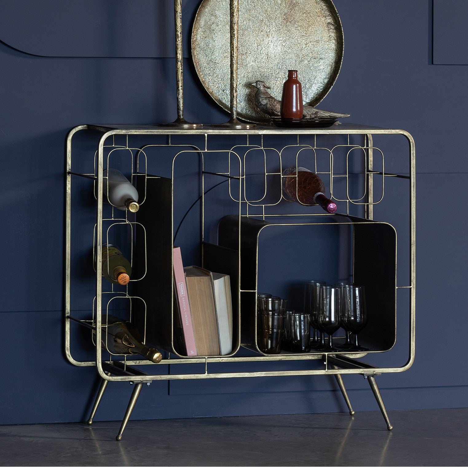 - Biedt ruimte voor mooie wijnflessen én accessoires