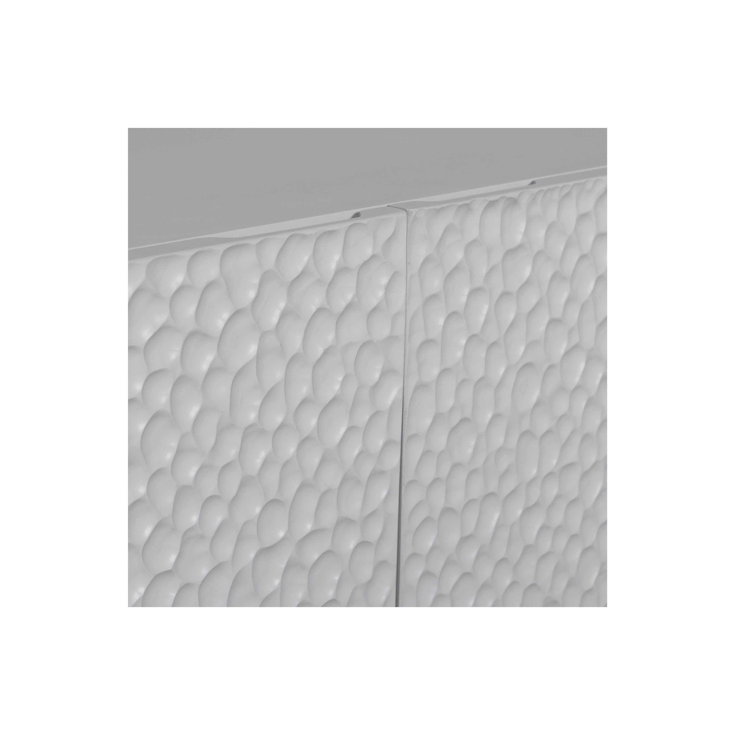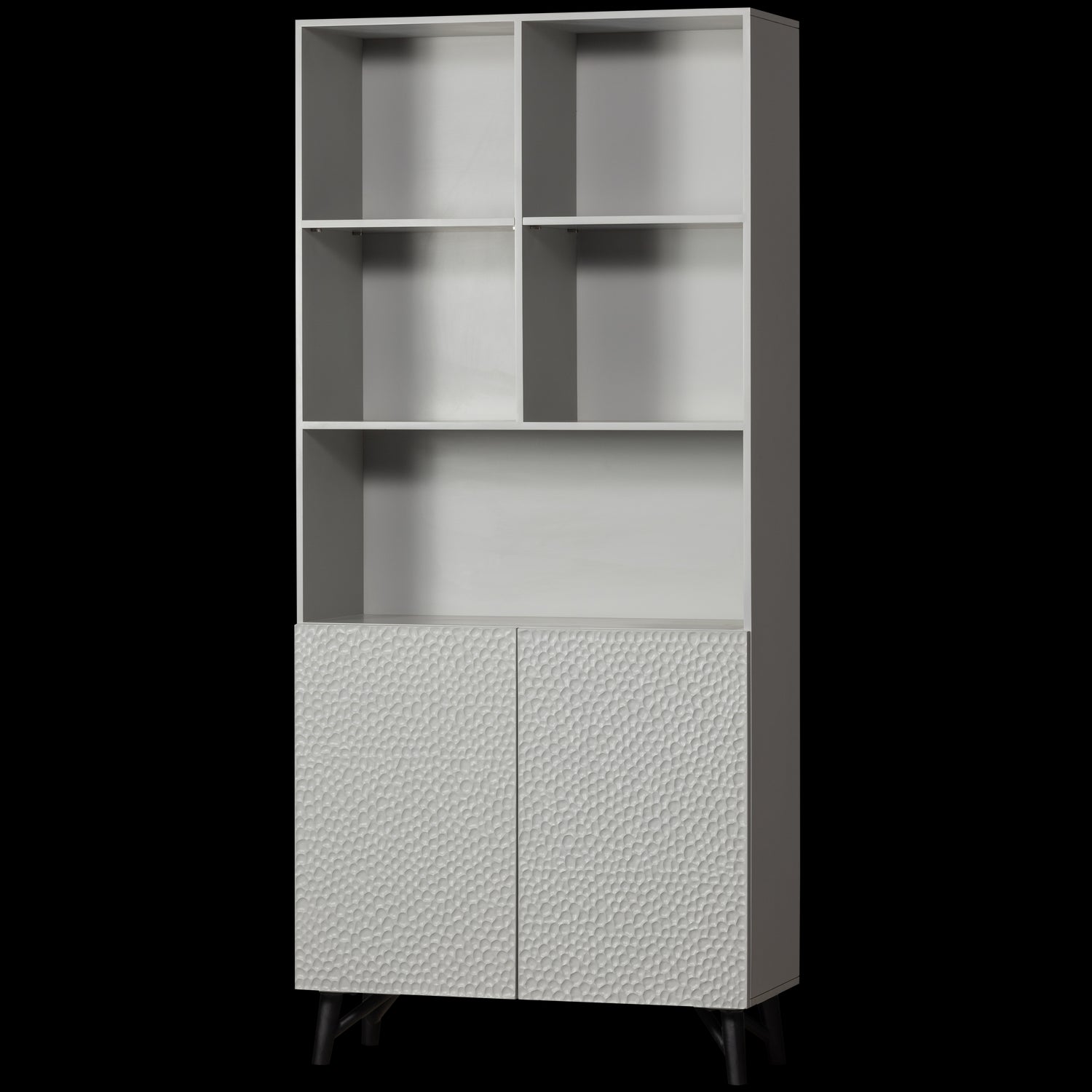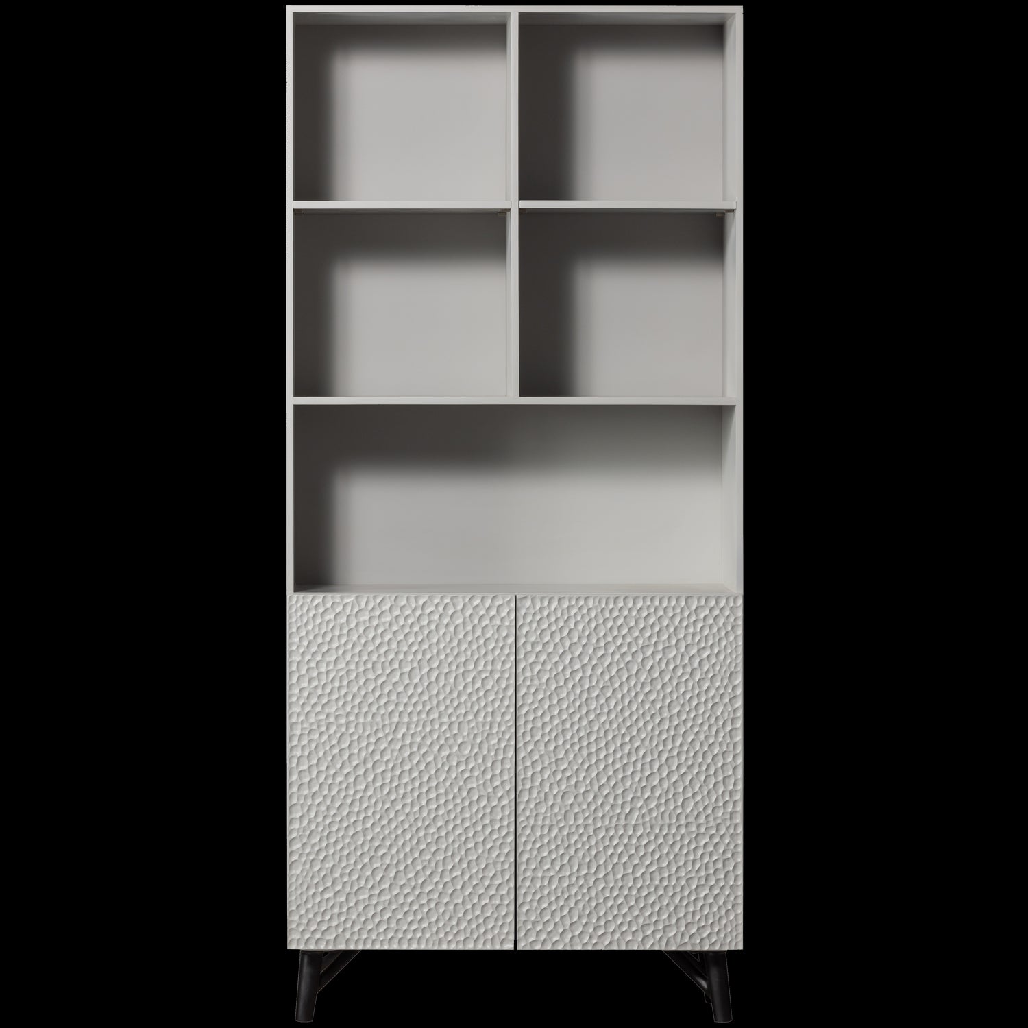 De Carved 2-deurs kast uit de WOOOD collectie is een opvallende en stijlvolle opbergoplossing die een kunstzinnige uitstraling heeft door de grafische houtbewerkingen op de deuren. Het ontwerp is geïnspireerd door Oosterse houtbewerking en het geeft de kast een uniek 3D-effect. De kast is afgewerkt in een mistgrijze kleur, die zorgt voor een rustige en moderne uitstraling.