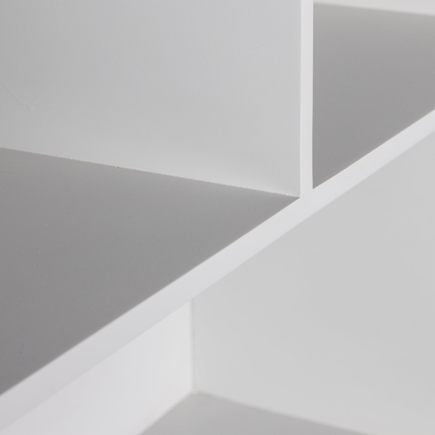 De kast heeft vijf open vakken aan de bovenkant voor het etaleren van accessoires, met de bovenste vier vakken die elk 42 cm breed zijn en het onderste vak van 86 cm breed. Alle vakken zijn 37 cm hoog en 35 cm diep. De legplanken kunnen maximaal 10 kg dragen (gelijkmatig verdeeld). Achter de twee deuren bevinden zich twee opbergvakken van 32,5 cm hoog en bieden extra ruimte voor het opbergen van items.