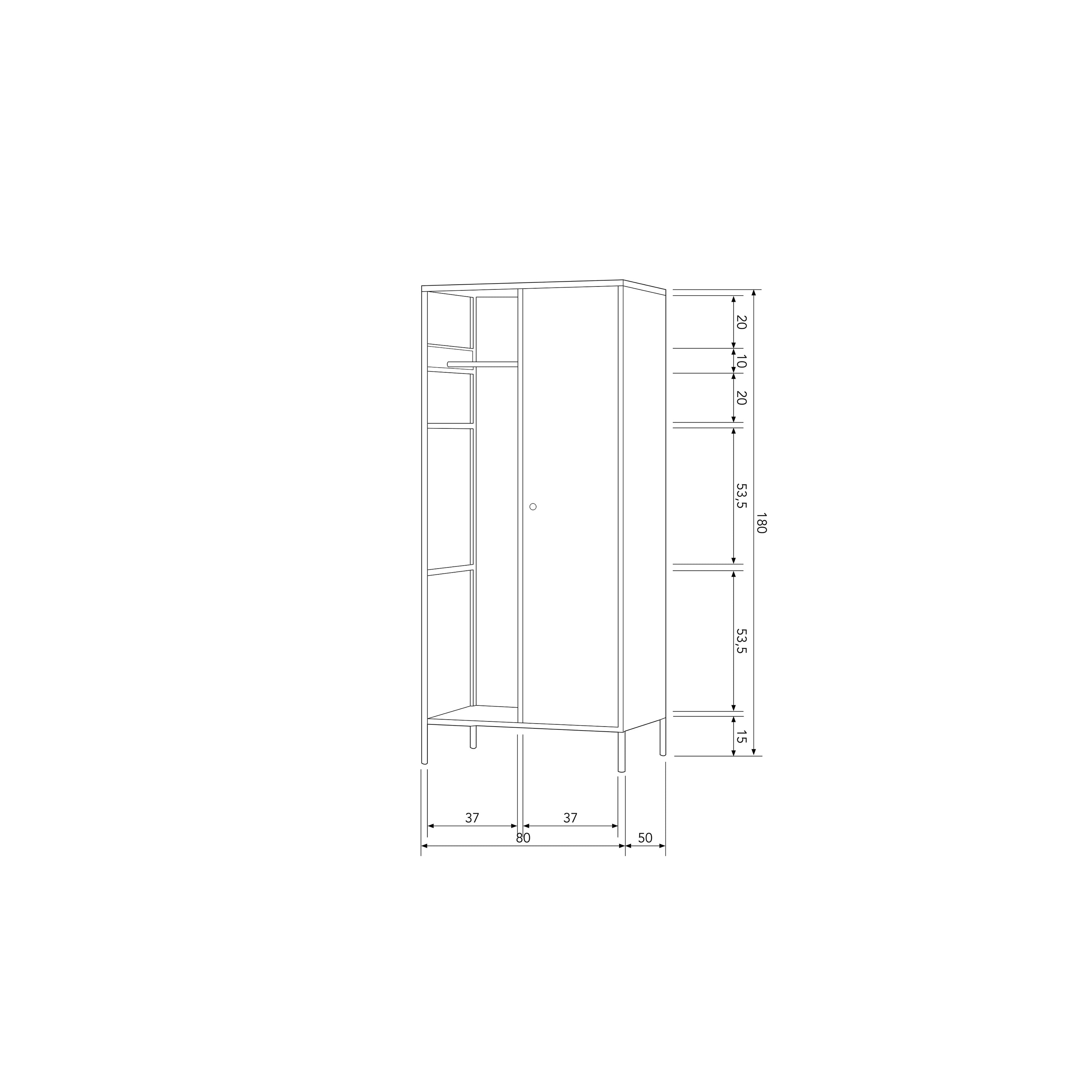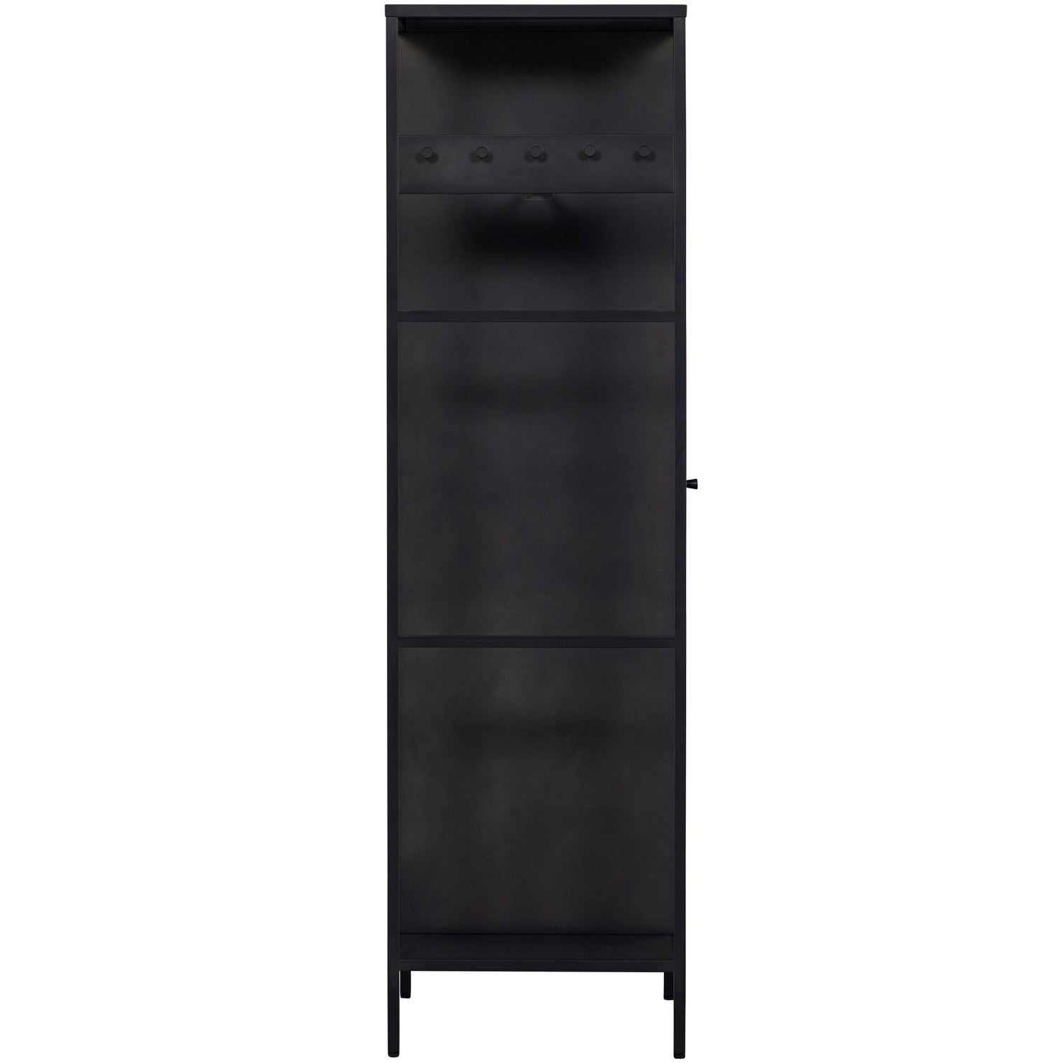 De Coen garderobekast wordt gekenmerkt door zijn luchtige, eenvoudige design. De garderobekast komt uit de collectie van het Nederlandse interieurmerk WOOOD en is een ideale opberger met een compacte indeling. De kast bevat maar liefst vijf ophanghaken, een roede en vier opbergvakken. Ruimte genoeg voor kleding en accessoires!