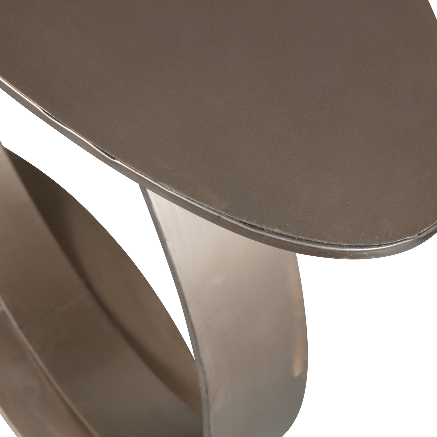 Deze slanke sidetable komt uit de collectie van het Nederlandse interieurmerk WOOOD en oogt zeer luchtig door het uniek gevormde frame. De Comic sidetable heeft een luxueuze champagnekleurige glans en een ovaalgevormd blad, klaar voor het presenteren van jouw mooiste accessoires. Artikelkenmerken