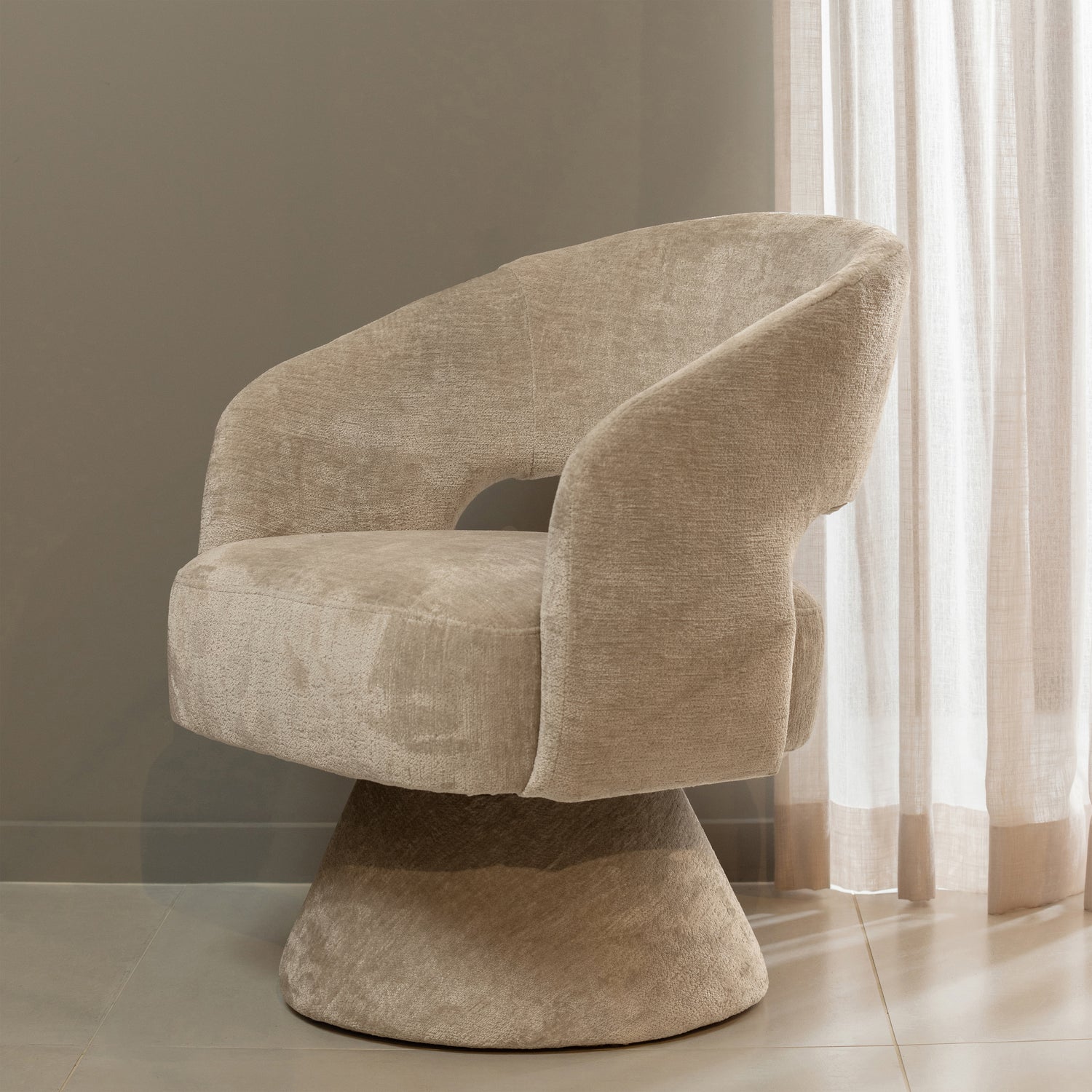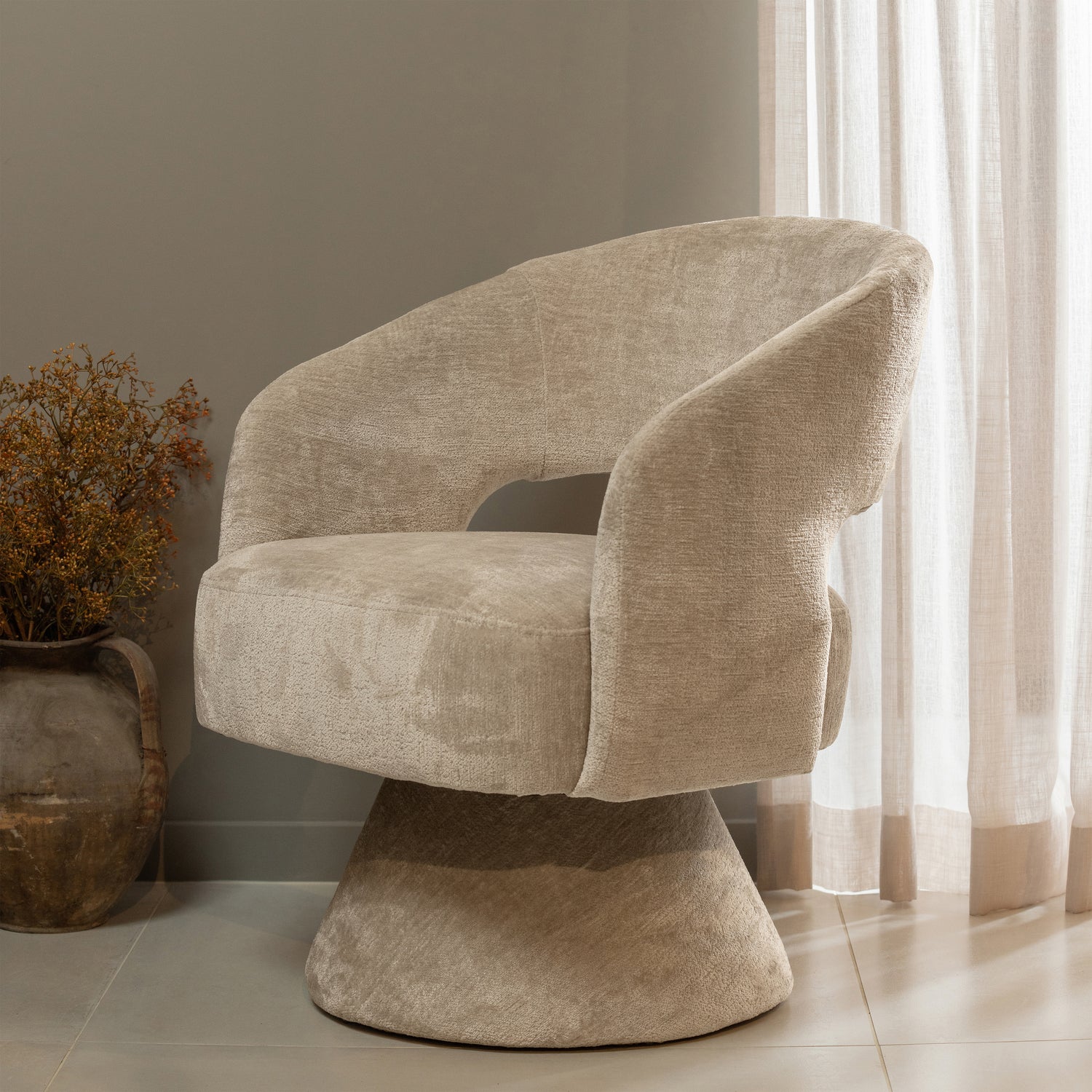 De Ebba draaifauteuil uit de collectie van het Nederlandse merk WOOOD heeft een elegante uitstraling en is voorzien van zachte organische vormen. De zitting, rugleuning en onderstel van Ebba zijn bekleed met een zachte chenille stof. Ebba nodigt uit om eens lekker te relaxen!