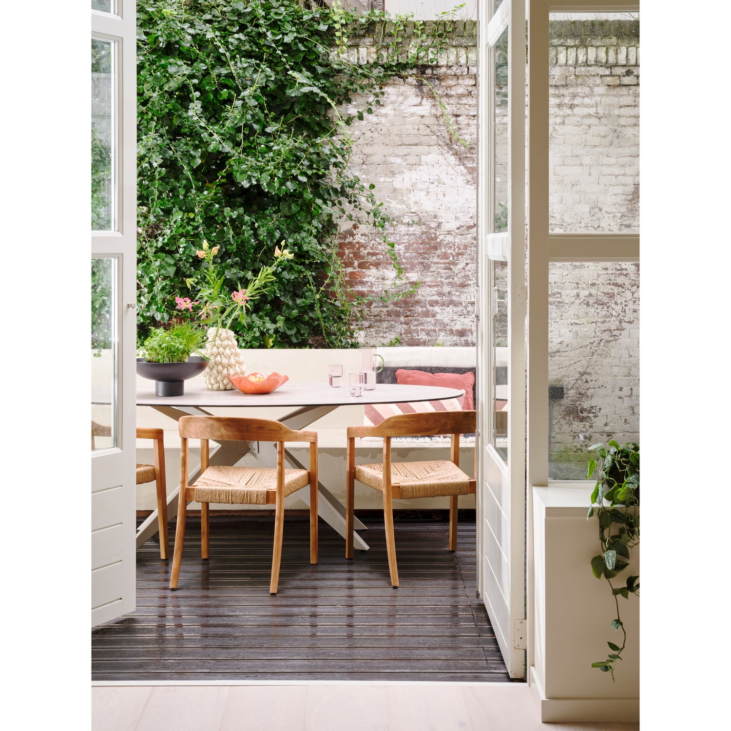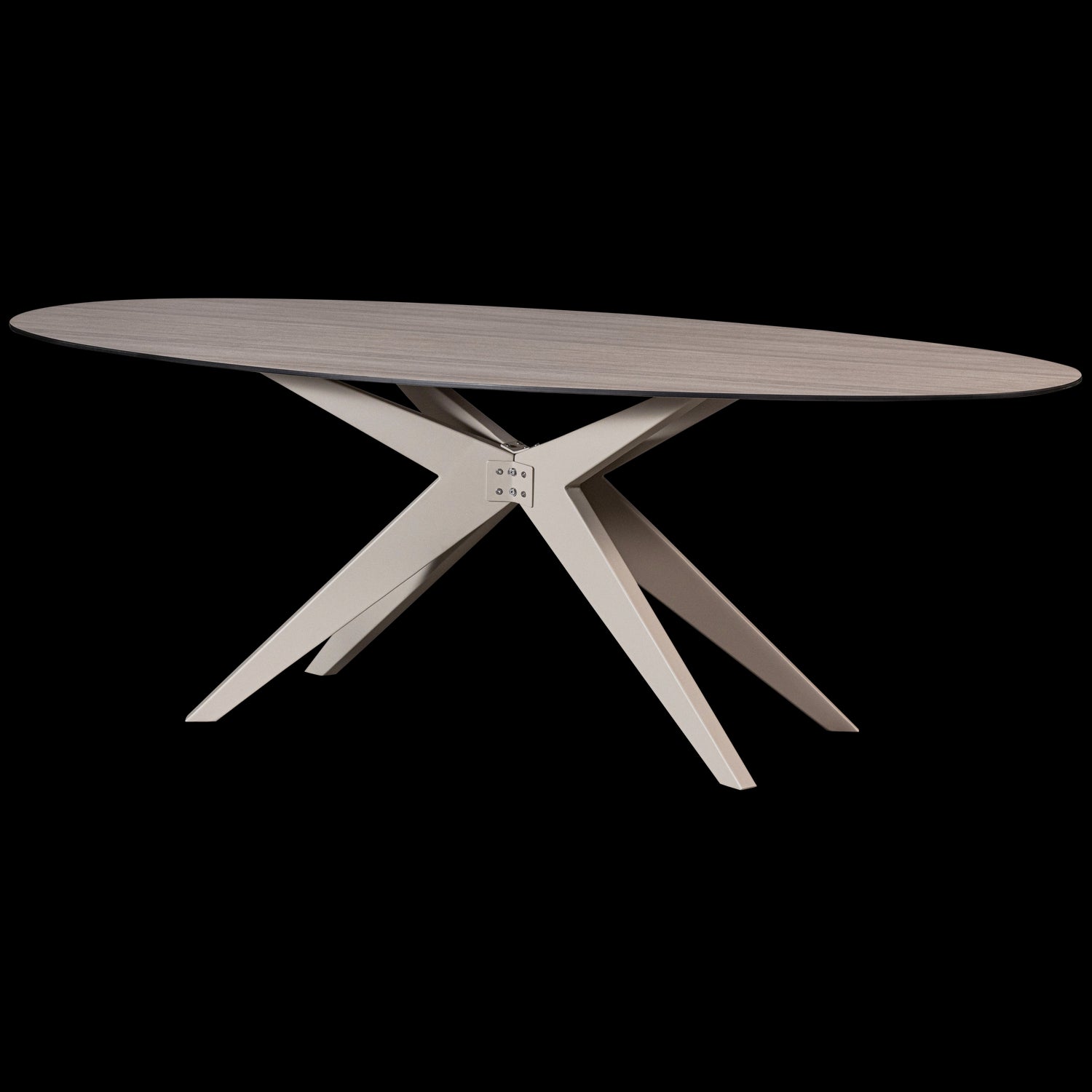High class dineren kan aan de Elk outdoor eettafel uit de WOOOD collectie. Het lichtgewicht aluminium framewerk is afgewerkt in een zandkleurige, matte poedercoating. Het tafelblad is gevormd uit UV-coated HPL (high-pressure-laminated) materiaal. Zeer bestand tegen alle weersomstandigheden.