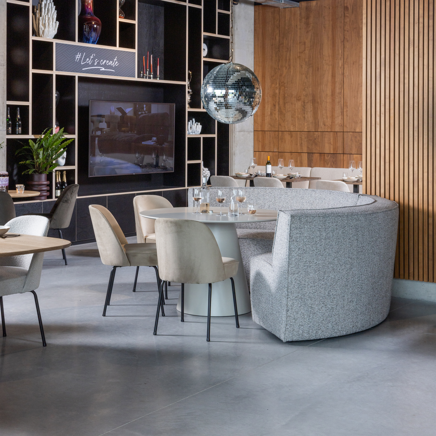 De Europa eetbank, uit de collectie van het Nederlandse interieurmerk WOOOD, heeft een unieke ronde vorm. De comfortabele zit wordt gefaciliteerd door de hoge rugleuning en de stevige zit. Gegarandeerd urenlang tafelplezier!