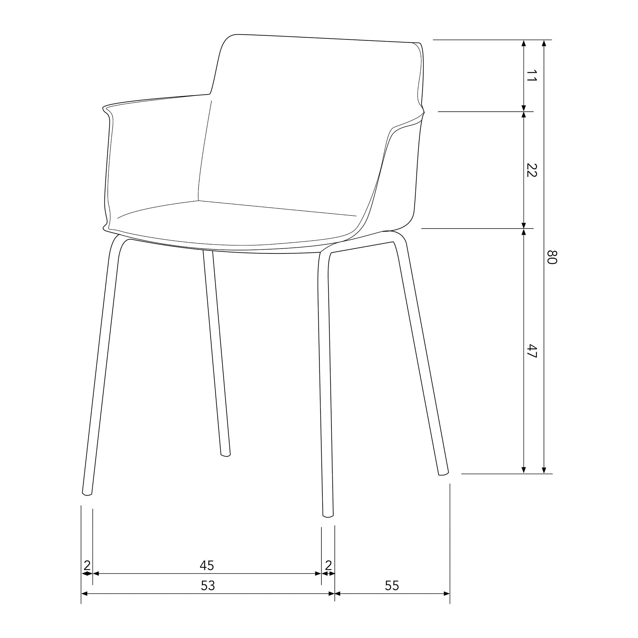 Afmetingen - Hoogte: 80 cm - Breedte: 53 cm - Diepte: 55 cm - Zithoogte: 45 cm - Zitbreedte: 44 cm - Zitdiepte: 43 cm - Armleuninghoogte: 67/22 cm - Armleuningdikte: 0,5 cm - Rugleuninghoogte: 80/35 cm - Rugleuningdikte: 0,5 cm - Poothoogte: 47 cm - Pootdikte: ø2 cm - Afstand tussen voorpoten: 45 cm - Afstand tussen voor- en achterpoot: 47 cm - Draaggewicht: 90 kg - Gewicht: 21 kg