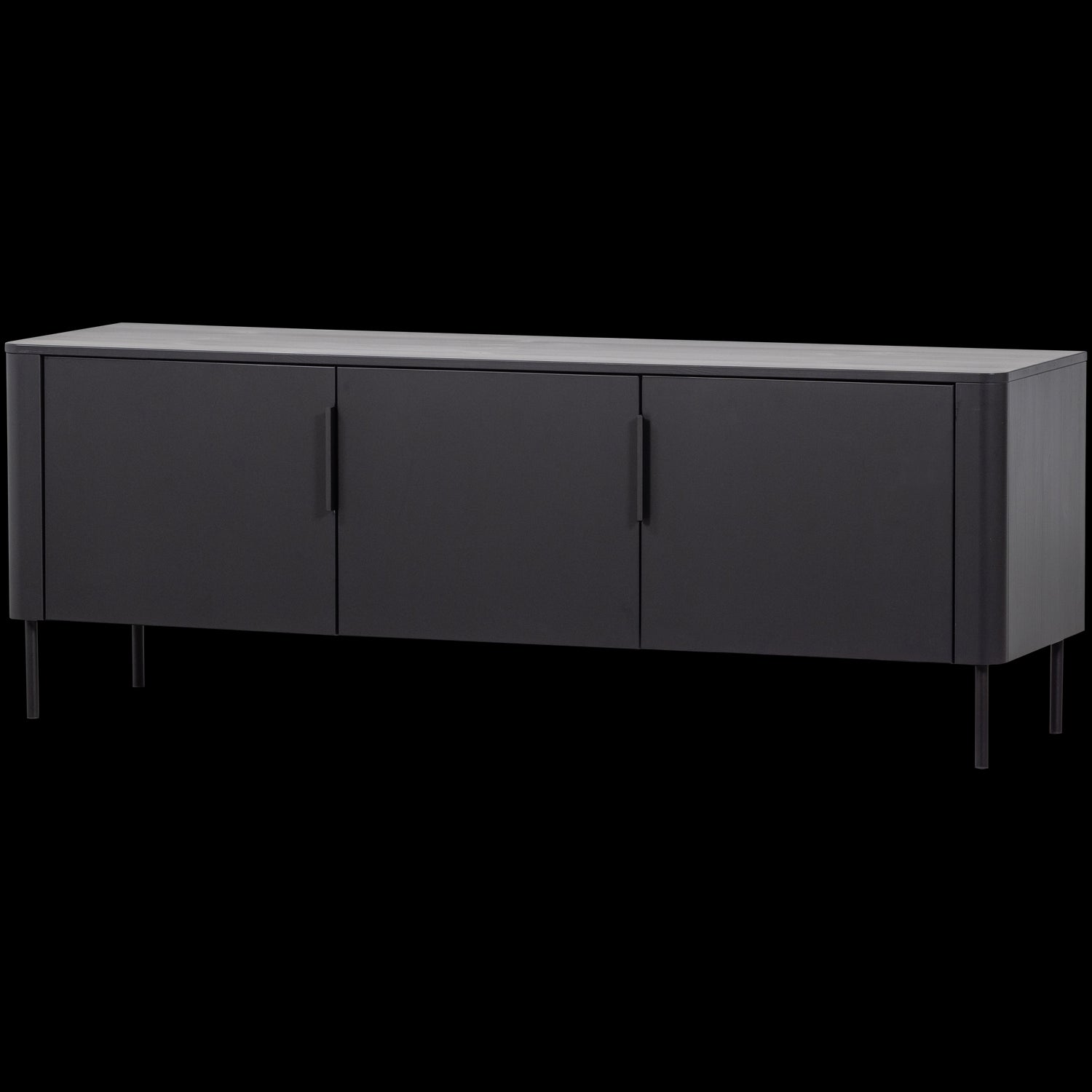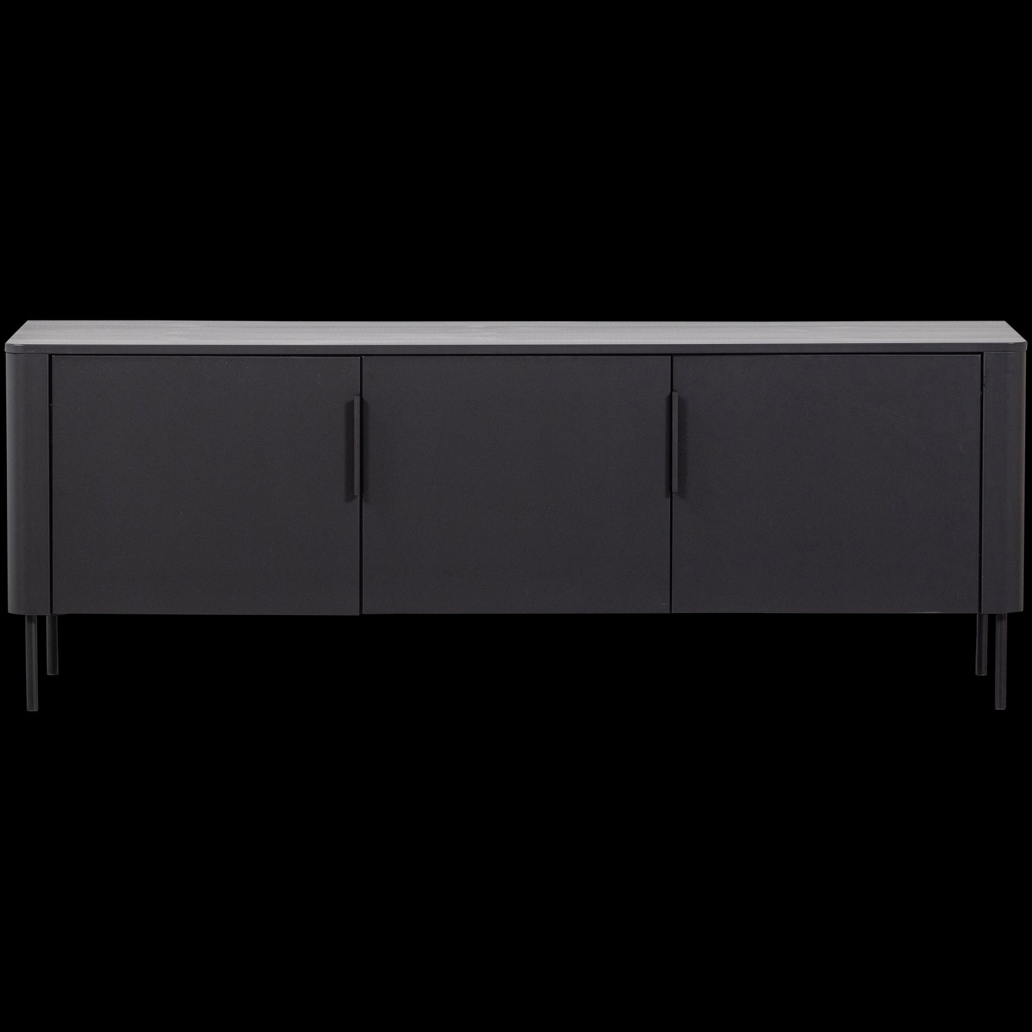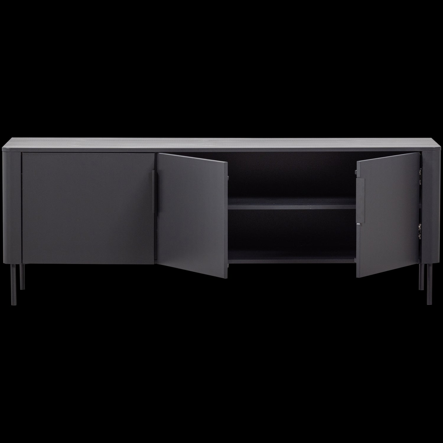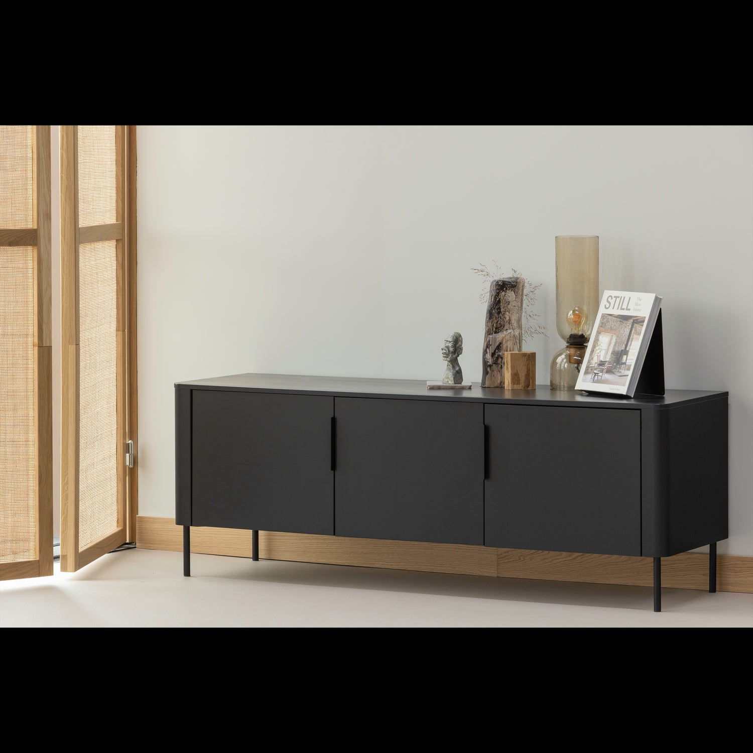 Strak en modern, dat zijn de eigenschappen van het Gunnar tv-meubel, afkomstig van het Nederlandse interieurmerk WOOOD. Berg jouw accessoires veilig op achter een van de drie deurtjes en geniet van een avondje tv-kijken op de bank. Dit tv-meubel heeft een matzwarte afwerking, een stijlvolle toevoeging aan jouw interieur!