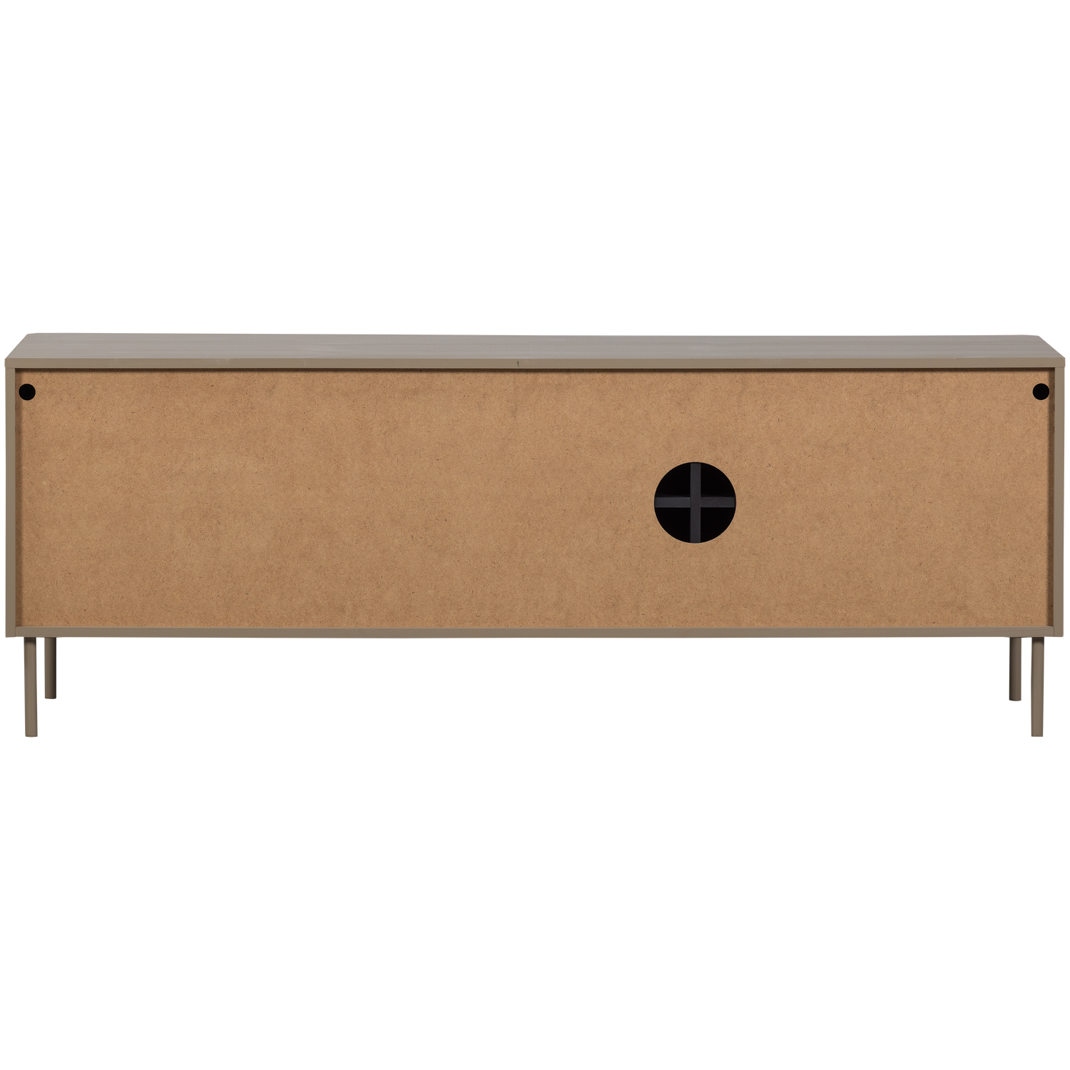 Strak en modern, dat zijn de eigenschappen van het Gunnar tv-meubel, afkomstig van het Nederlandse interieurmerk WOOOD. Berg jouw accessoires veilig op achter een van de vier deurtjes en geniet van een avondje tv-kijken op de bank. Dit royale tv-meubel heeft een matte mudkleurige afwerking en is een stijlvolle toevoeging aan jouw interieur!