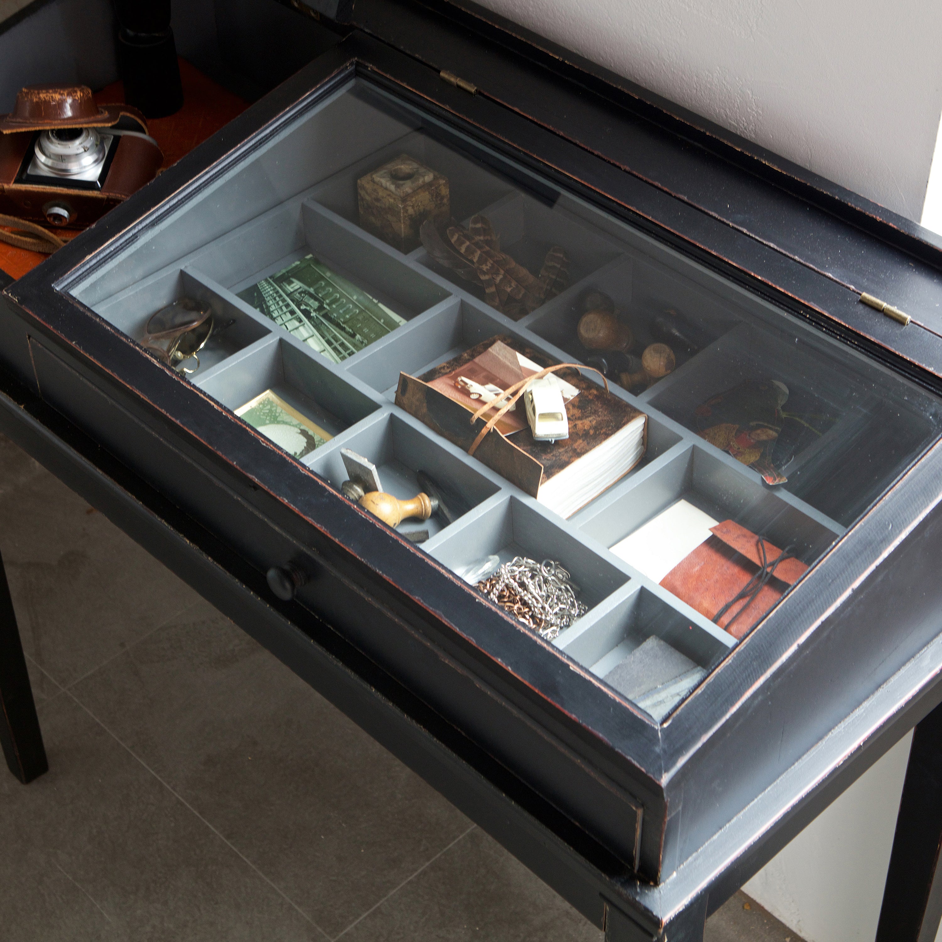 - Stoere vitrinekast van H 98 x B 101 x D 46 cm