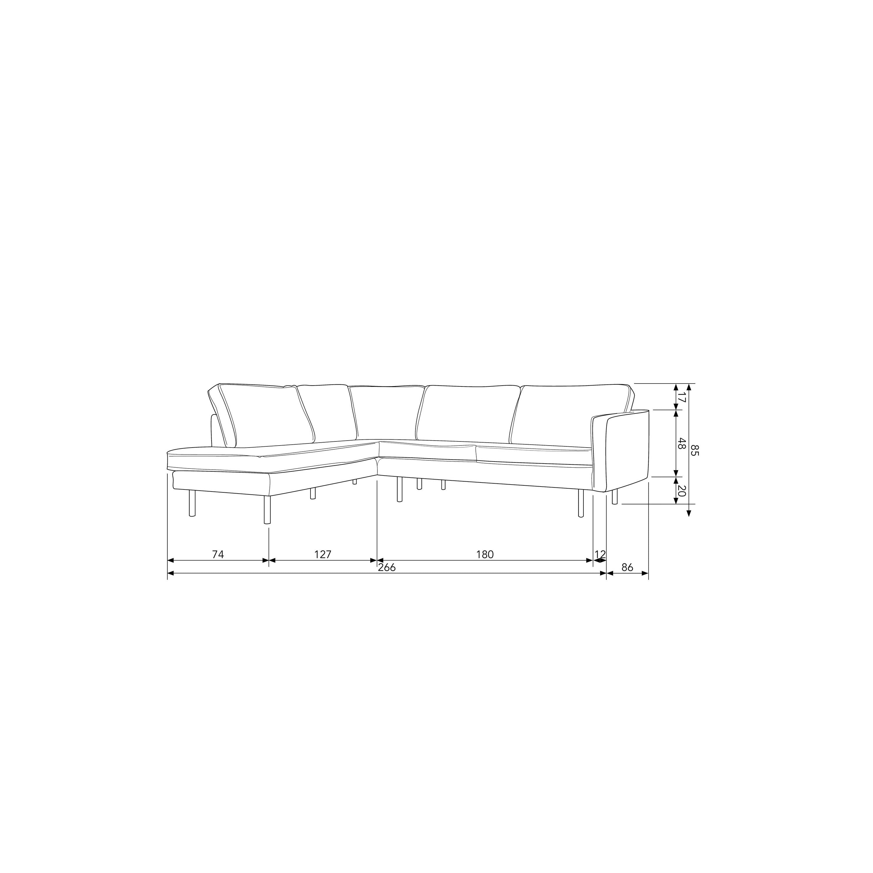 De Rodeo hoekbank wordt in twee pakketten geleverd. De poten zijn eenvoudig te bevestigen aan de hand van de bijgeleverde montagehandleiding. Plaats voor het beschermen van harde vloeren viltglijders aan de onderzijde van de poten.