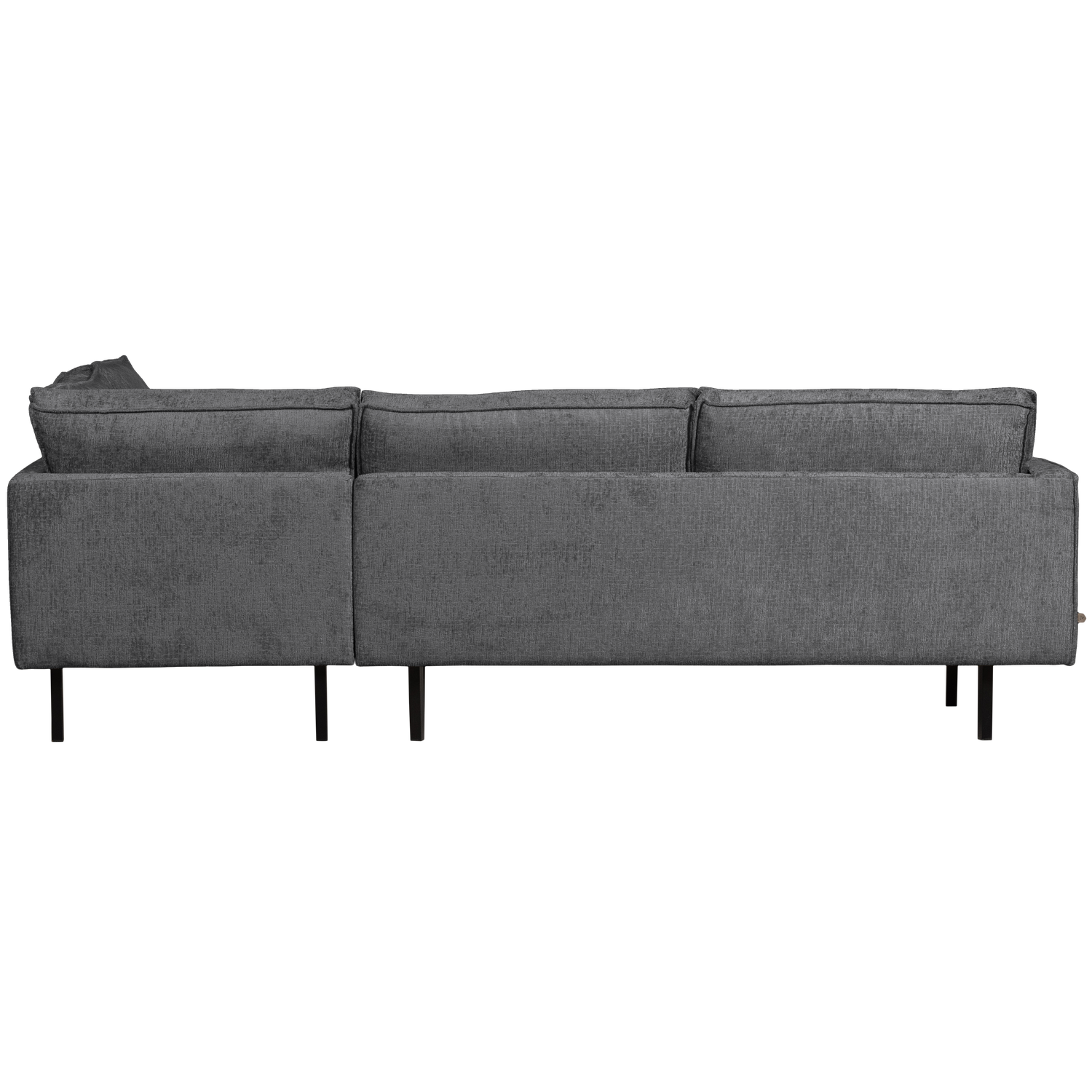De Rodeo hoekbank is opgebouwd uit een combinatie van massief hout, spaanplaat, polyurethaan schuim met een dichtheid van 25 kg/m3 en een zigzag vering. De zitting bevat een polyurethaan schuim met een dichtheid van 30 kg/m3 (T3037). De rugleuning bestaat uit een combinatie van 70% gesneden schuim en 30% siliconen. Deze Rodeo is bekleed met een grove velvet. Onze rijke Ferra velvet heeft een opvallende structuur, wat zorgt voor een luxe uitstraling en bijzondere glans. De zachte stof is gemaakt van 100% polyester, wat het onderhoud heel gemakkelijk maakt. De Ferra structuur velvet heeft een Martindale van 85.000 en is dus goed bestand tegen krassen, verkleuring en pillen. Ferra voelt zeer zacht aan vanwege de chenille garens, de jacquard weeftechniek zorgt voor een volumineuze bekleding. Afmetingen