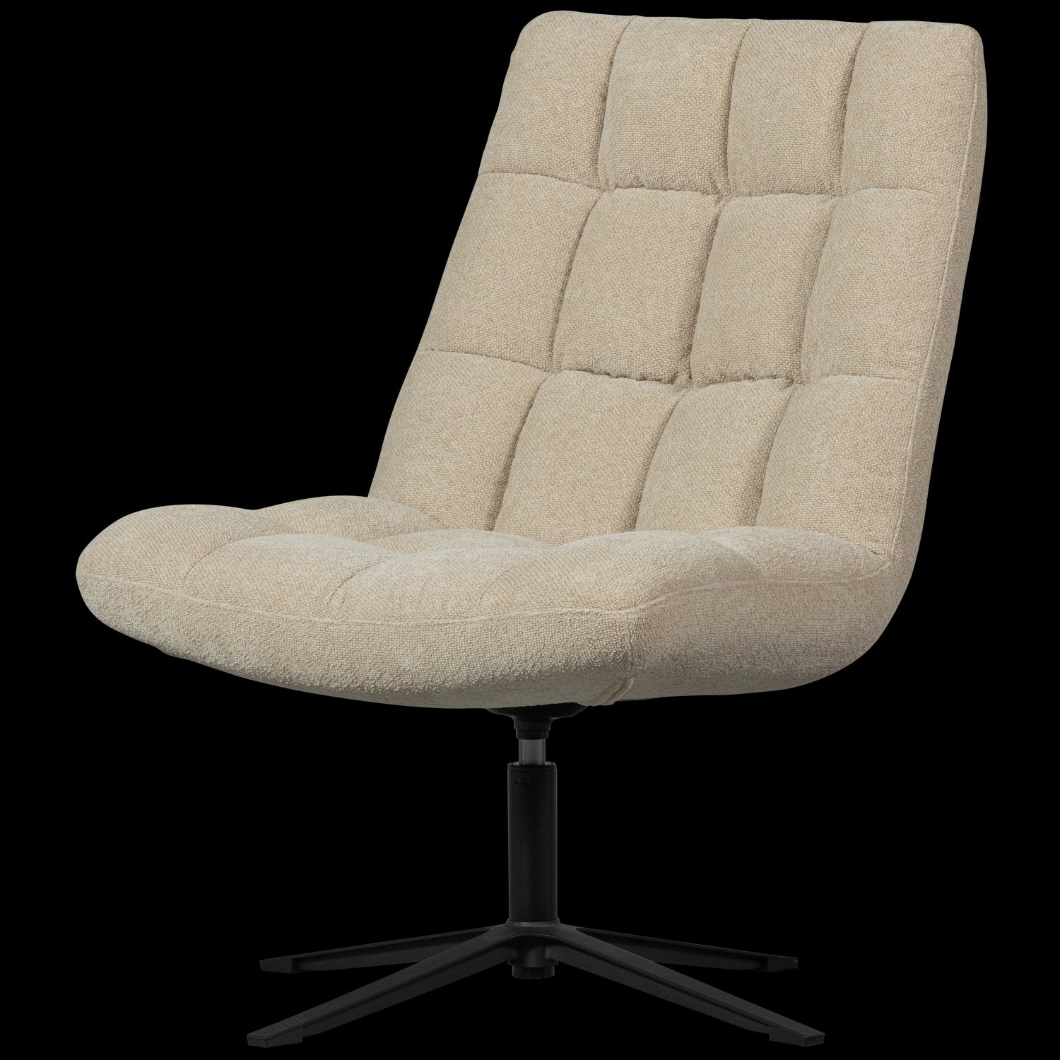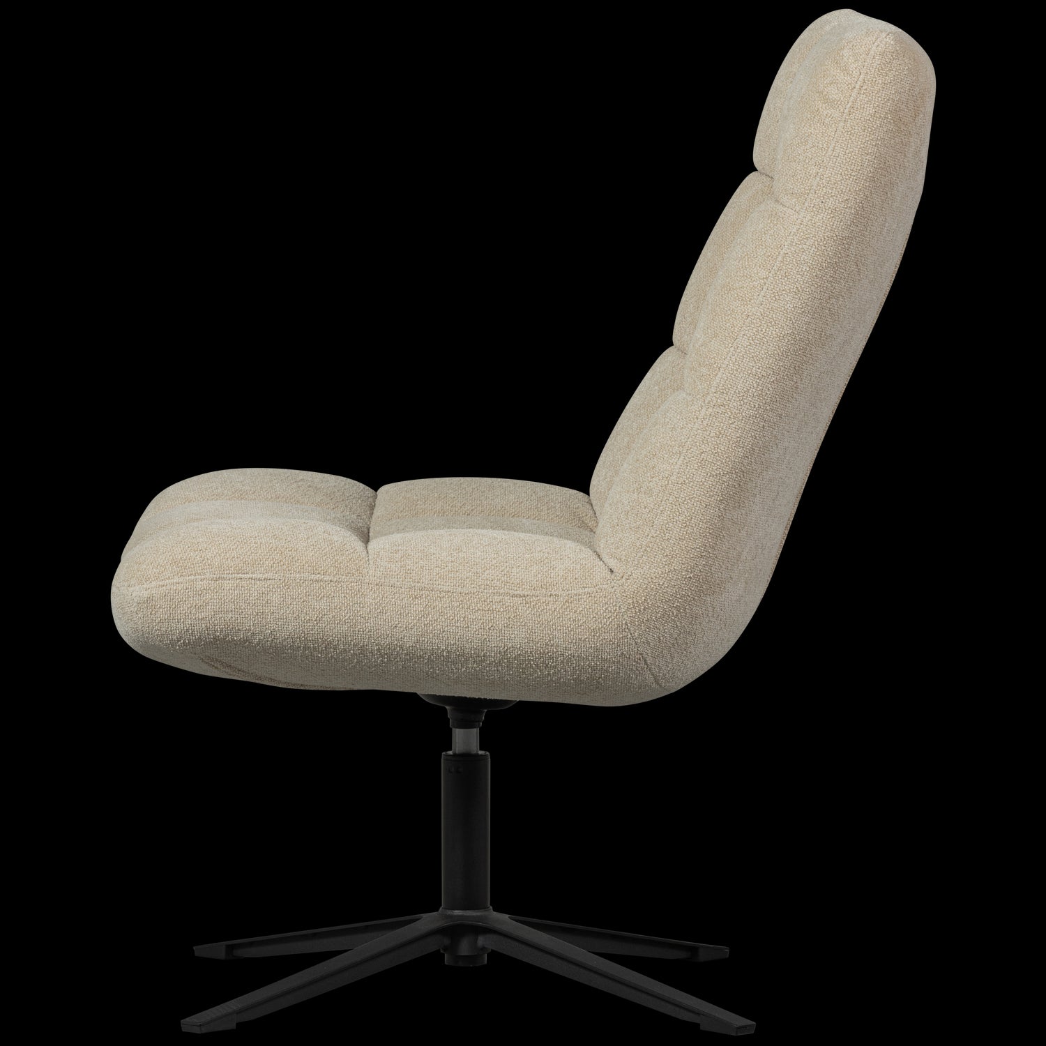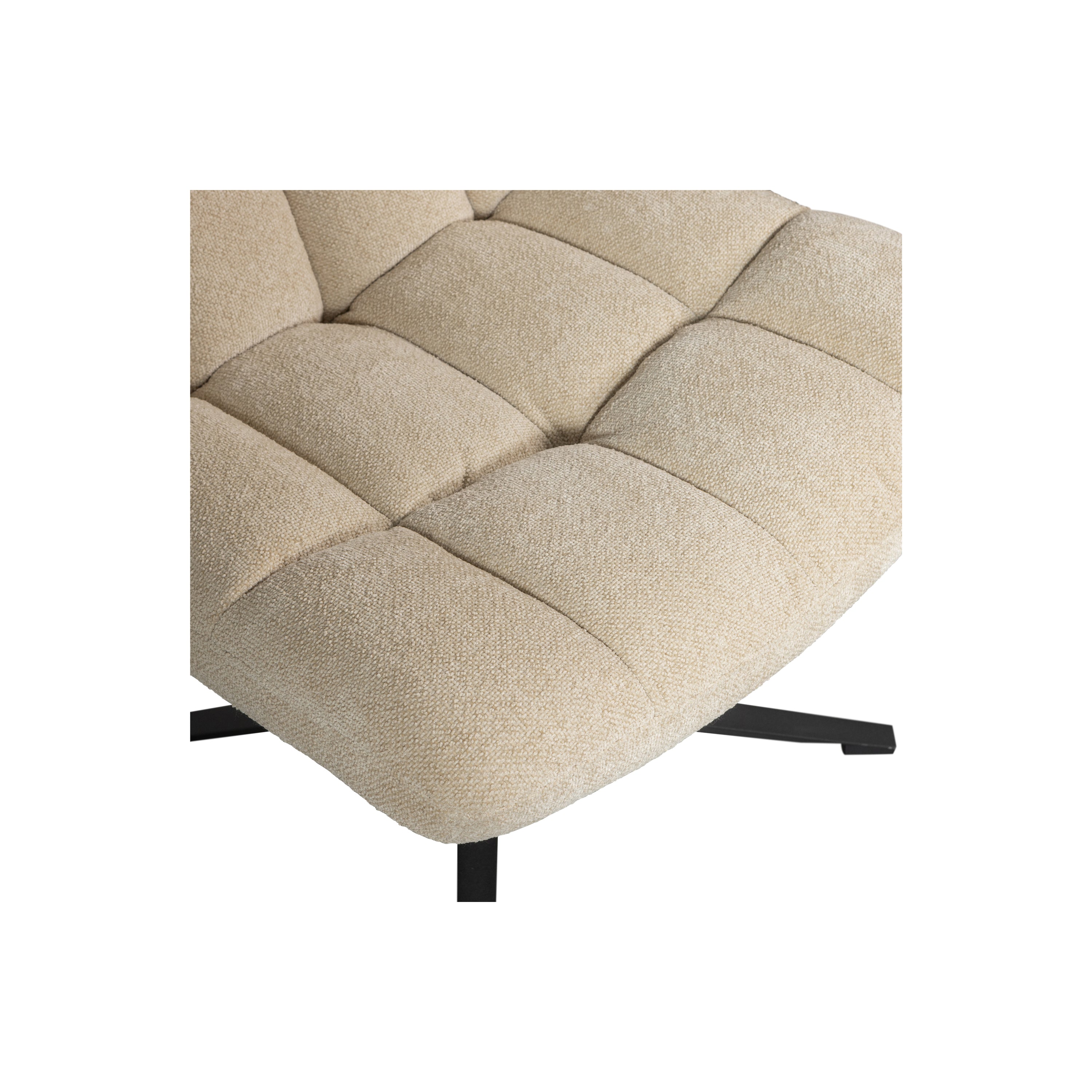 De Job draaifauteuil uit de collectie van het Nederlandse merk WOOOD heeft een stoere uitstraling en is voorzien van zachte organische vormen. De zitting en rugleuning van Job zijn bekleed met een wollige boucléstof. Het onderstel is gemaakt van metaal voorzien van een zwarte poedercoating. Job nodigt uit om eens lekker te relaxen! Materiaal