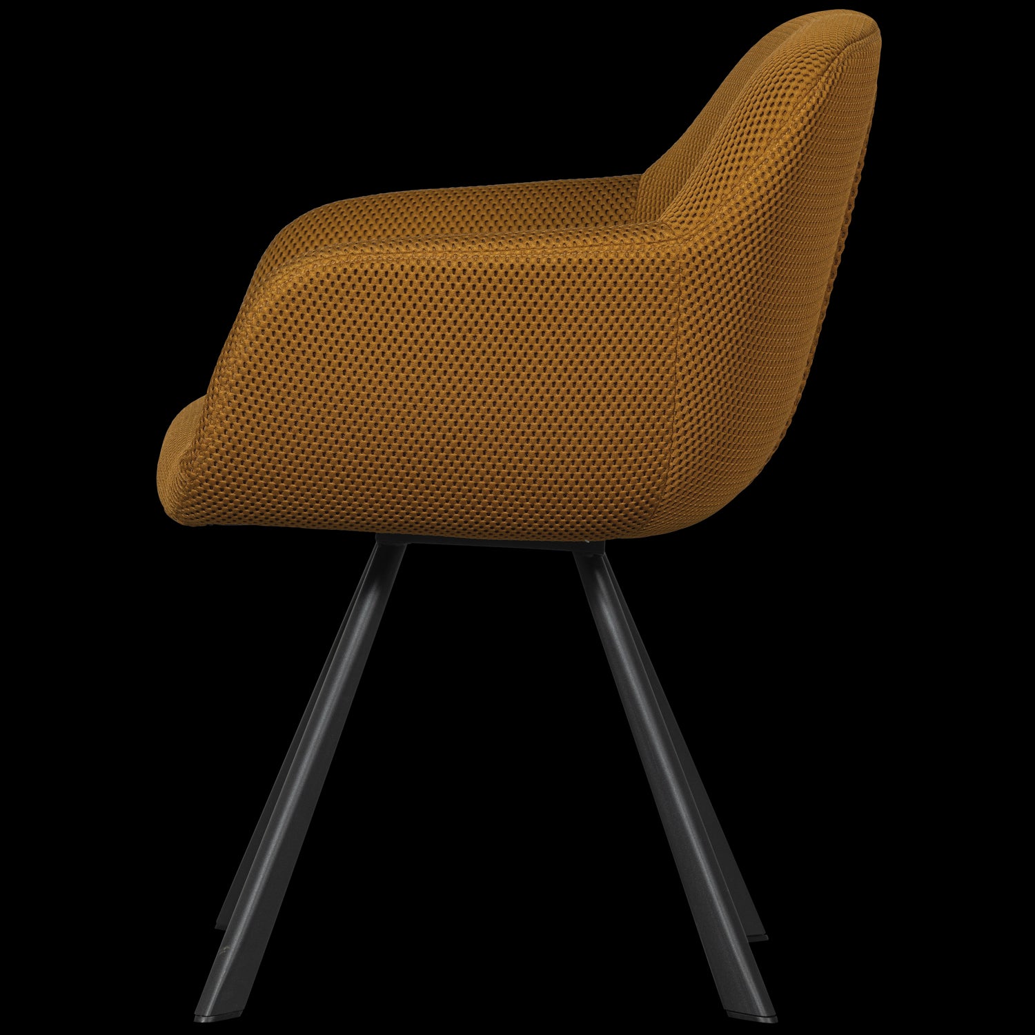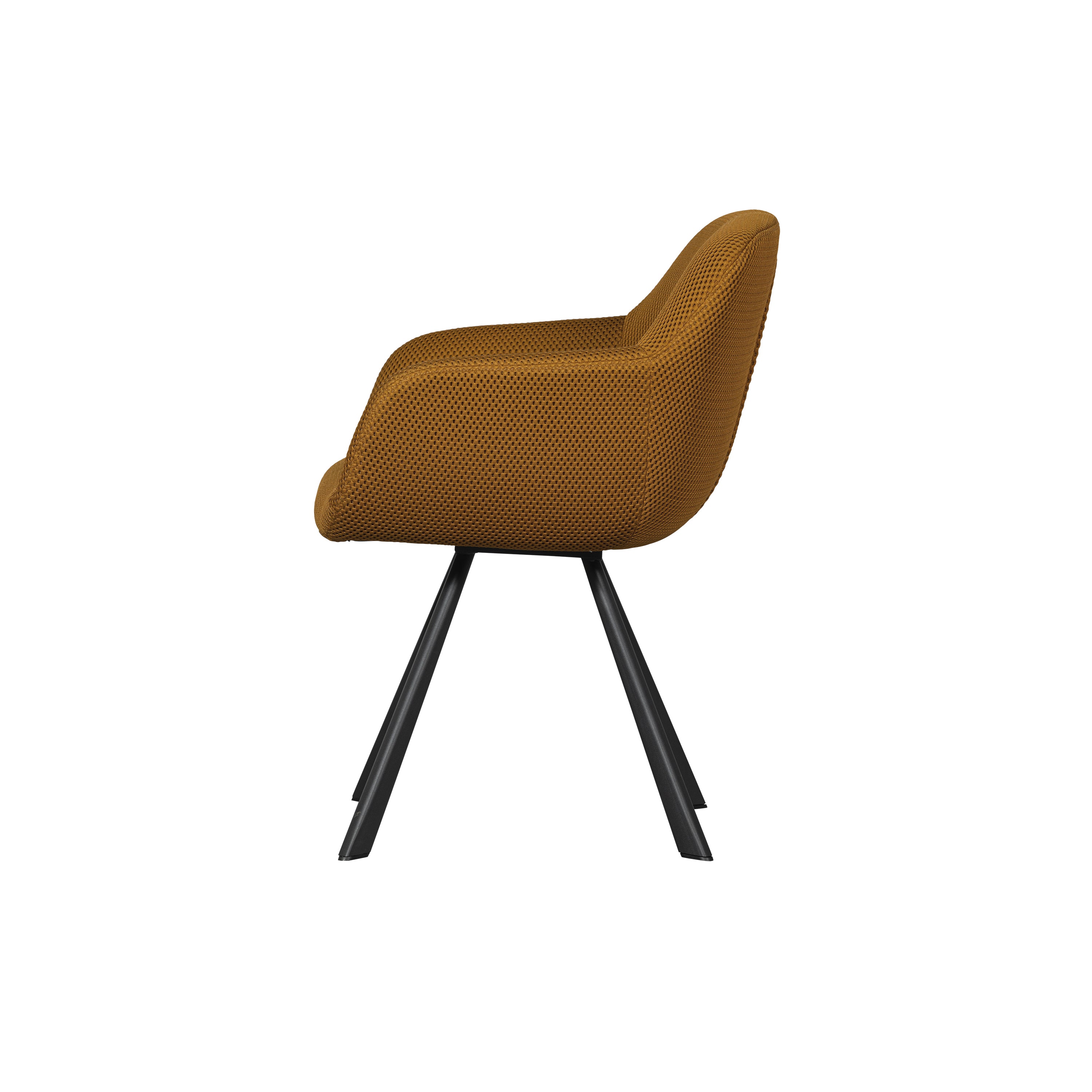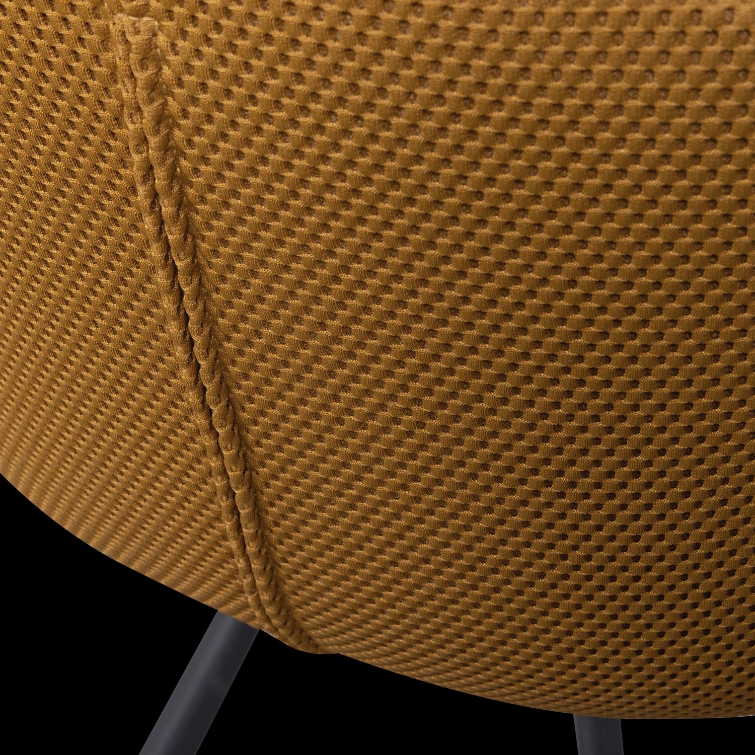 De Juno eetkamerstoel heeft metalen poten met een matzwarte poedercoating. De zitting is gevormd uit een stalen frame en multiplex, bedekt met een polyurethaan schuim. De zitting is bekleed met een mesh stof. Onze Wave gebreide mesh stof is een unieke toevoeging aan de meubelcollecties. De mesh stof heeft een opvallend 3D-effect en is van een zware kwaliteit. Met een samenstelling van 100% polyester en een Martindale van 100.000 is de stof van zeer sterke kwaliteit. De compact geweven backing zorgt dat het grafische patroon ten alle tijden in vorm blijft.