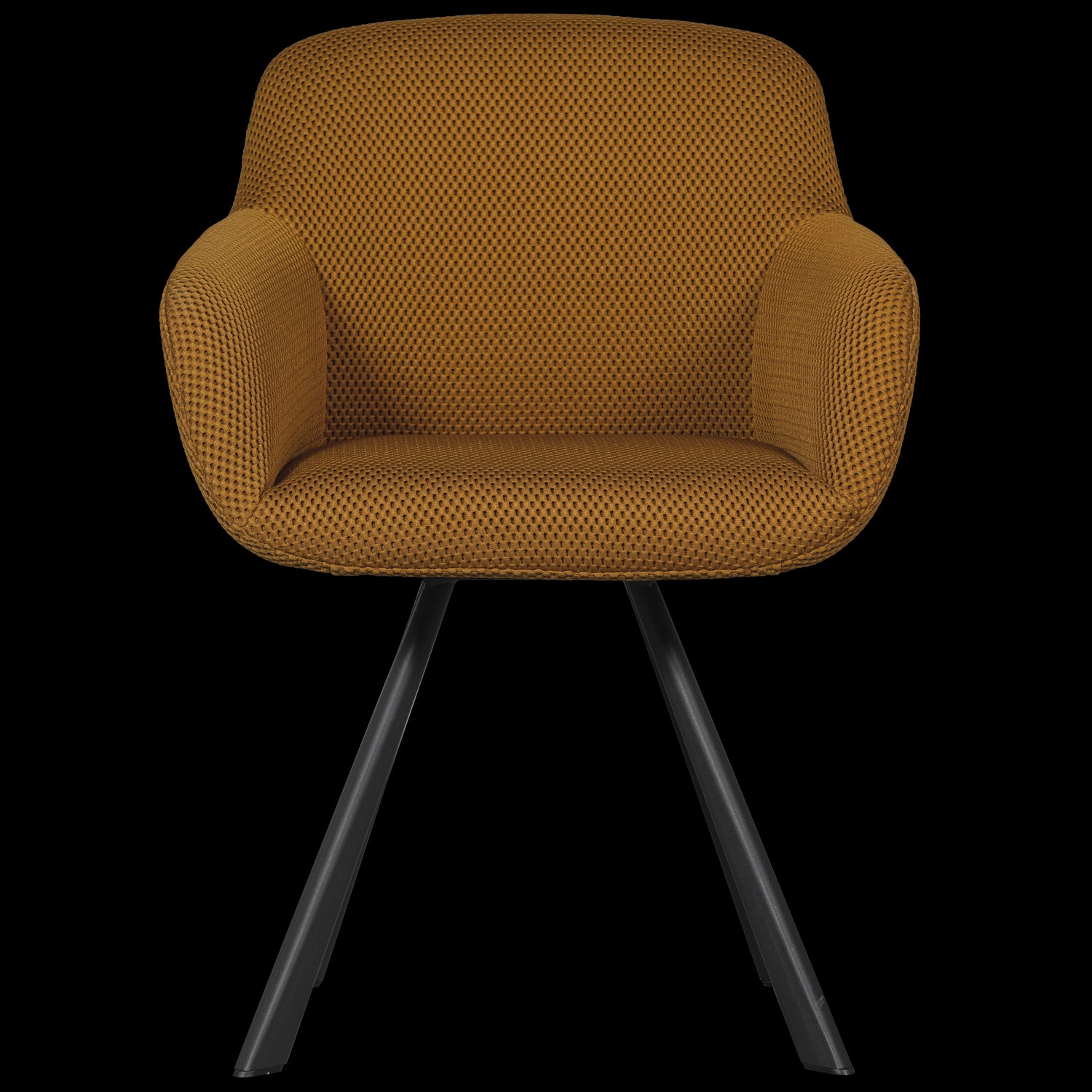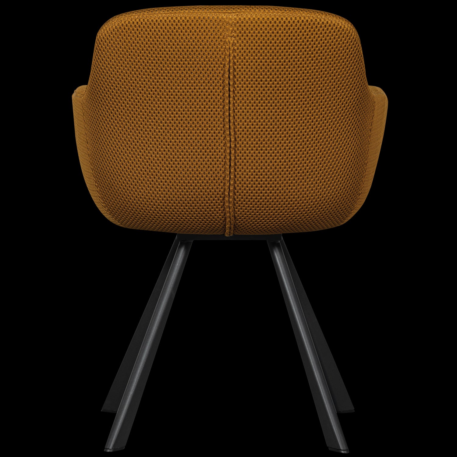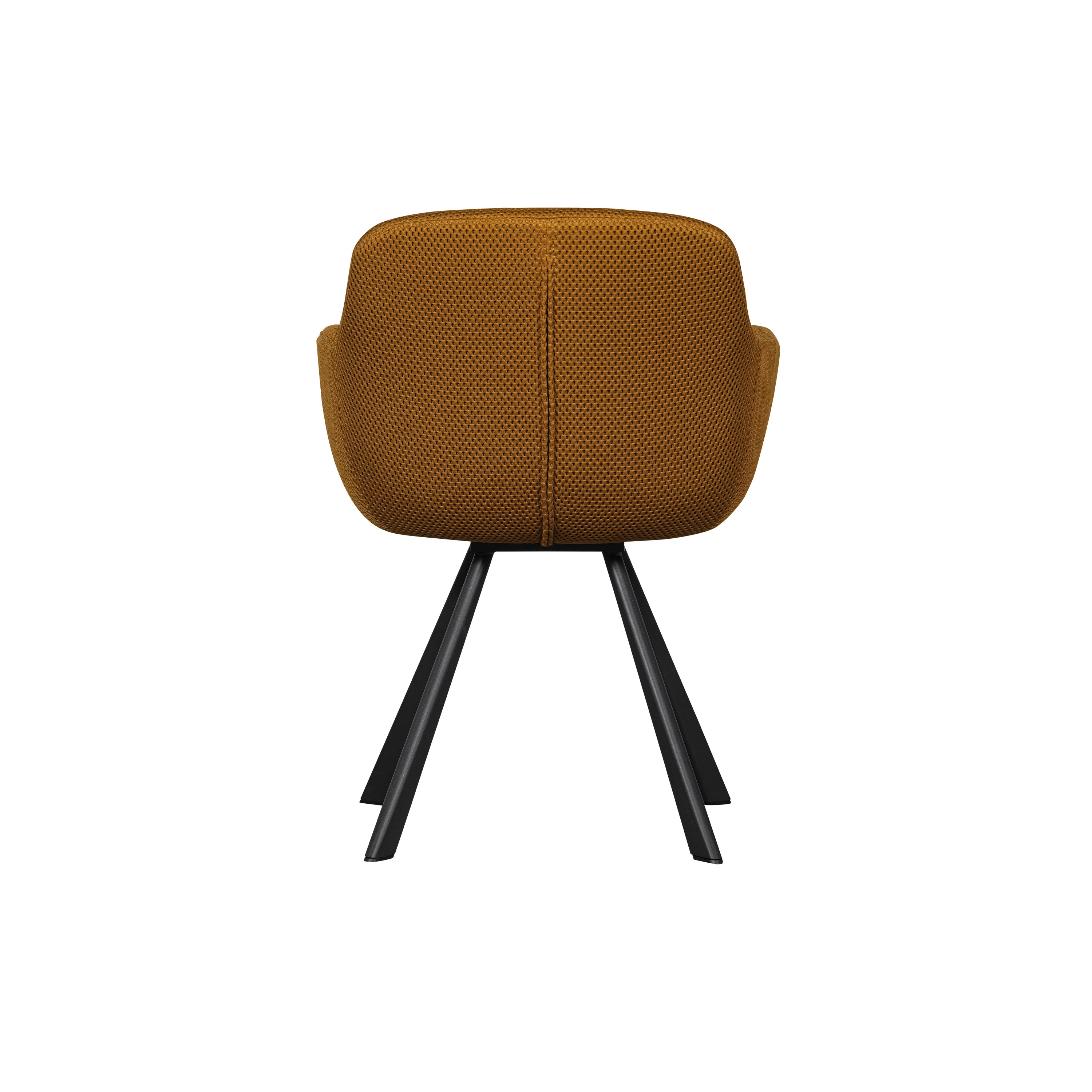 De Juno eetkamerstoel heeft metalen poten met een matzwarte poedercoating. De zitting is gevormd uit een stalen frame en multiplex, bedekt met een polyurethaan schuim. De zitting is bekleed met een mesh stof. Onze Wave gebreide mesh stof is een unieke toevoeging aan de meubelcollecties. De mesh stof heeft een opvallend 3D-effect en is van een zware kwaliteit. Met een samenstelling van 100% polyester en een Martindale van 100.000 is de stof van zeer sterke kwaliteit. De compact geweven backing zorgt dat het grafische patroon ten alle tijden in vorm blijft.