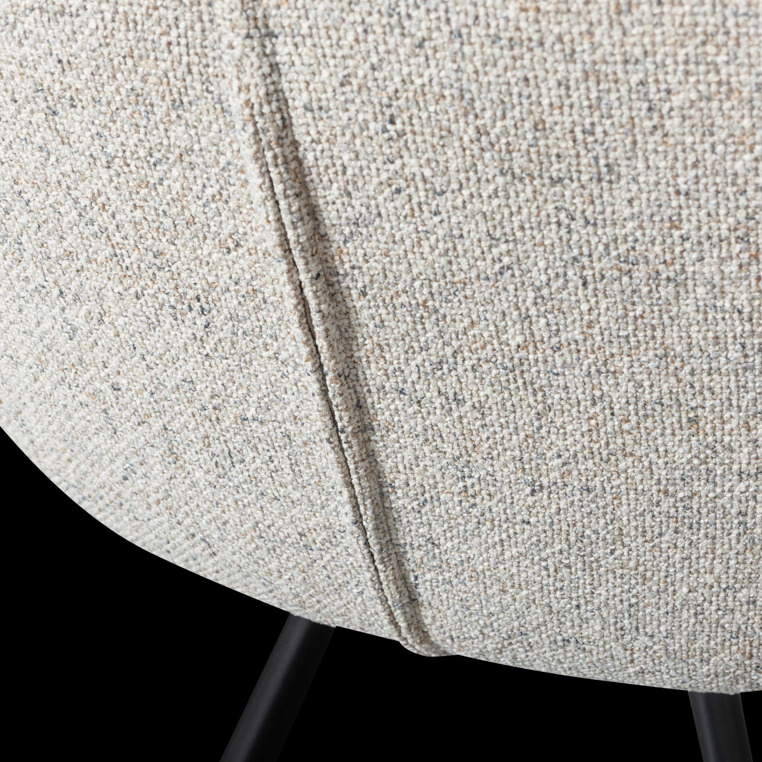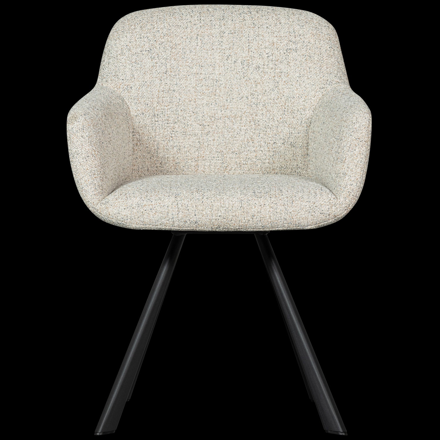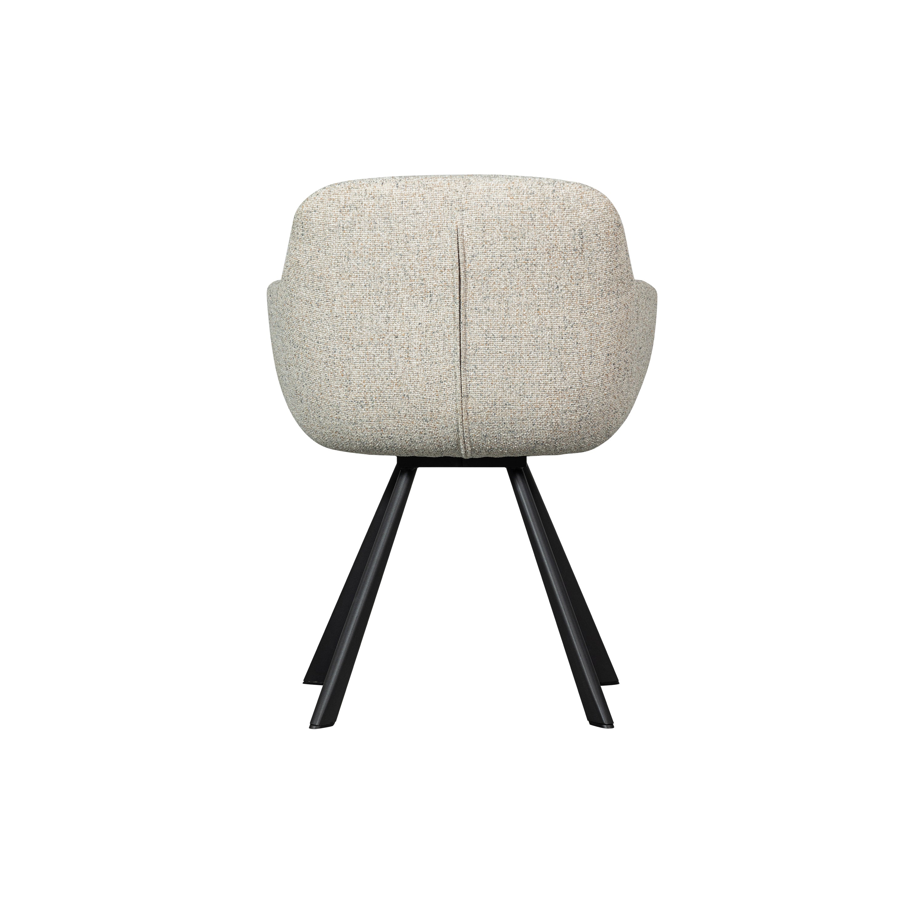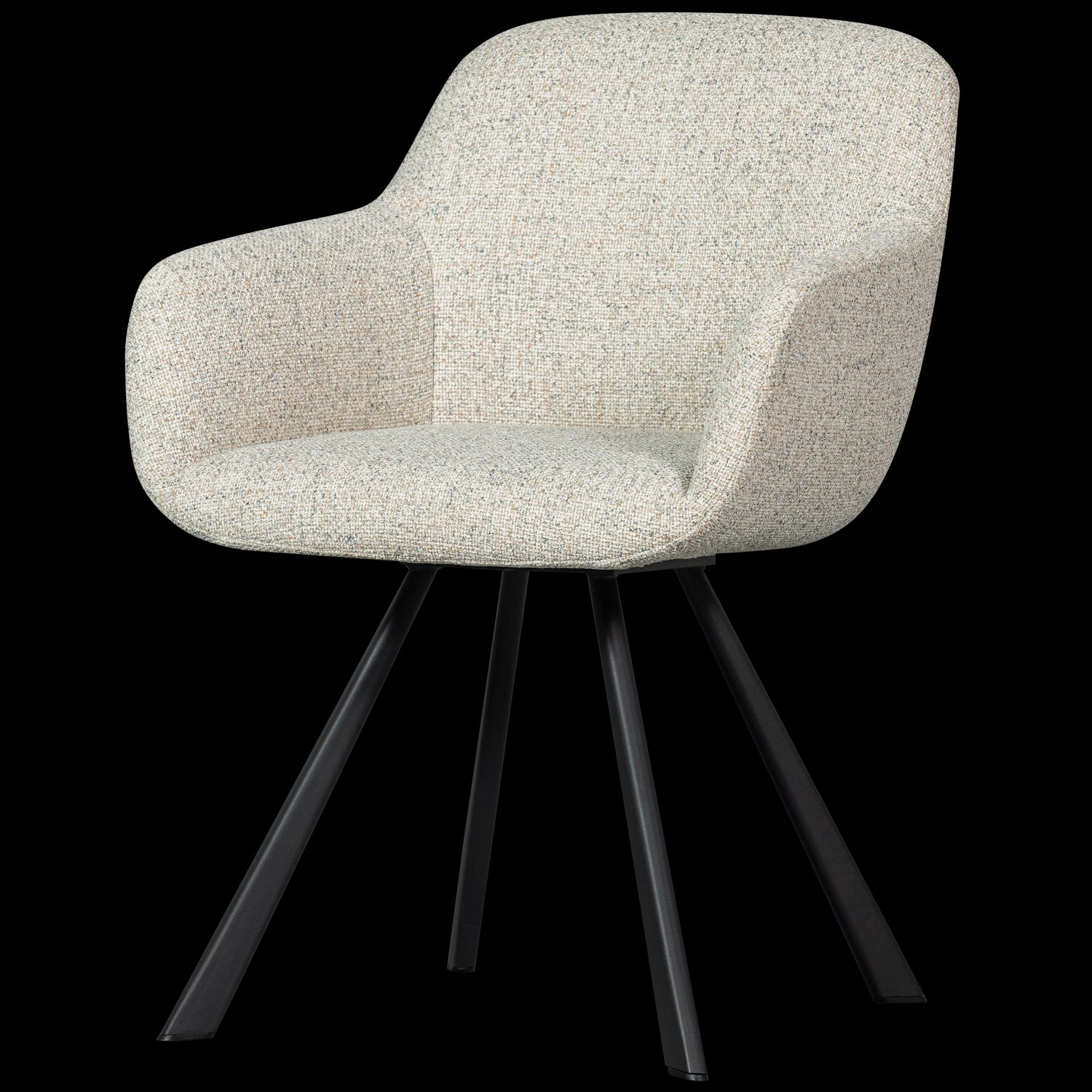 De Juno eetkamerstoel heeft metalen poten met een matzwarte poedercoating. De zitting is gevormd uit een stalen frame en multiplex, bedekt met een polyurethaan schuim. De zitting is bekleed met een geweven stof. De Helen geweven stof is opgebouwd uit 100% polyester, wat de stof een zachte grip geeft. De dicht geweven stof krijgt een extra dimensie door de opvallende kleurnuances. Deze kleurschakeringen zorgen voor een unieke uitstraling. De Helen staat bekend om zijn functionaliteit, stevigheid en samenstelling uit vezels van verschillende kleuren.