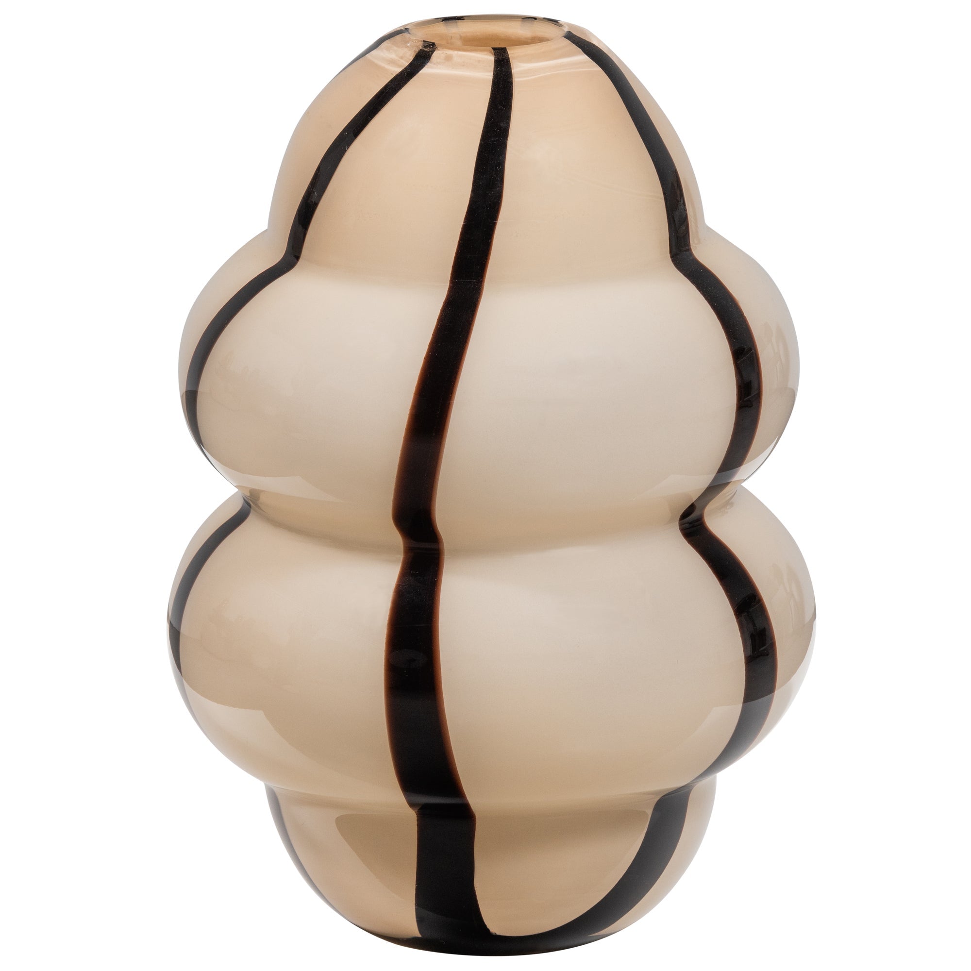 Deze glazen Kency vaas komt uit de collectie van het Nederlandse merk WOOOD. De interessante vorm in combinatie met de gekleurde strepen zorgt voor een stijlvol en uniek design. De vaas is zowel met als zonder boeket een eye-catcher in jouw woning.