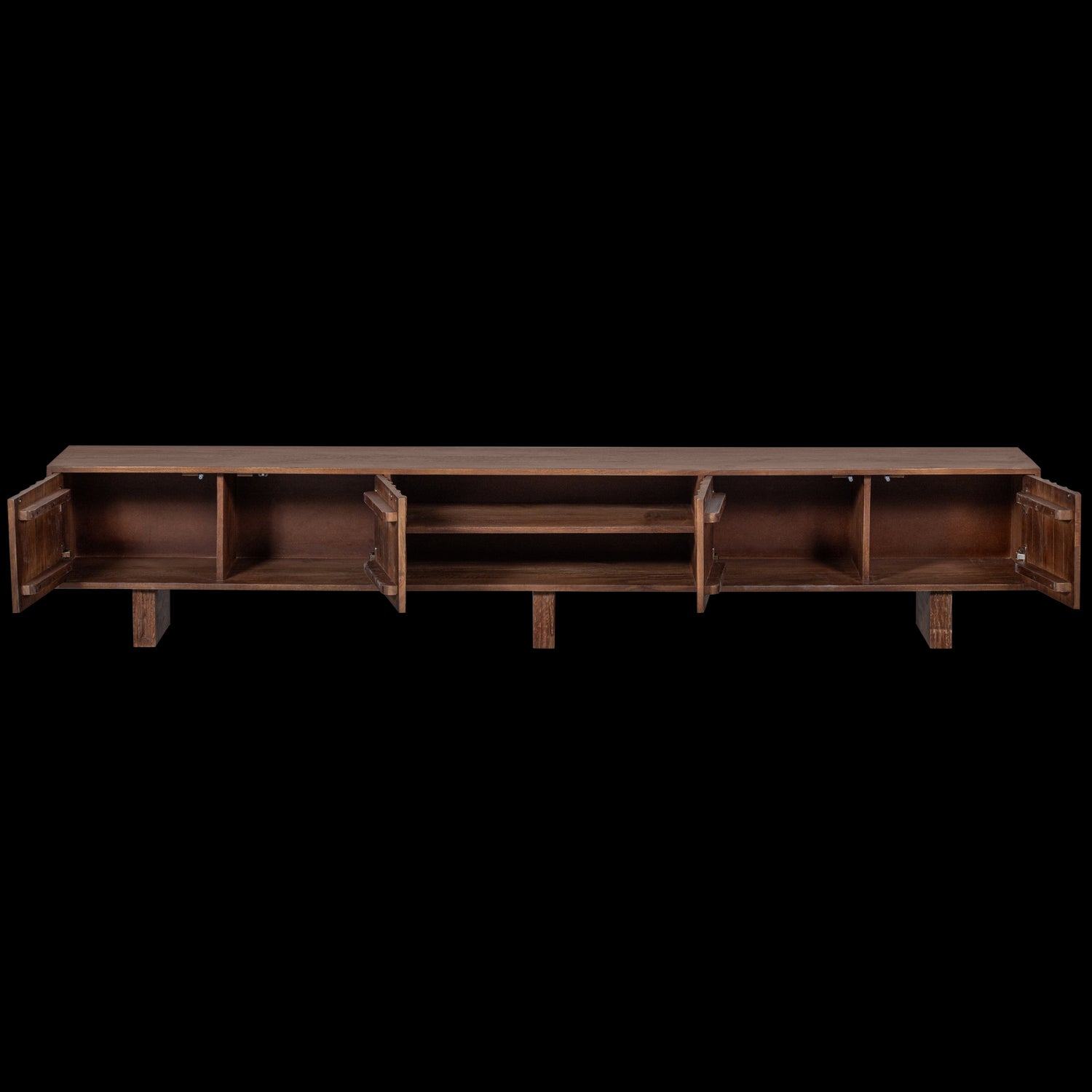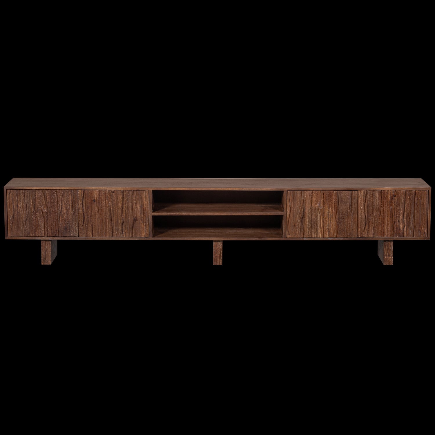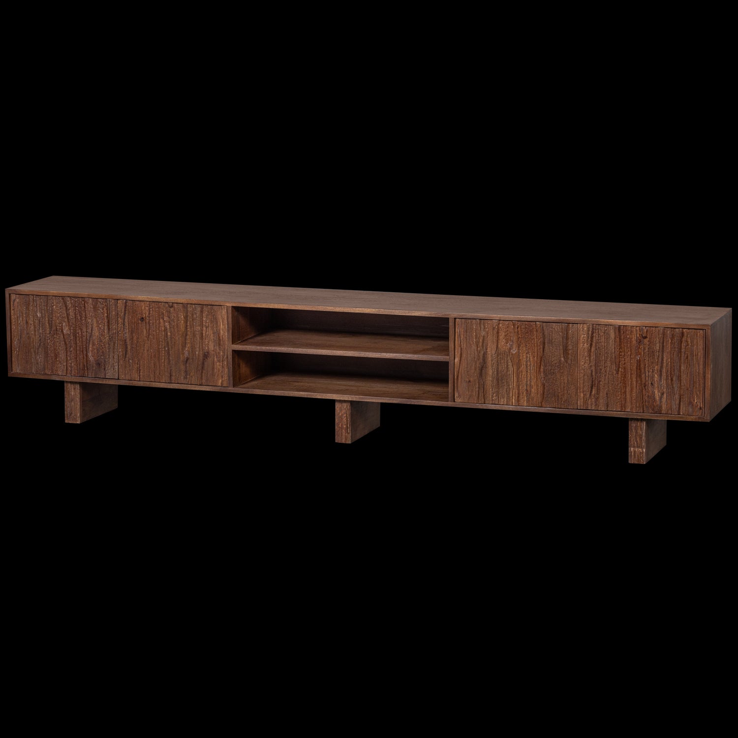 Een opvallend en praktisch tv-meubel. Dat is deze Lavish uit de WOOOD collectie. De deuren bevatten een organisch gedecoreerd houtsnijwerk en zijn voorzien van een geluidloos push-to-open systeem. De twee open vakken bieden ruimte voor het praktisch opbergen van diverse mediatools.