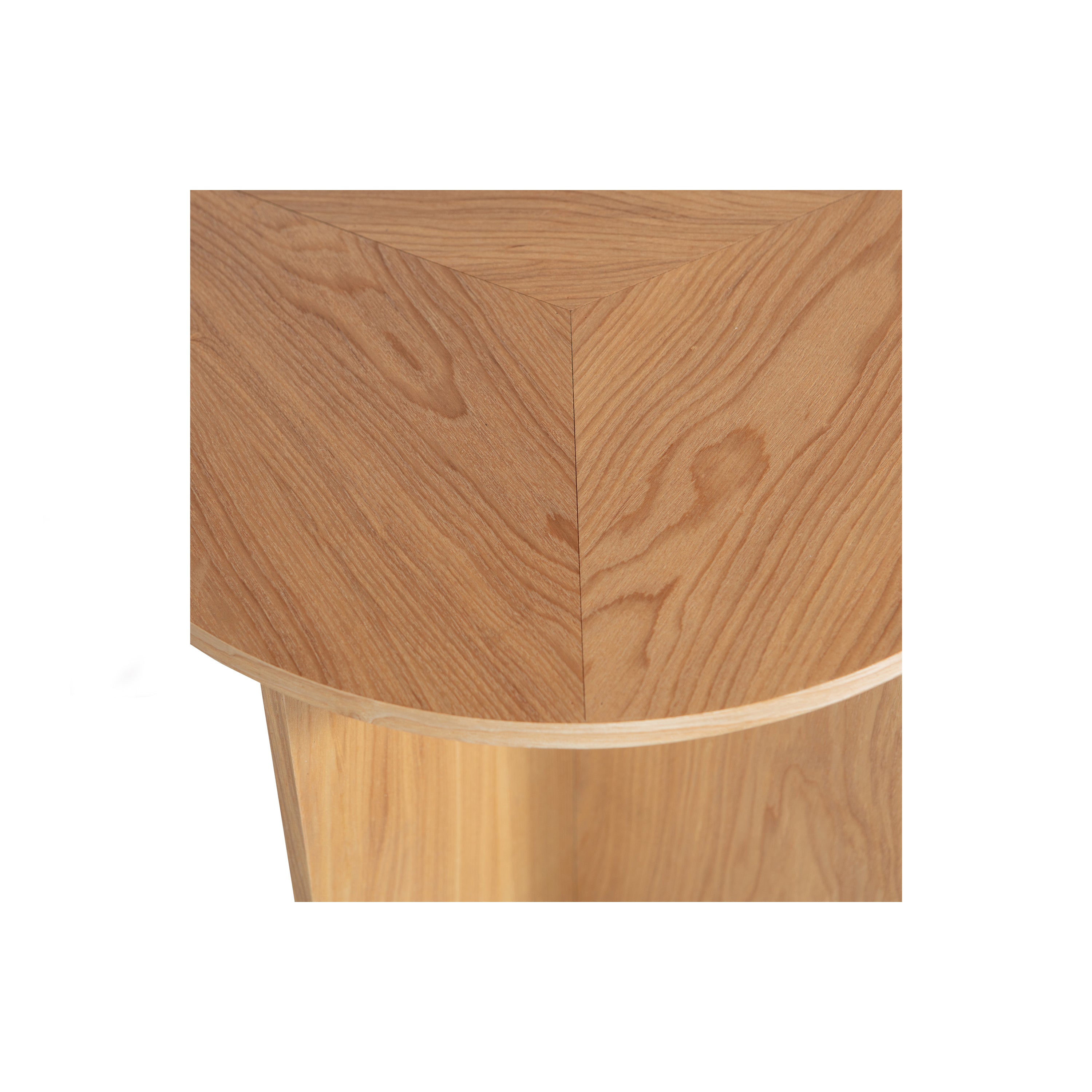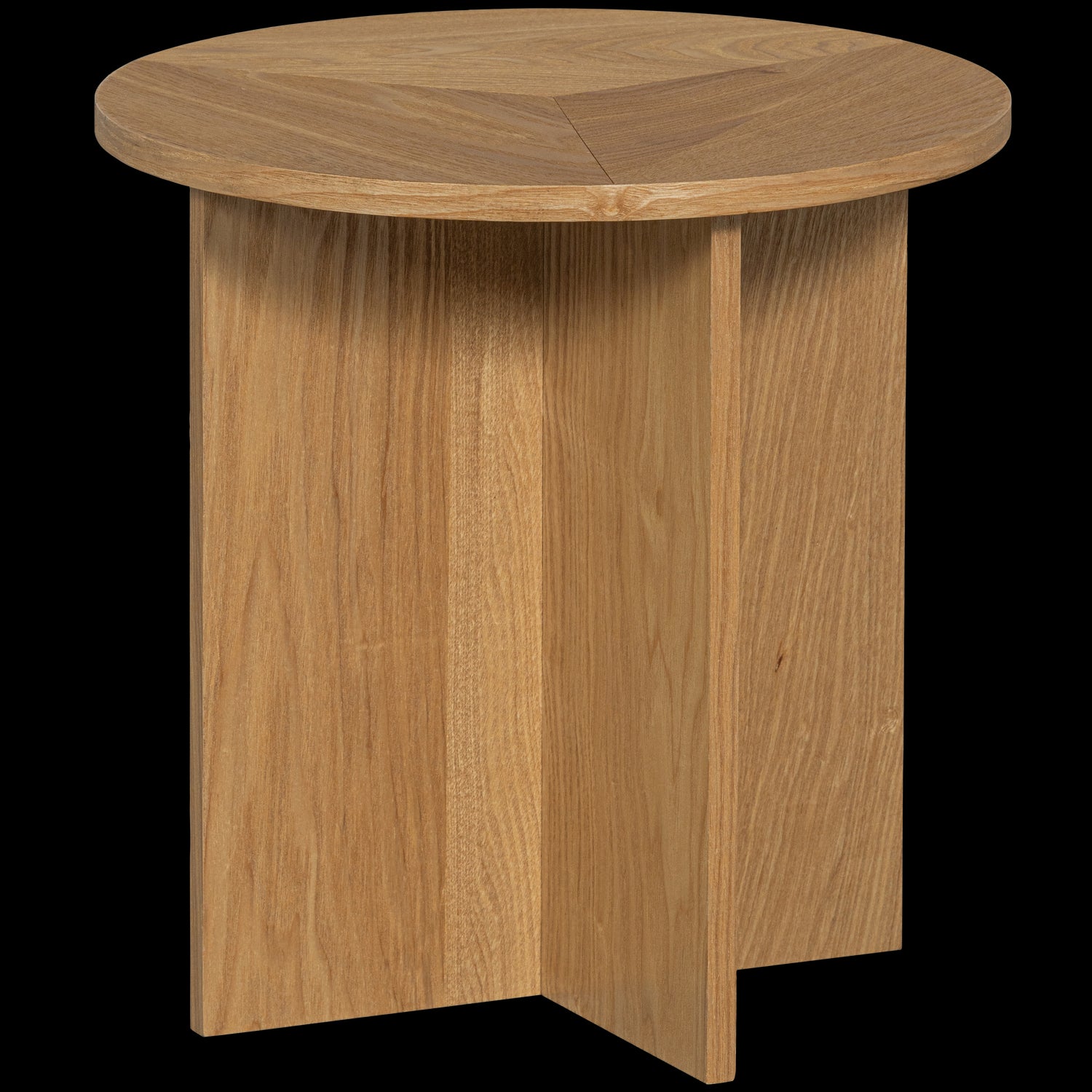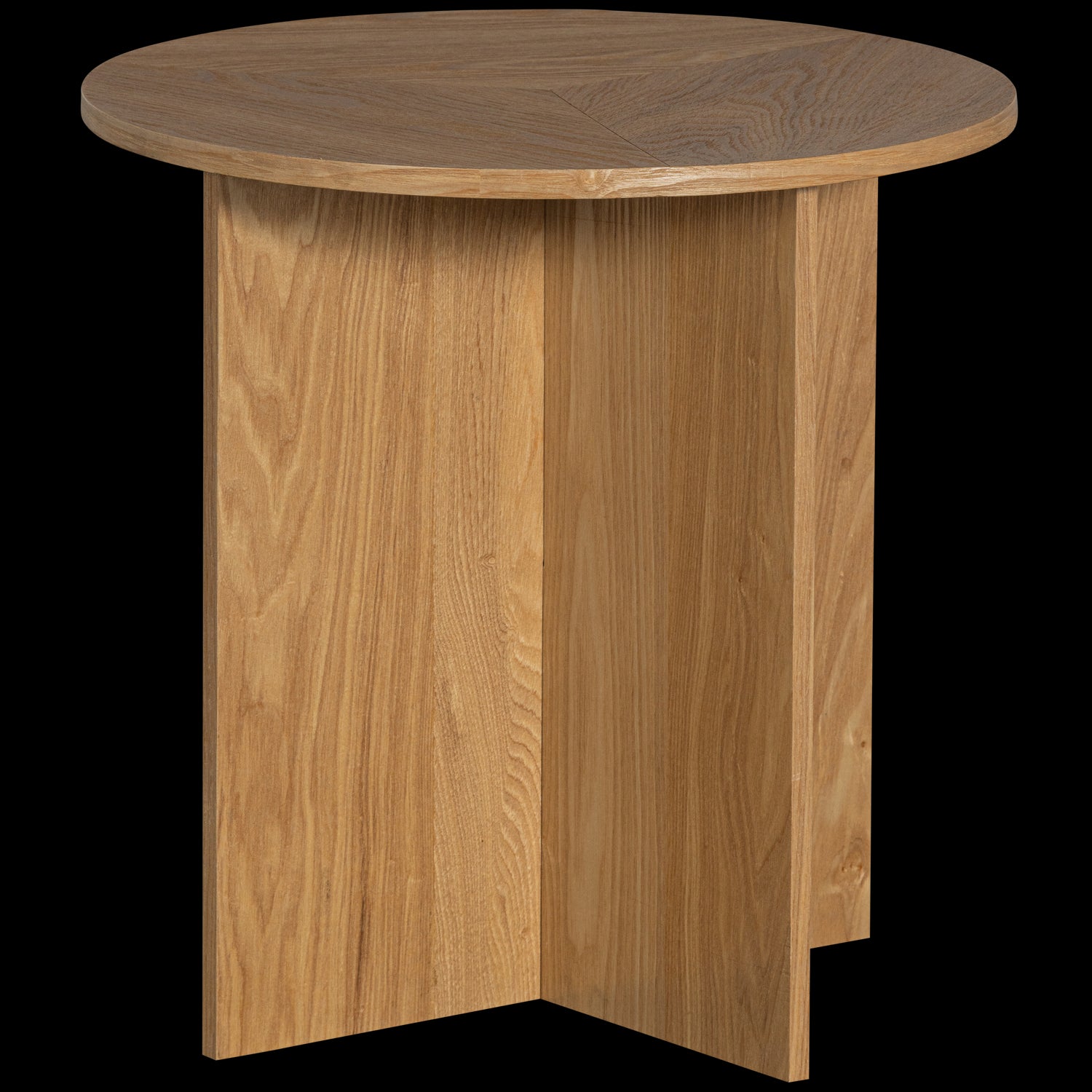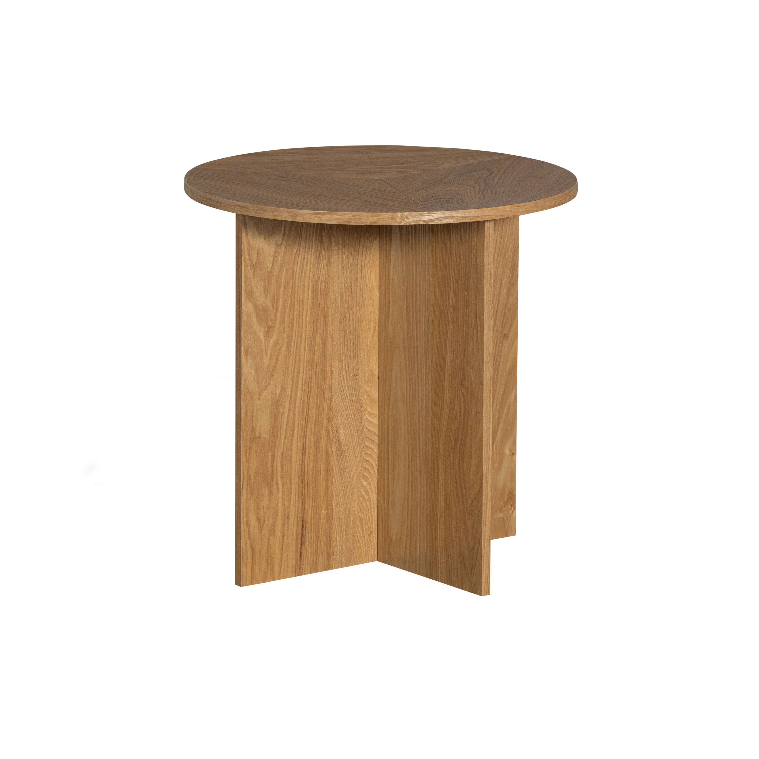 De Lina bijzettafelset van twee stuks, uit de collectie van het Nederlandse interieurmerk WOOOD, is een opvallend duo met een stijlvol potenframe. De bijzettafels zijn vervaardigd uit geperst plaatmateriaal met een warmbruine tint.